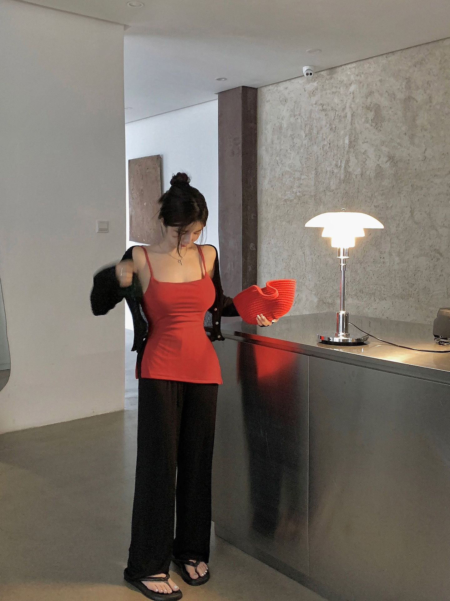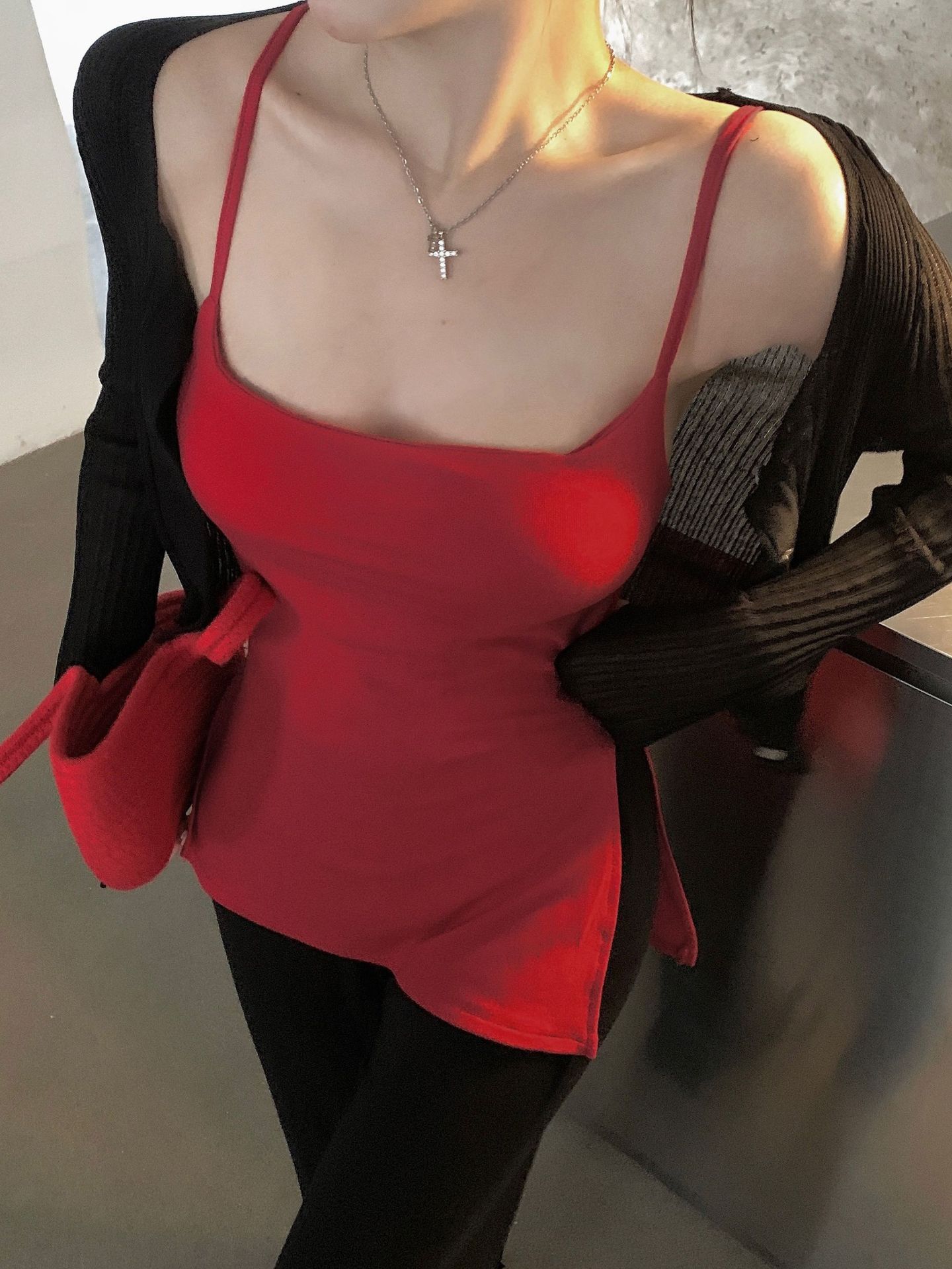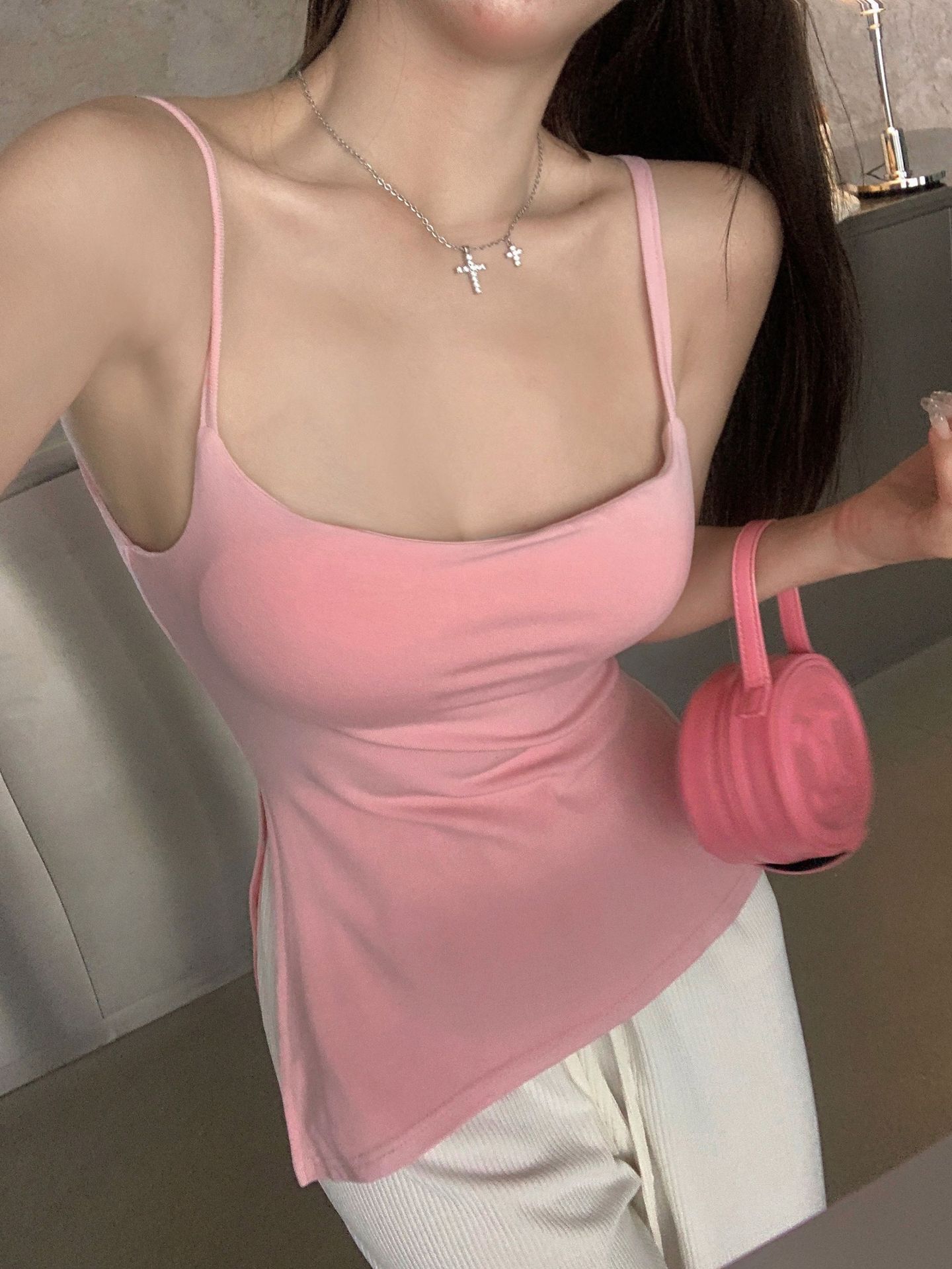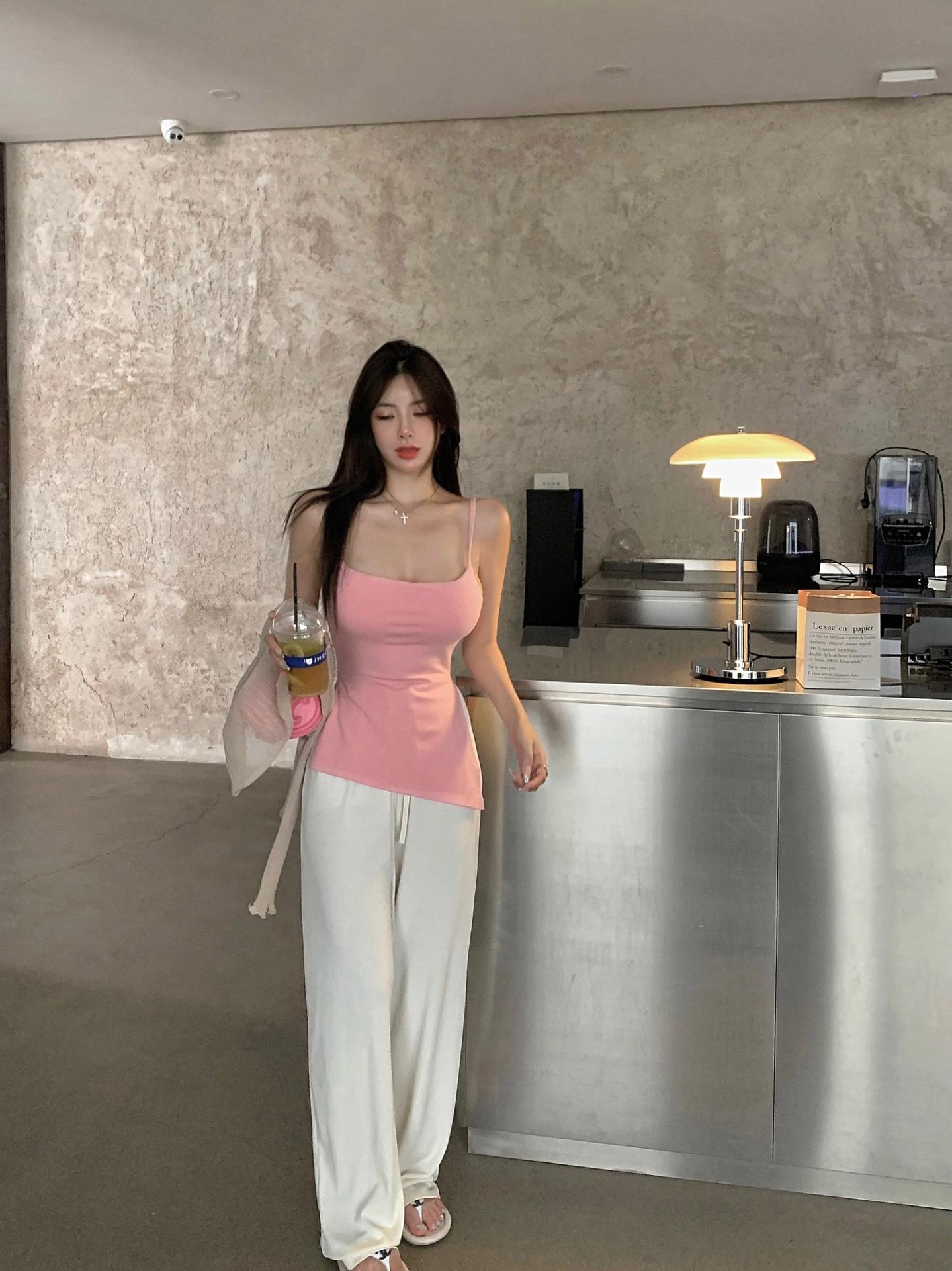 Sexy Spice Girl con Almohadilla en el Pecho Camisola Interior Ropa Exterior Verano Color Sólido Abertura Lateral Puro Deseo Ajustado Top Base