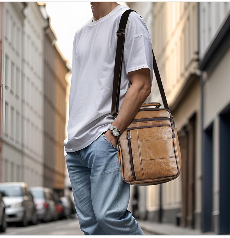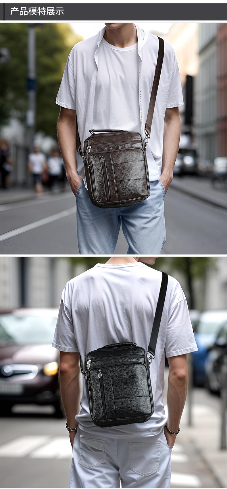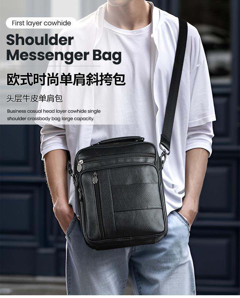 Bolso de negocios de moda para hombre, bandolera vertical, pequeña mochila informal de piel de vaca, bandolera de piel auténtica, bolso moderno.