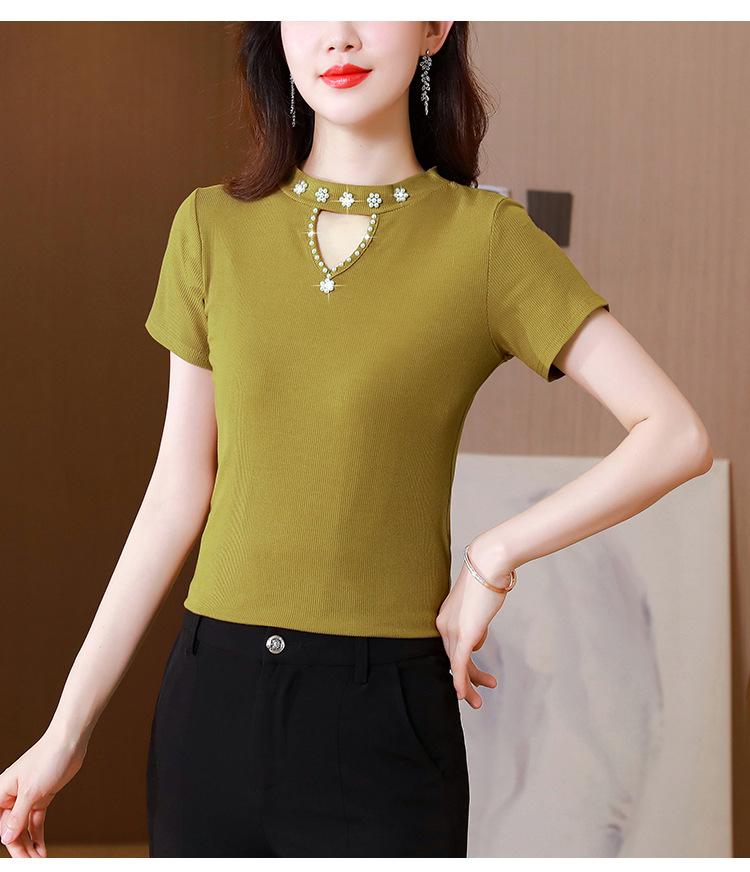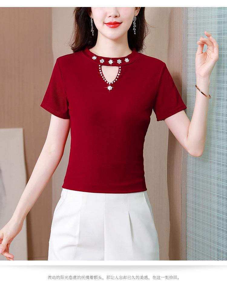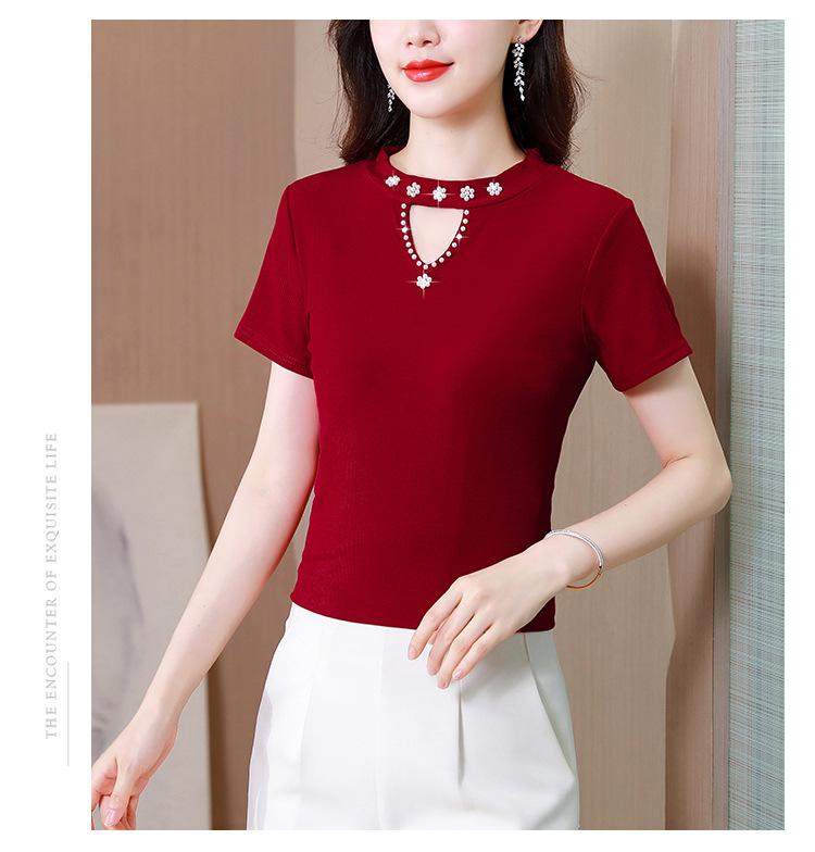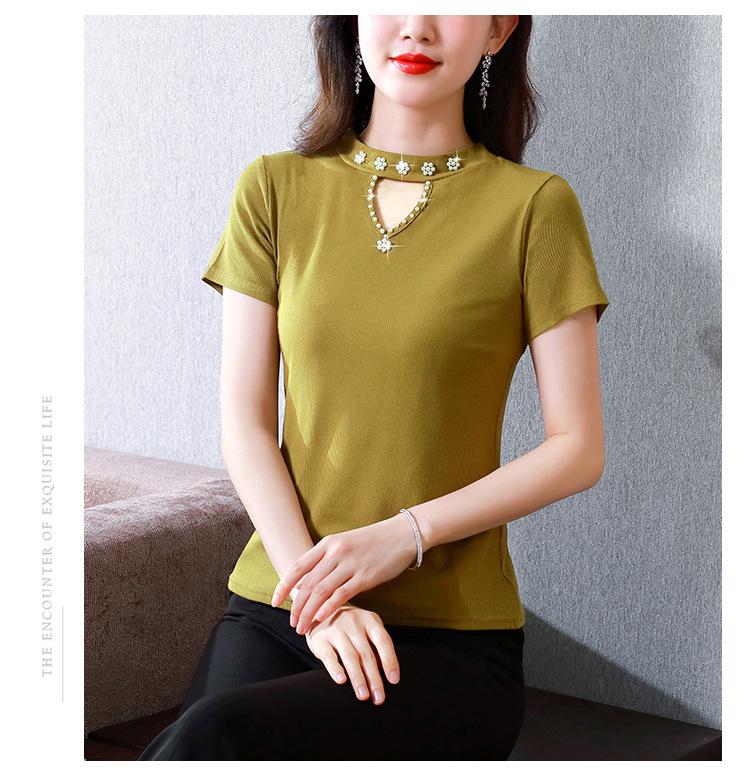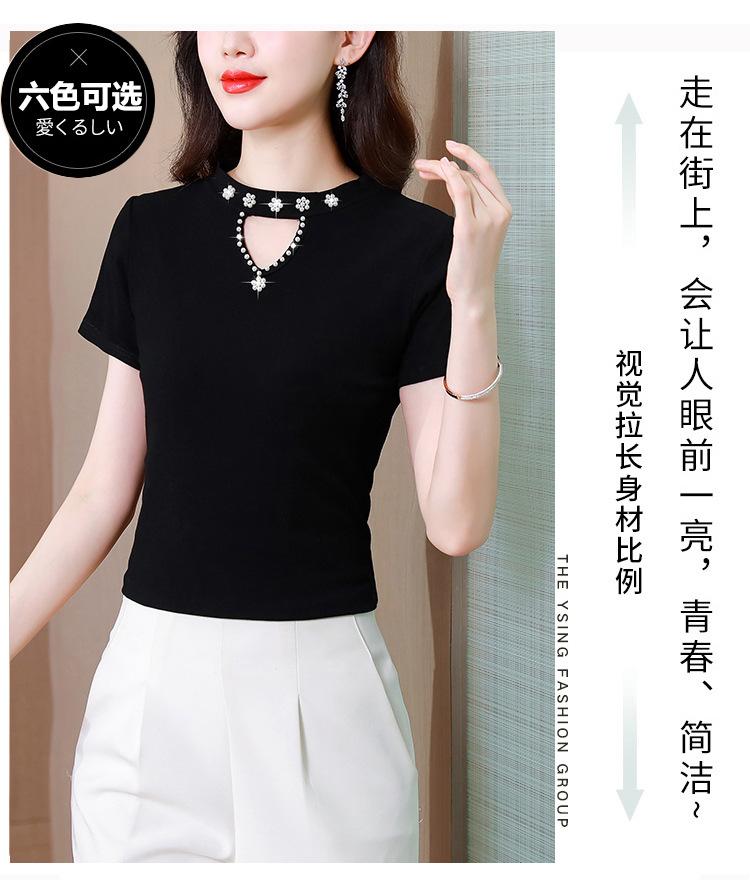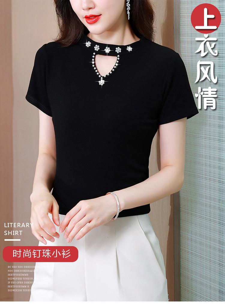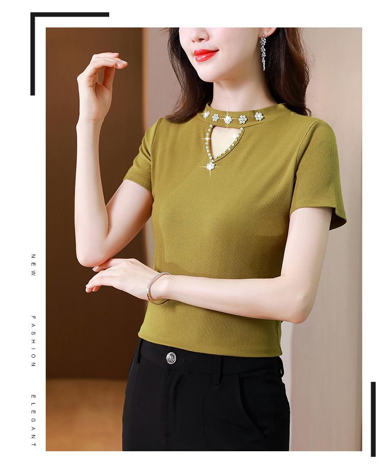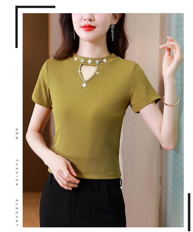 Camiseta Básica Camiseta Manga Corta Mujer 2023 Verano Nuevo Estilo Camisa Pequeña Moda Adelgazante Look Abalorios Recorte Top Trbottomy