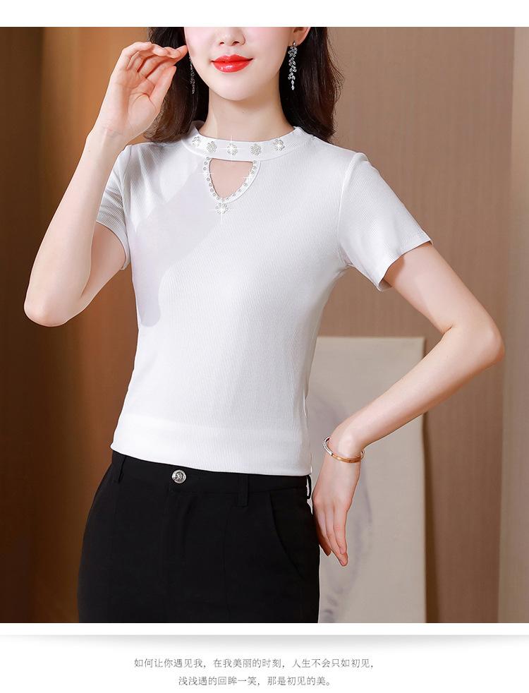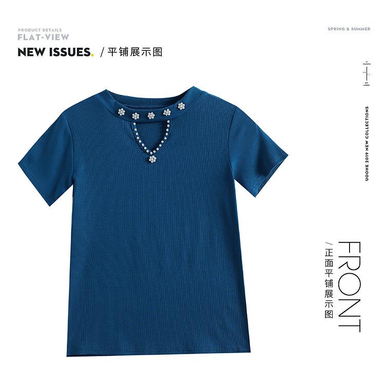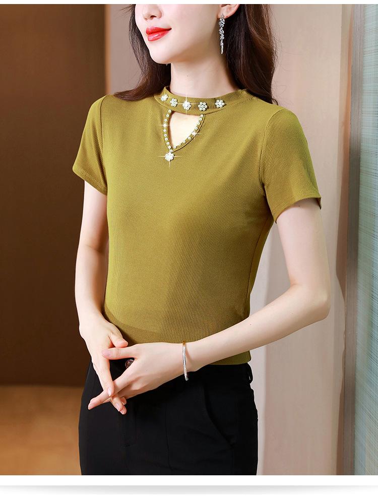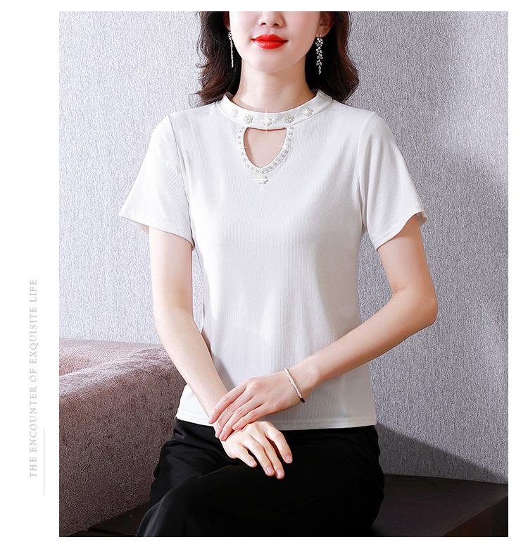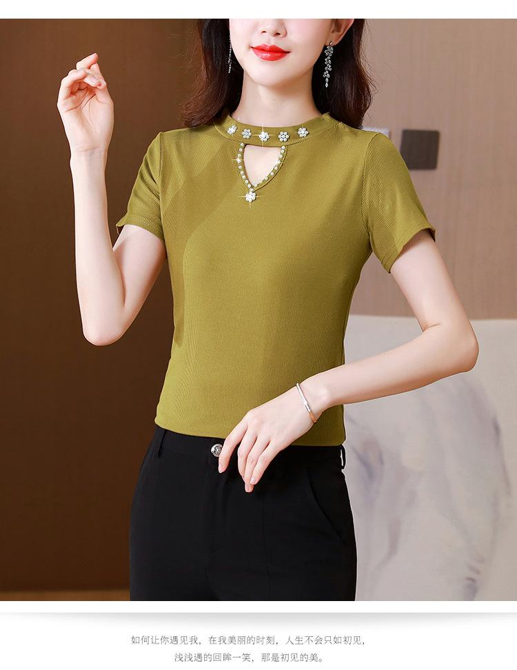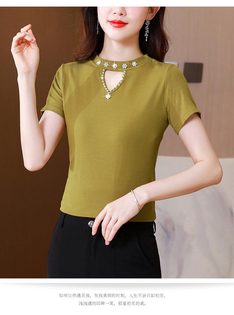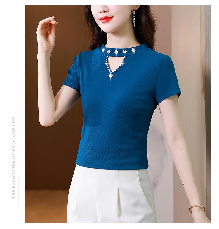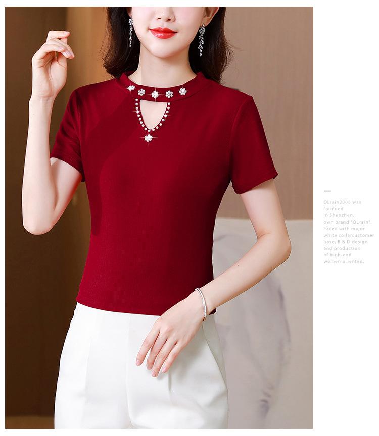 Camiseta Básica Camiseta Manga Corta Mujer 2023 Verano Nuevo Estilo Camisa Pequeña Moda Adelgazante Look Abalorios Recorte Top Trbottomy