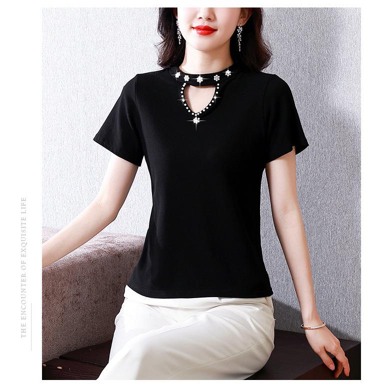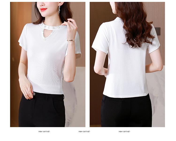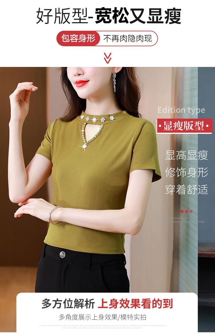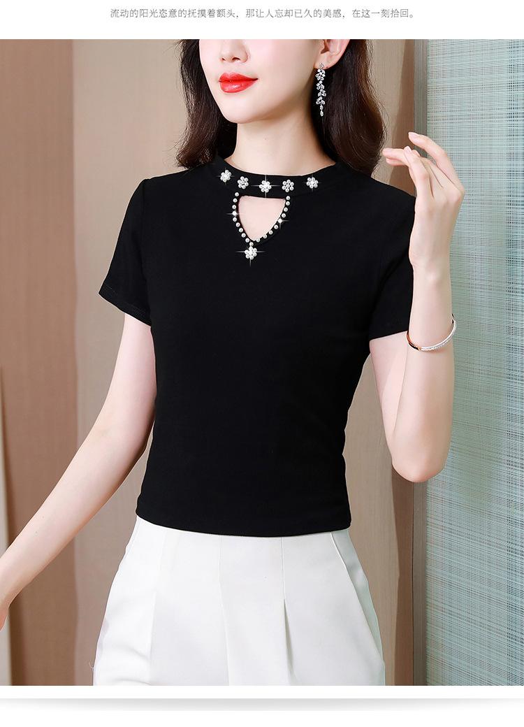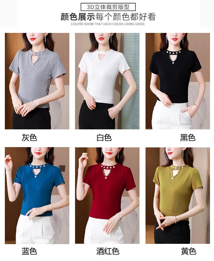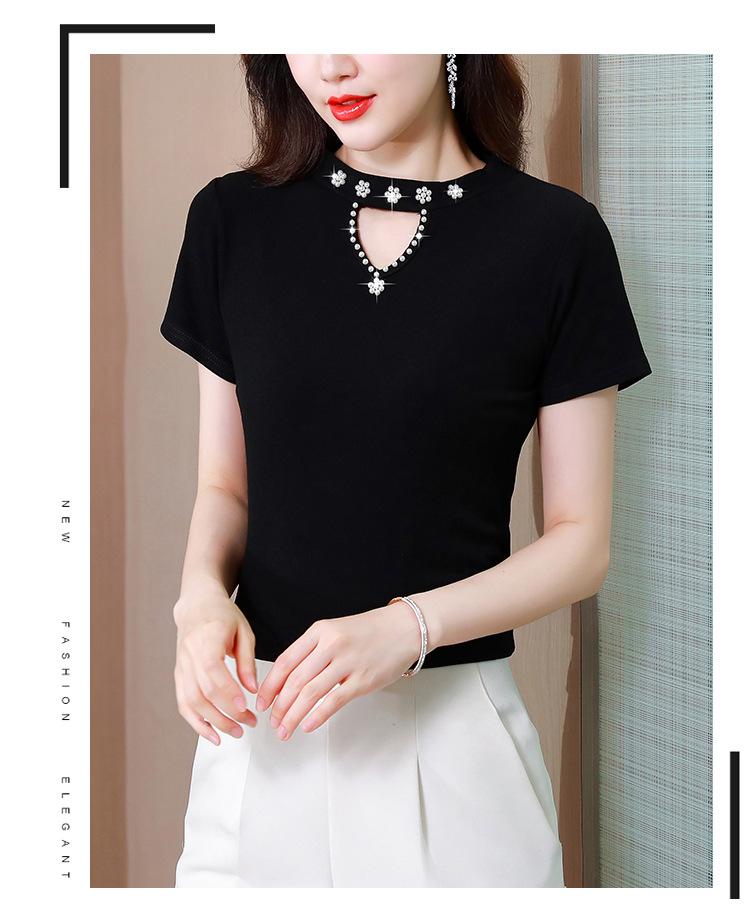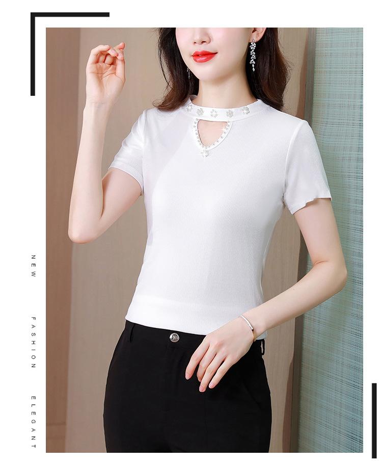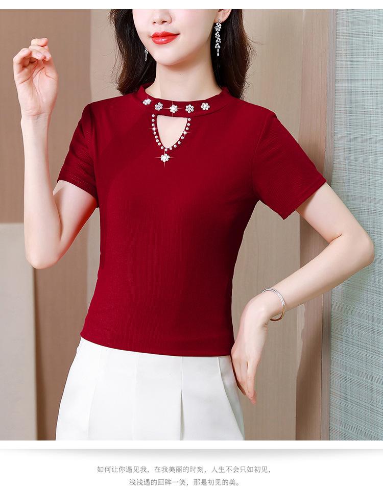 Camiseta Básica Camiseta Manga Corta Mujer 2023 Verano Nuevo Estilo Camisa Pequeña Moda Adelgazante Look Abalorios Recorte Top Trbottomy