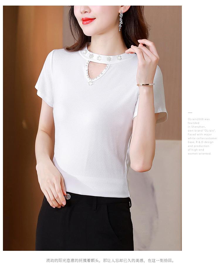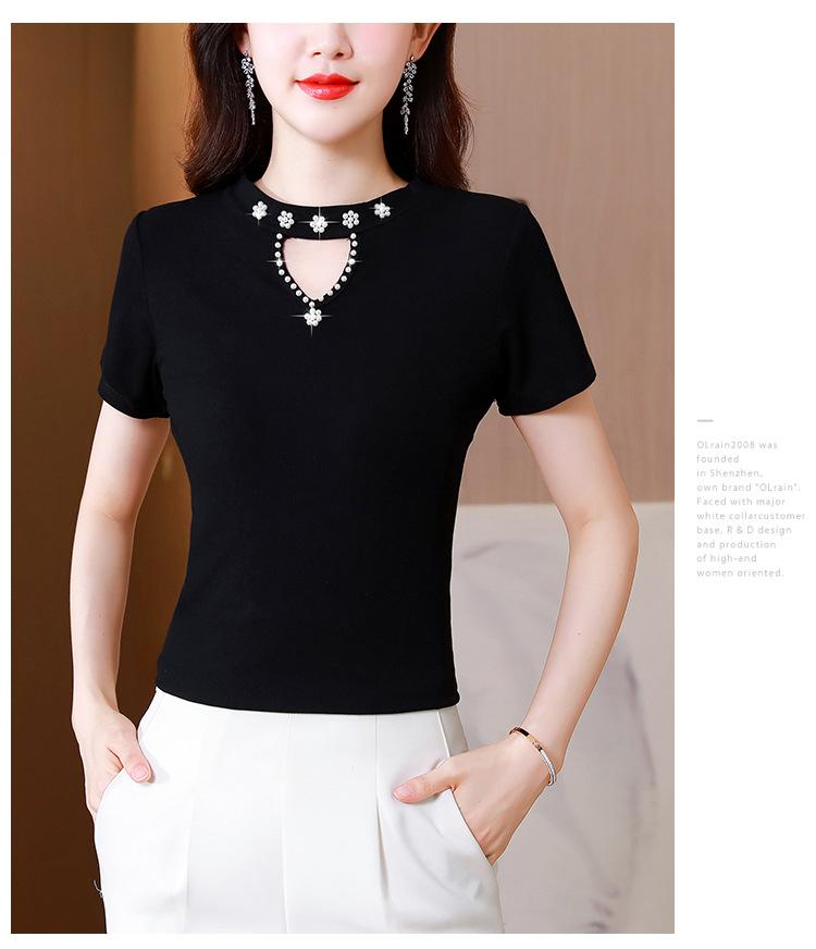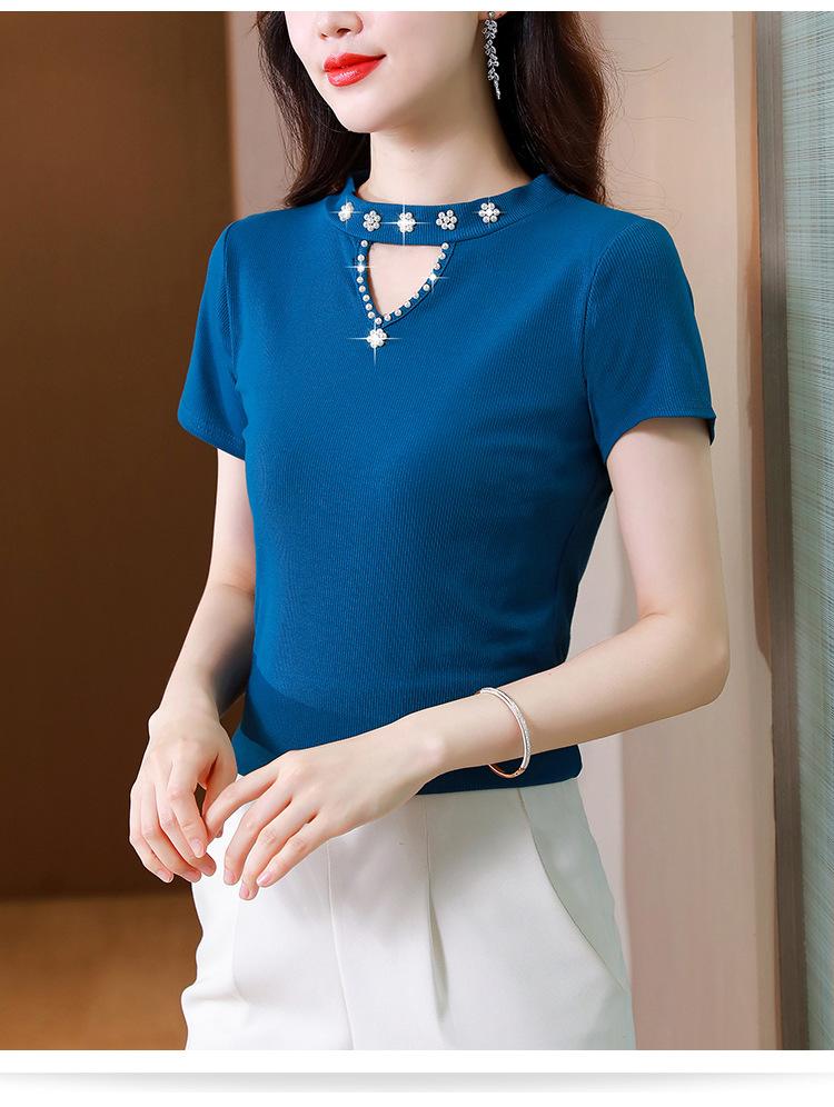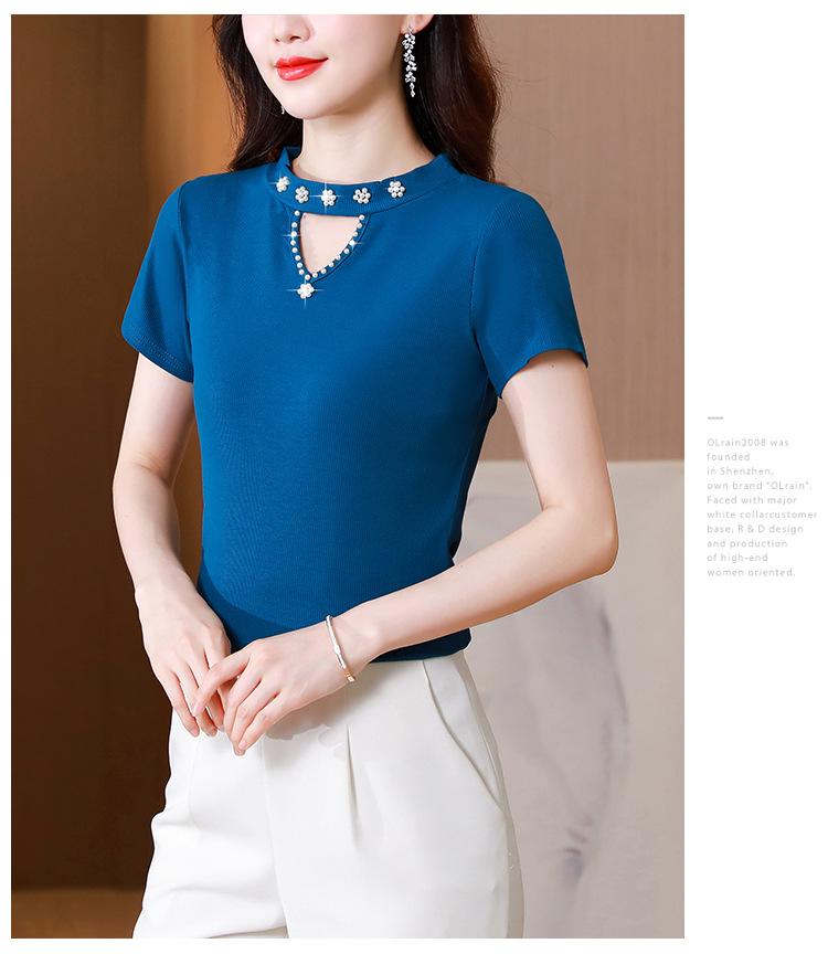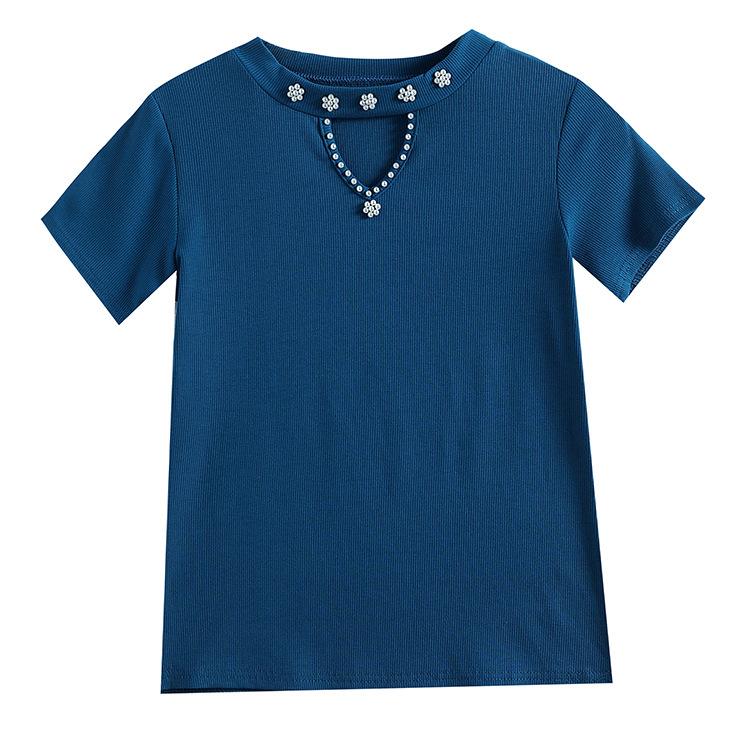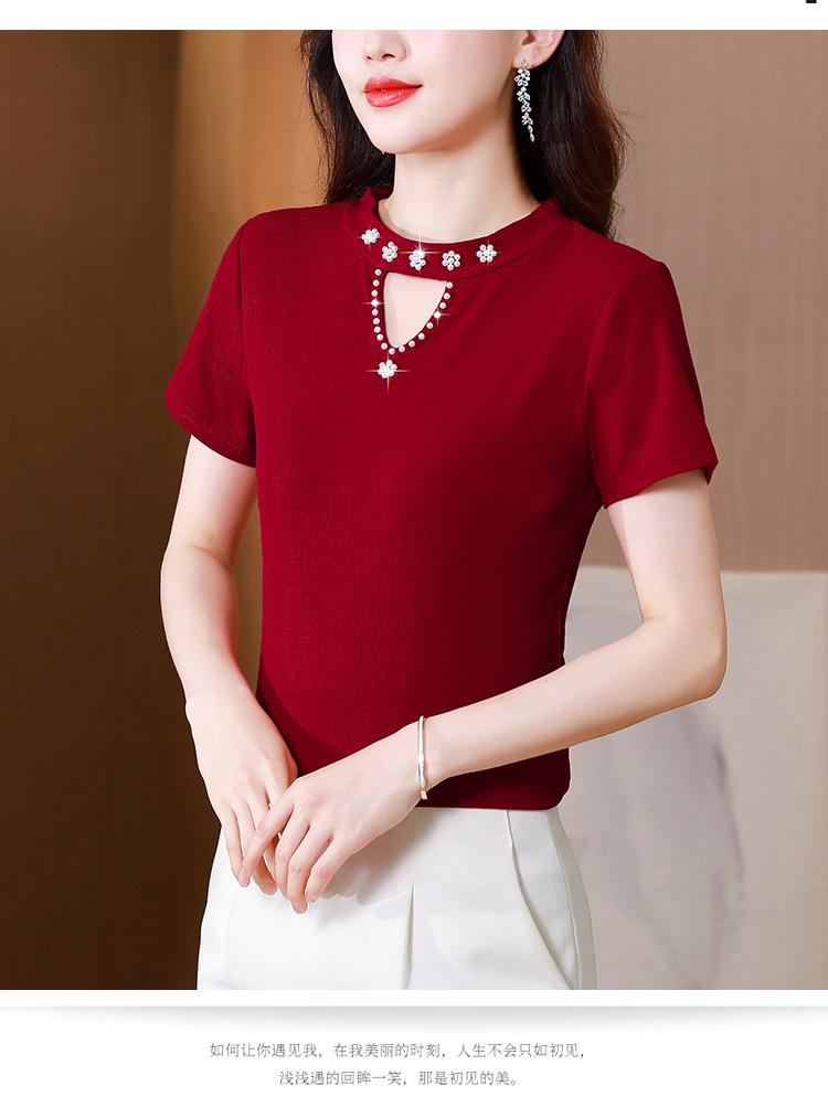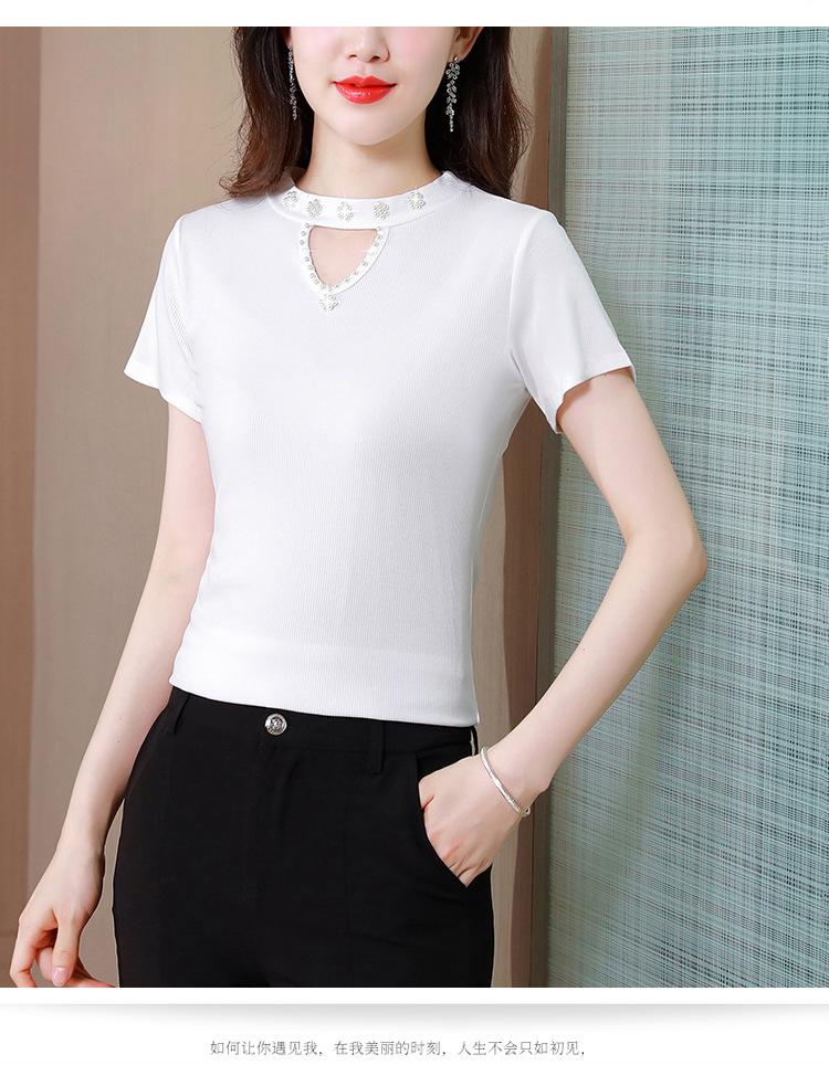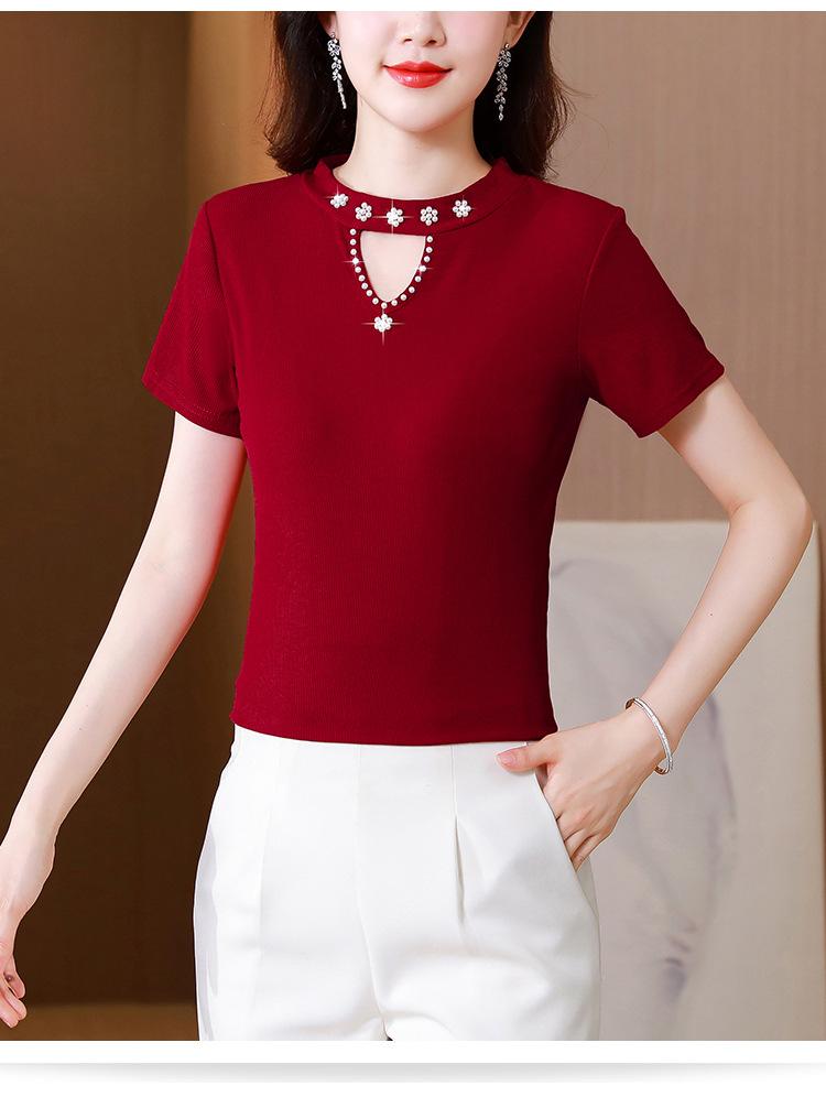 Camiseta Básica Camiseta Manga Corta Mujer 2023 Verano Nuevo Estilo Camisa Pequeña Moda Adelgazante Look Abalorios Recorte Top Trbottomy