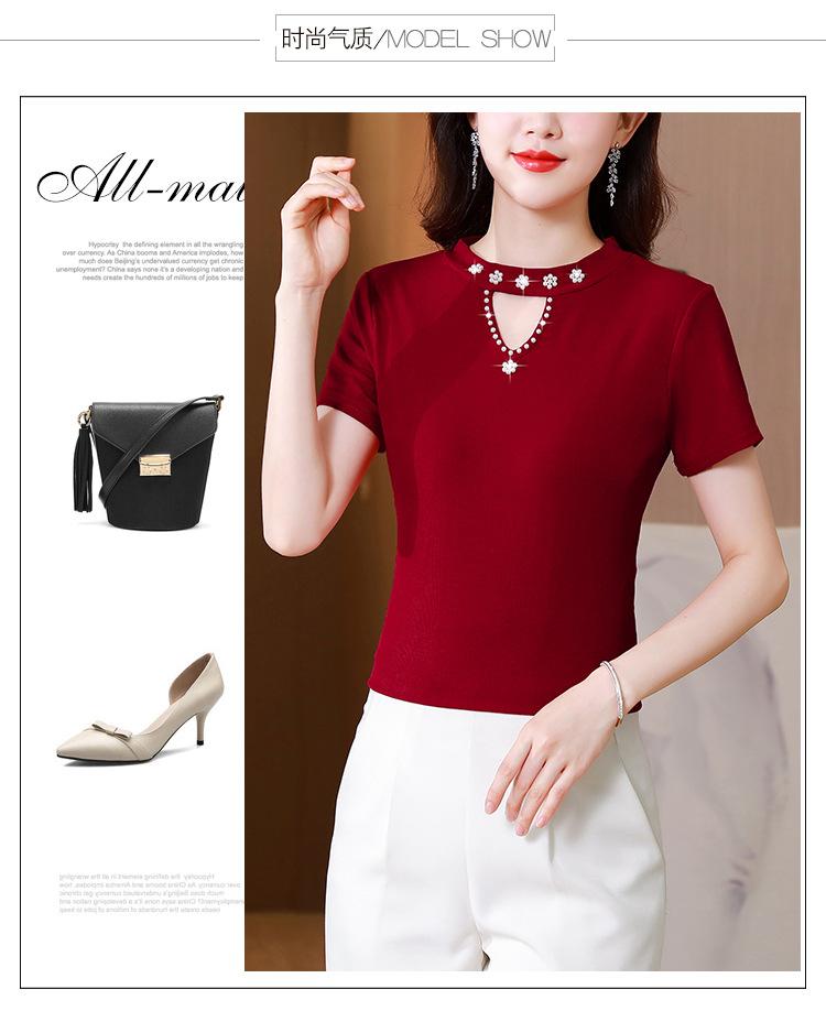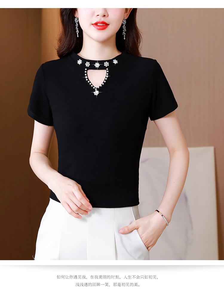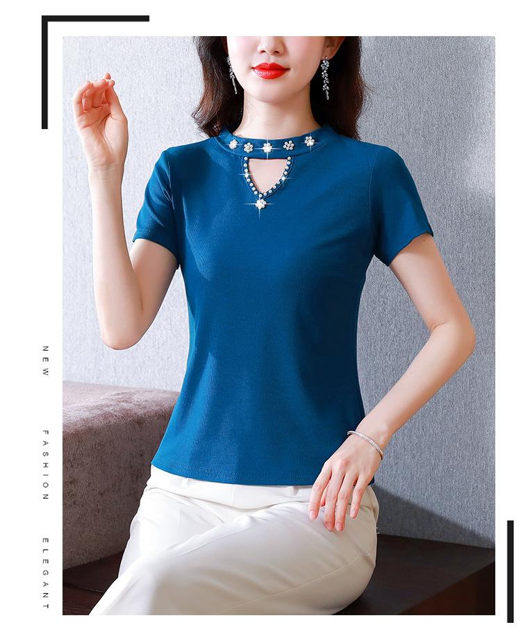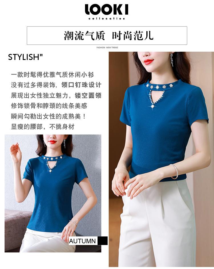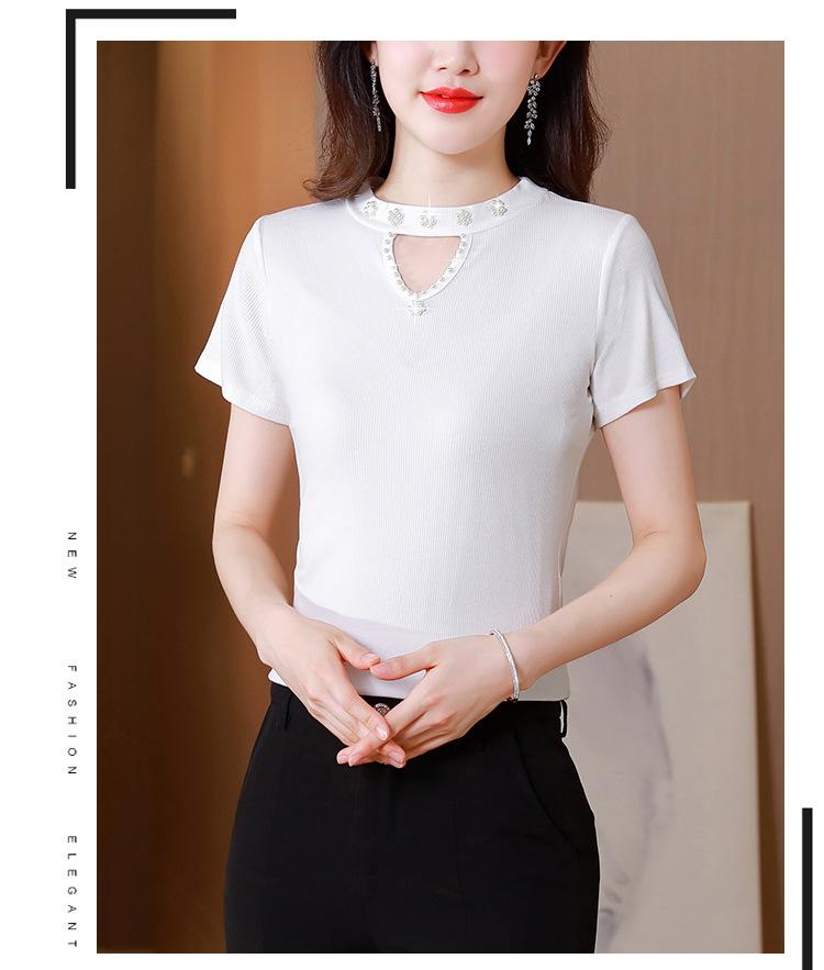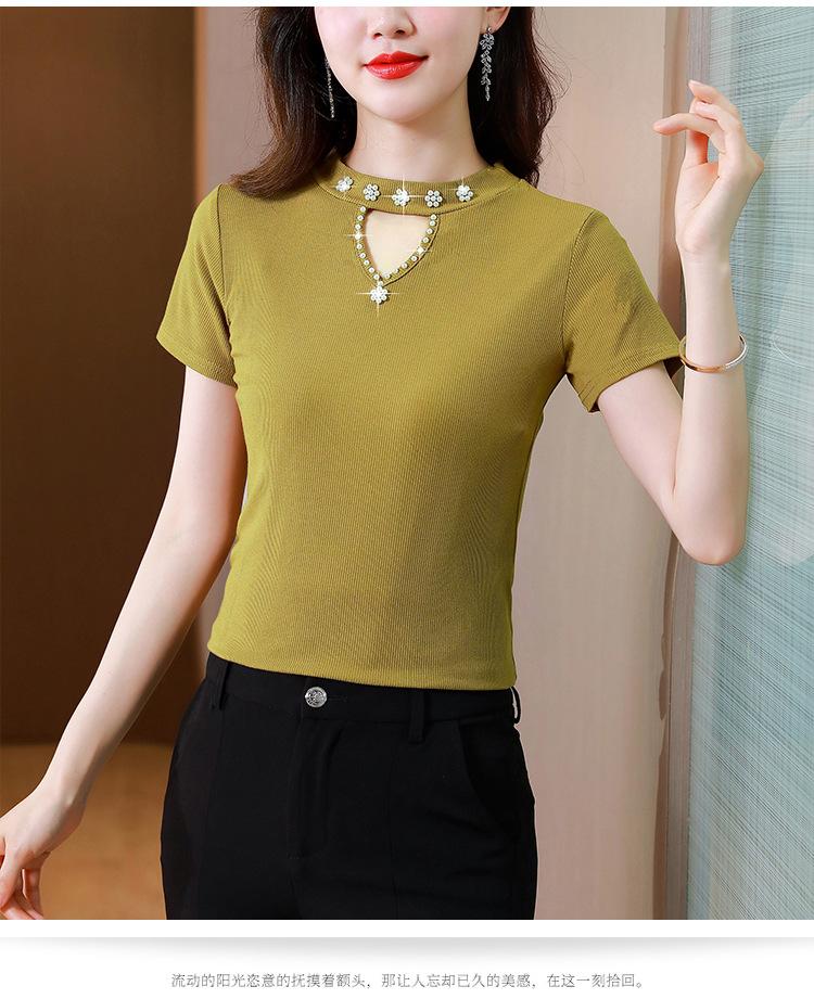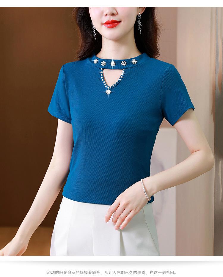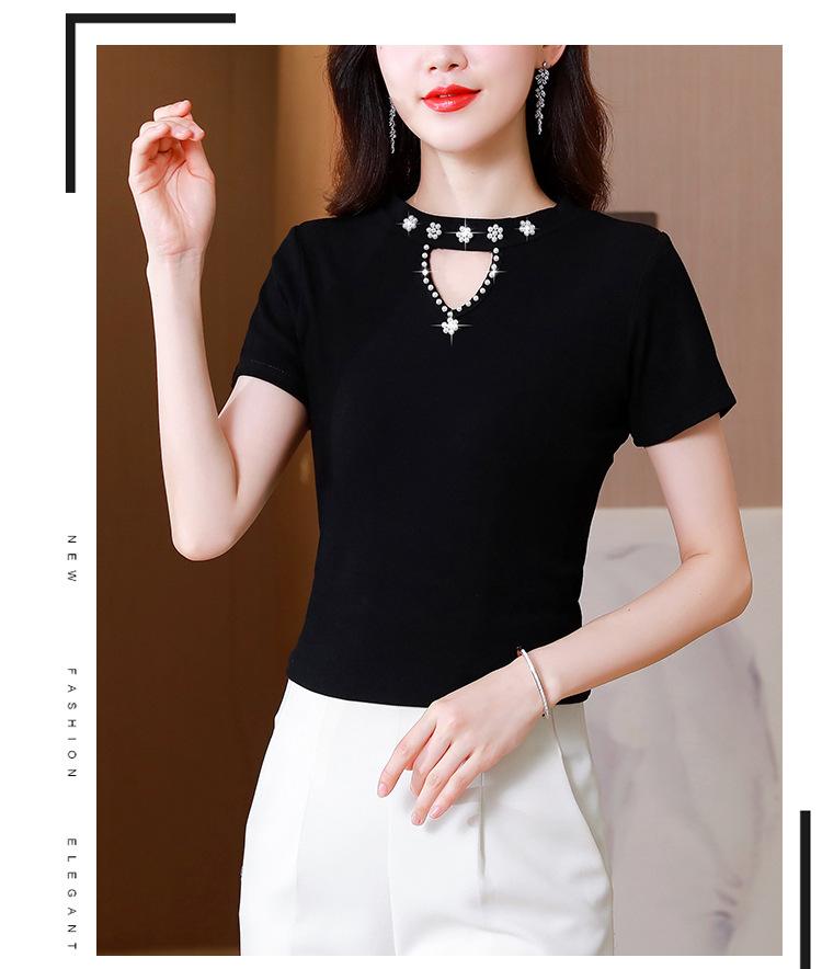 Camiseta Básica Camiseta Manga Corta Mujer 2023 Verano Nuevo Estilo Camisa Pequeña Moda Adelgazante Look Abalorios Recorte Top Trbottomy