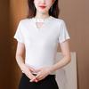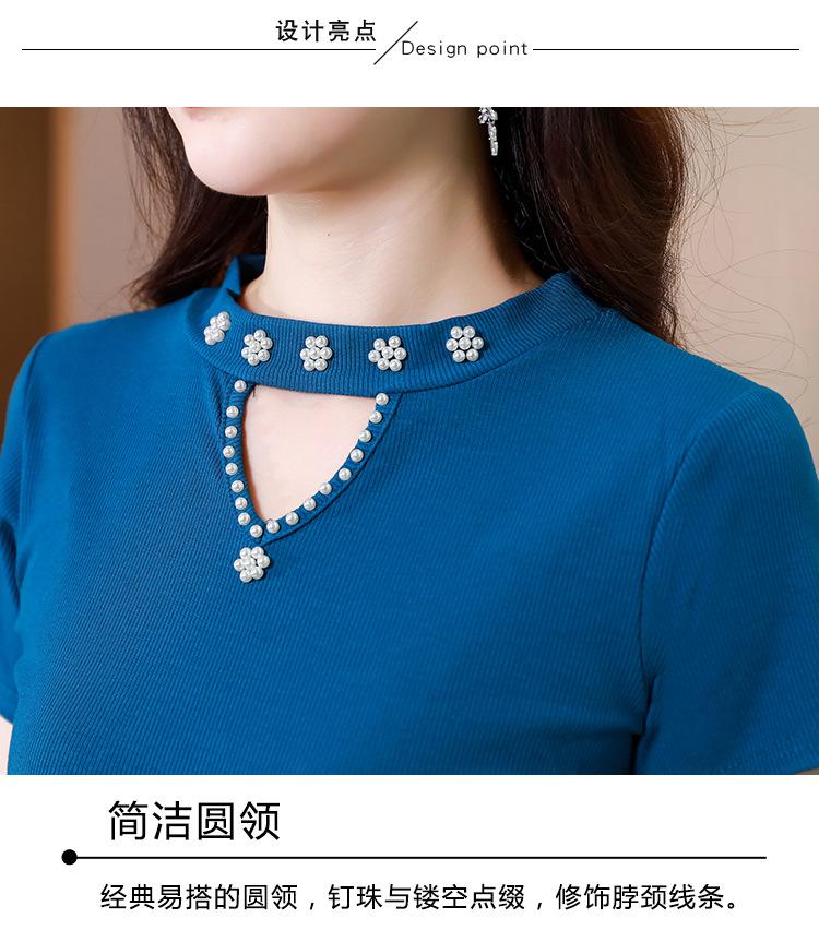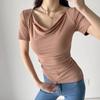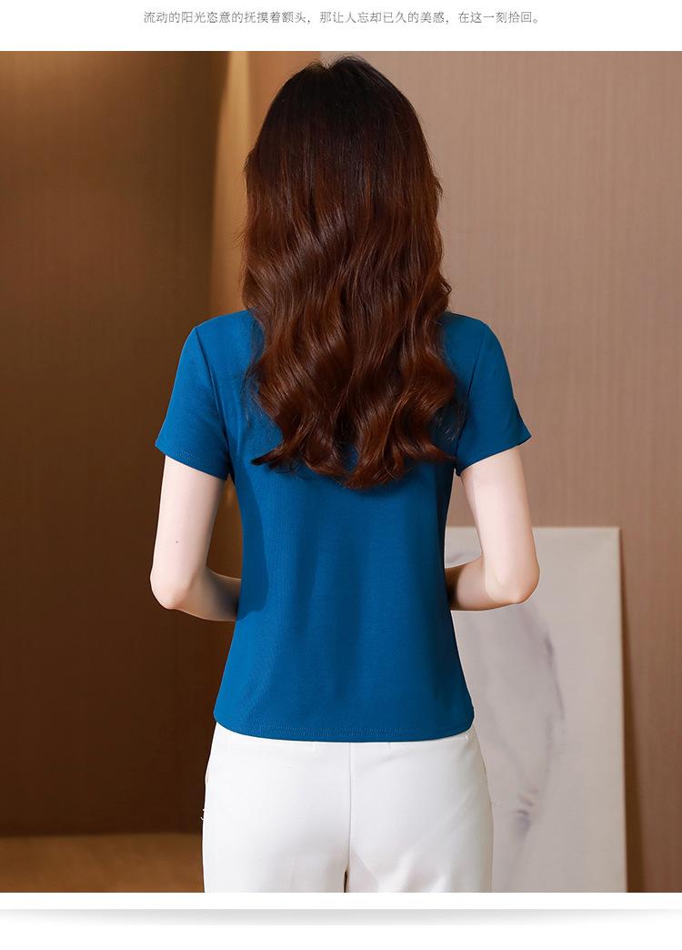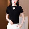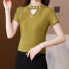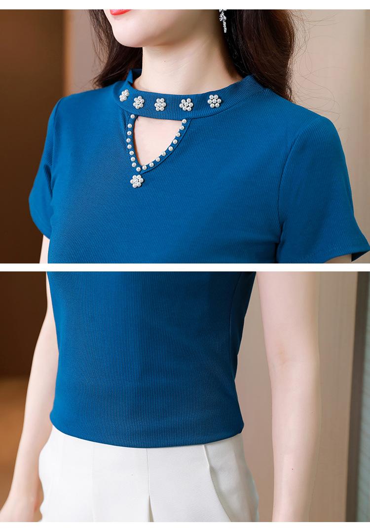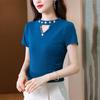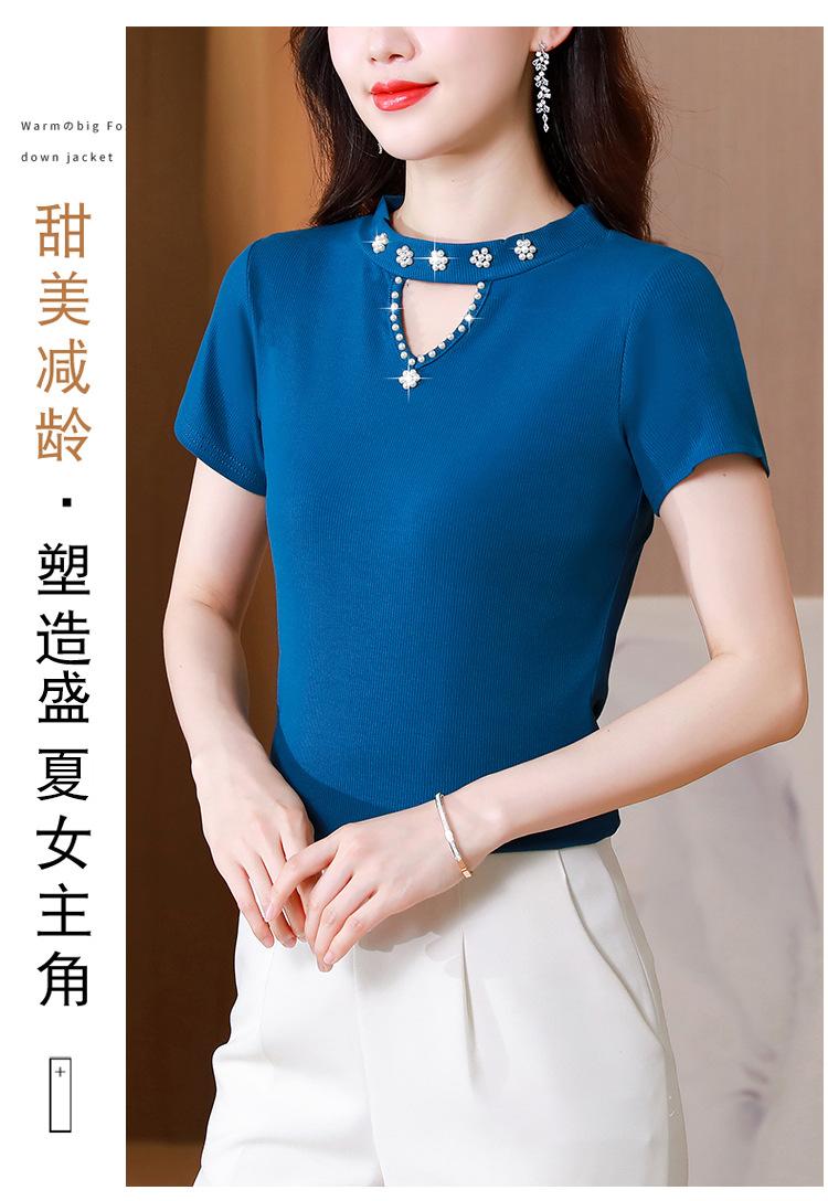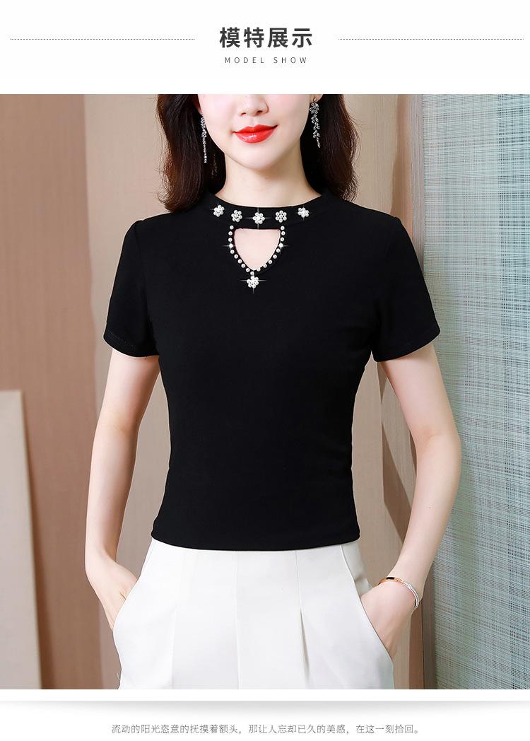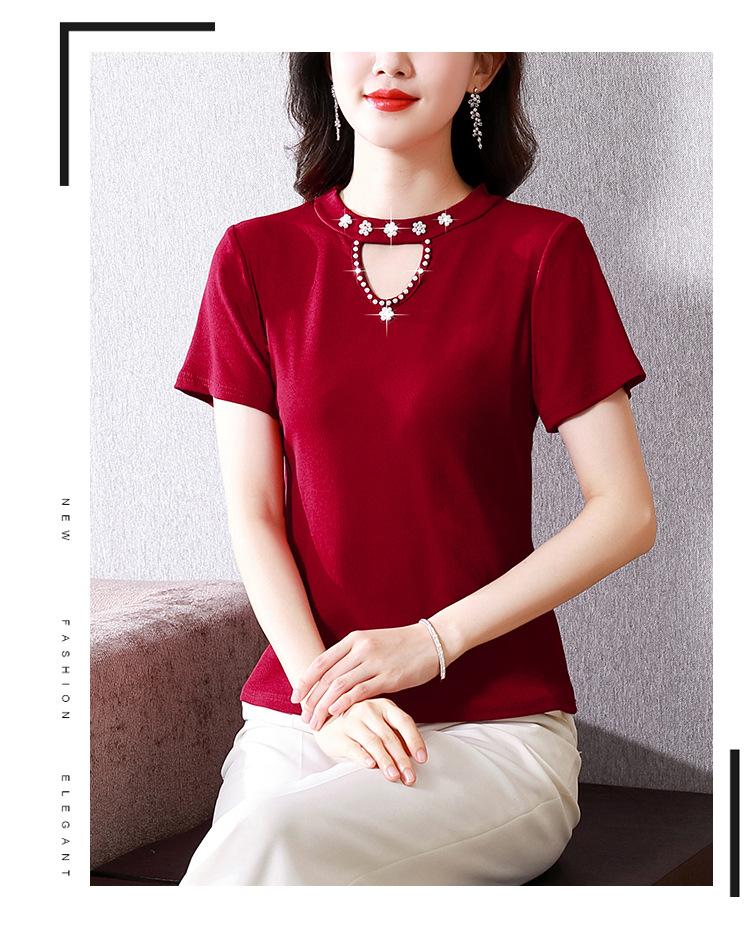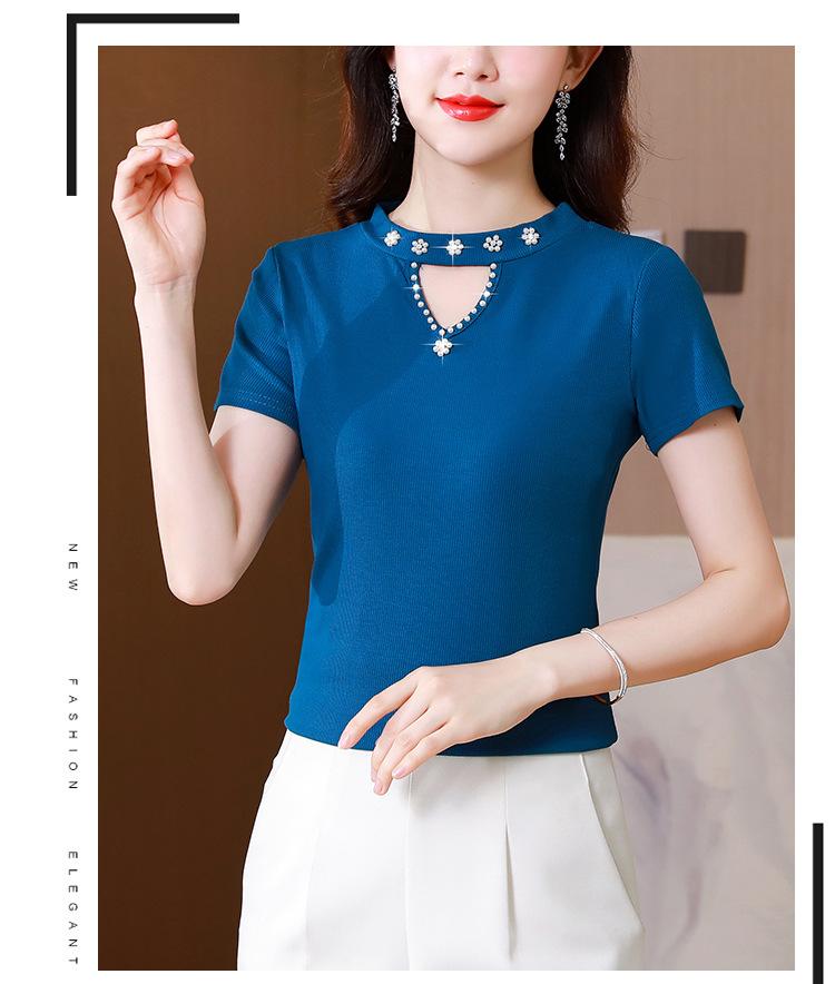 Camiseta Básica Camiseta Manga Corta Mujer 2023 Verano Nuevo Estilo Camisa Pequeña Moda Adelgazante Look Abalorios Recorte Top Trbottomy