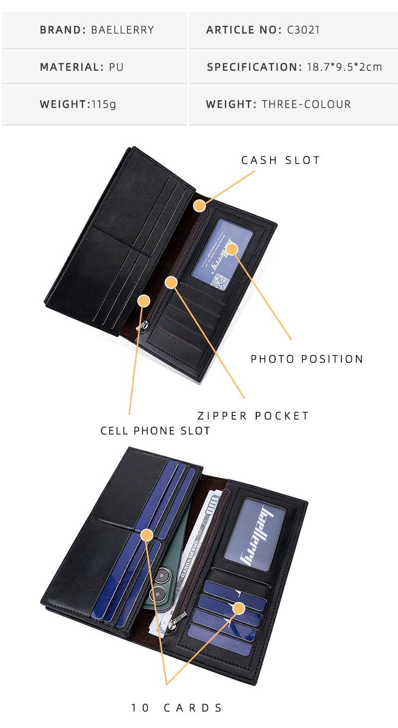 Nueva cartera larga Baellerry para hombre, cartera con cremallera para múltiples tarjetas de negocios europeas y americanas, bolsa de recogida, venta al por mayor