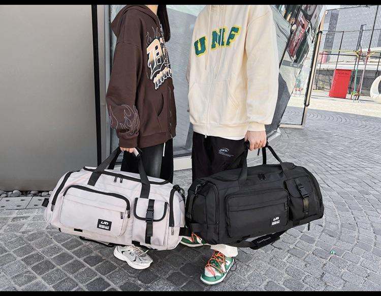Bolsa de viaje portátil de gran capacidad, bolsa de viaje de nailon resistente al desgaste, bolsa de gimnasio separada para mojado y seco, mochila deportiva doble