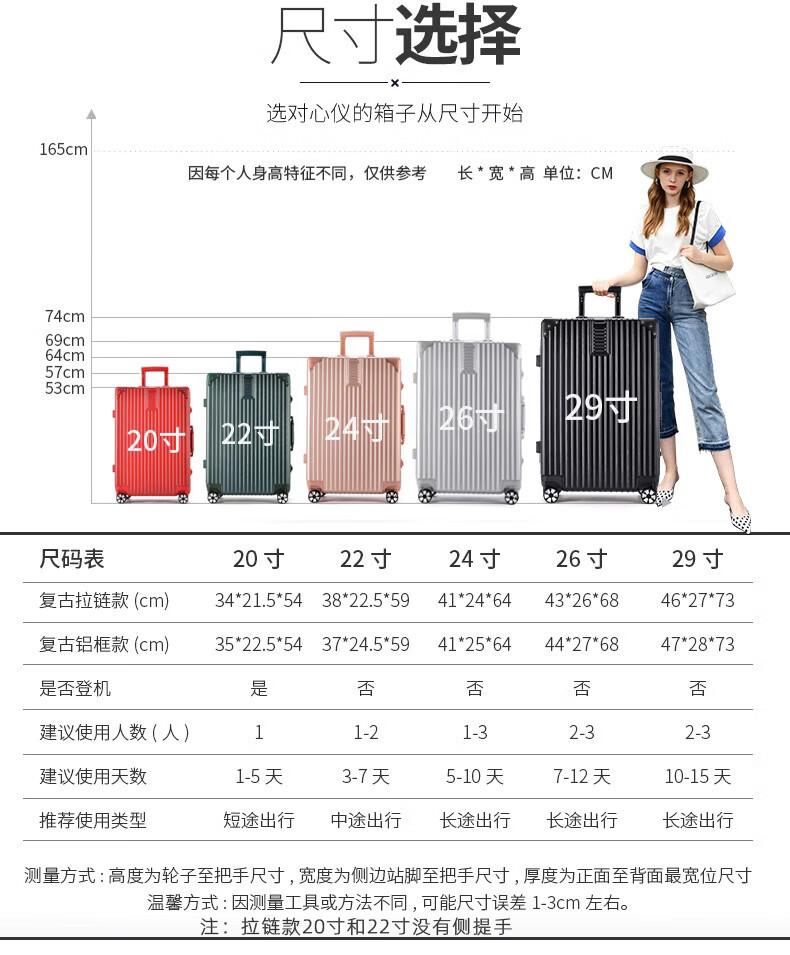 Maleta Trolley de Marco de Aluminio Multitalla Dropshipping Ruedas Universales para Mujeres Maleta de 24 pulgadas Retro Caja con Contraseña para Estudiantes de 20 pulgadas Venta al por Mayor