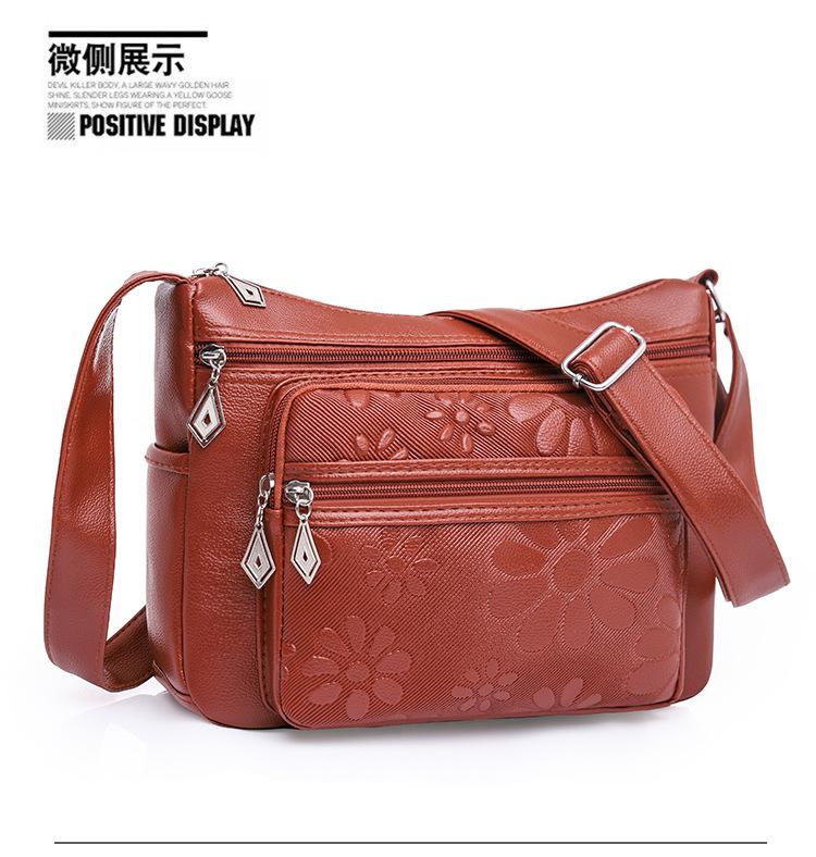 Bolso pequeño cuadrado de cuero suave transfronterizo nuevo, bolso bandolera retro europeo y americano para mujer, bolso de hombro para mujer de mediana edad, bolso para madre, bolso de mujer de gran capacidad
