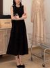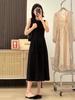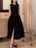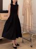 Vestido negro sin mangas tipo A para mujer, estilo nuevo de verano, pequeño, alto, cuello redondo, elegante, falda larga