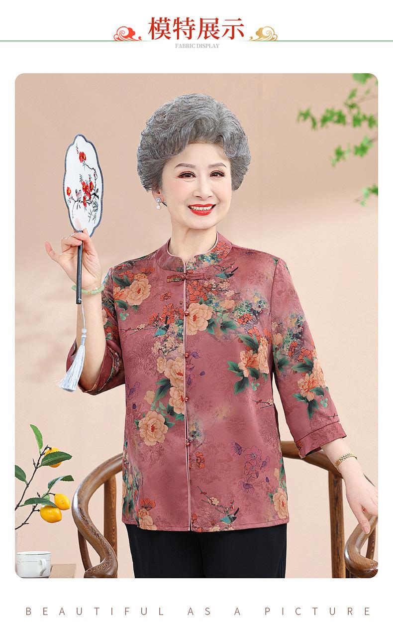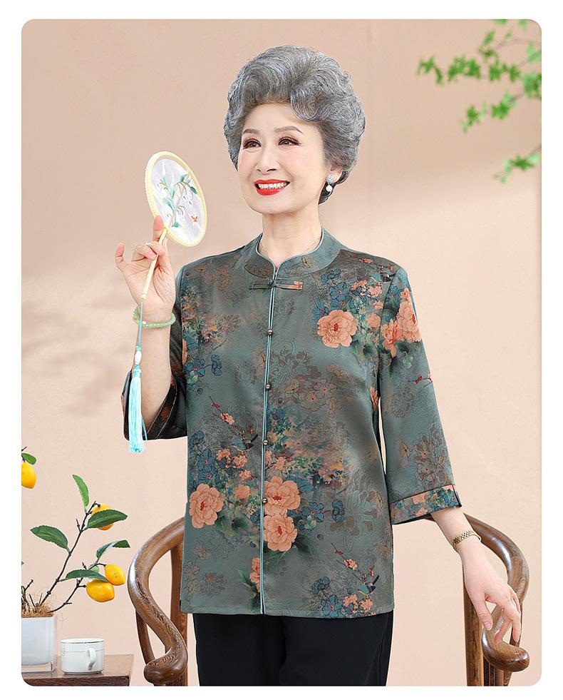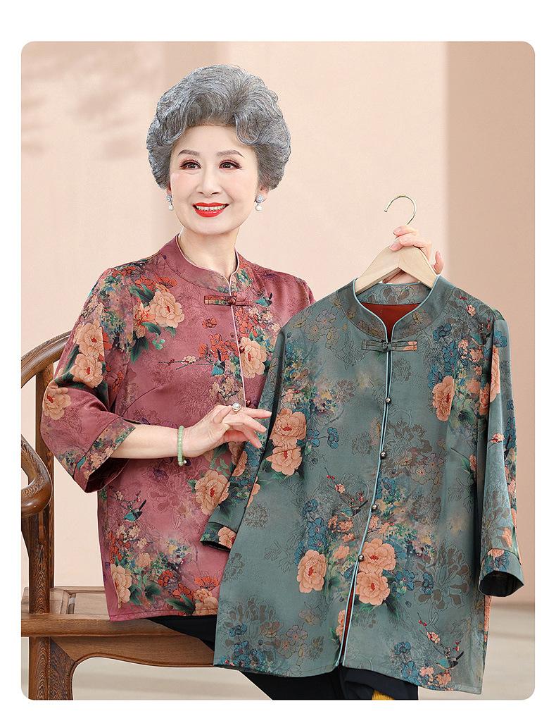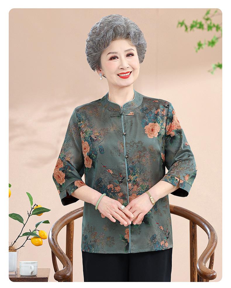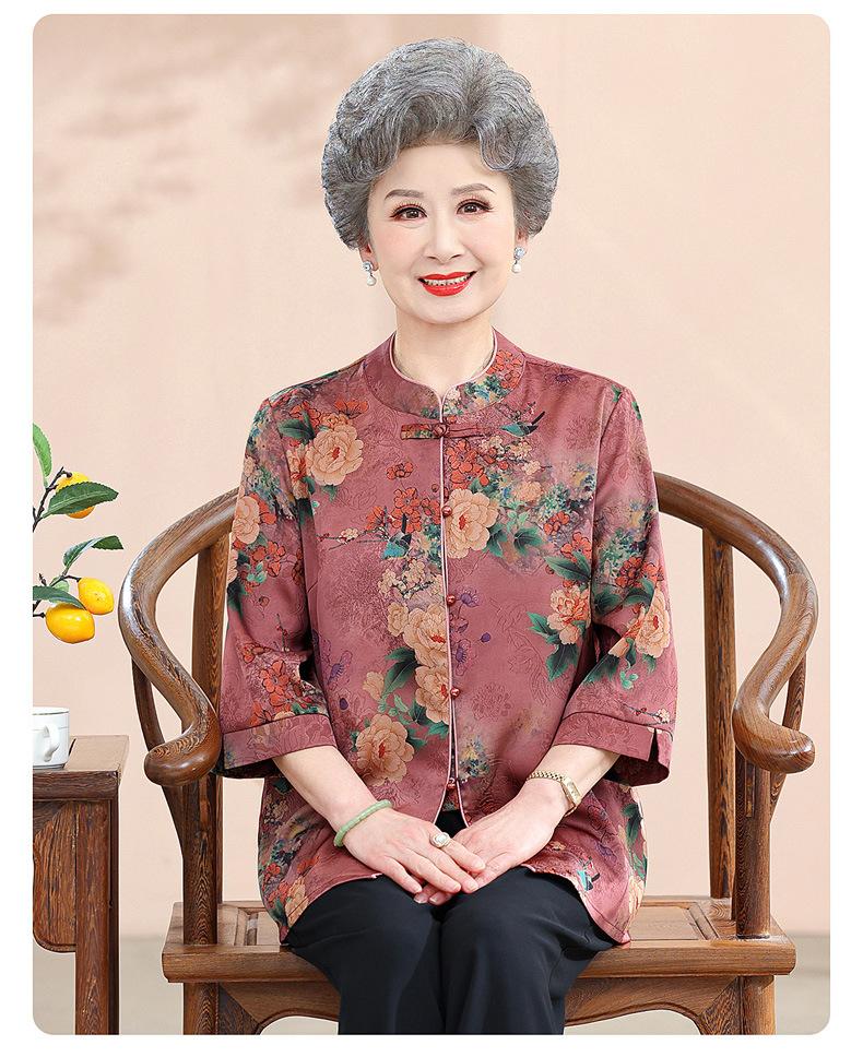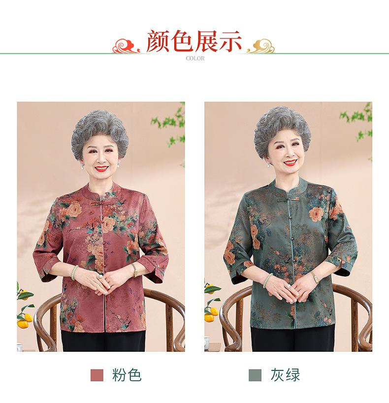 Compra Camisa de seda para mujer de mediana edad y anciana, primavera y verano, con estampado de abuela, de siete mangas, 2024 al por mayor en Joom.pro