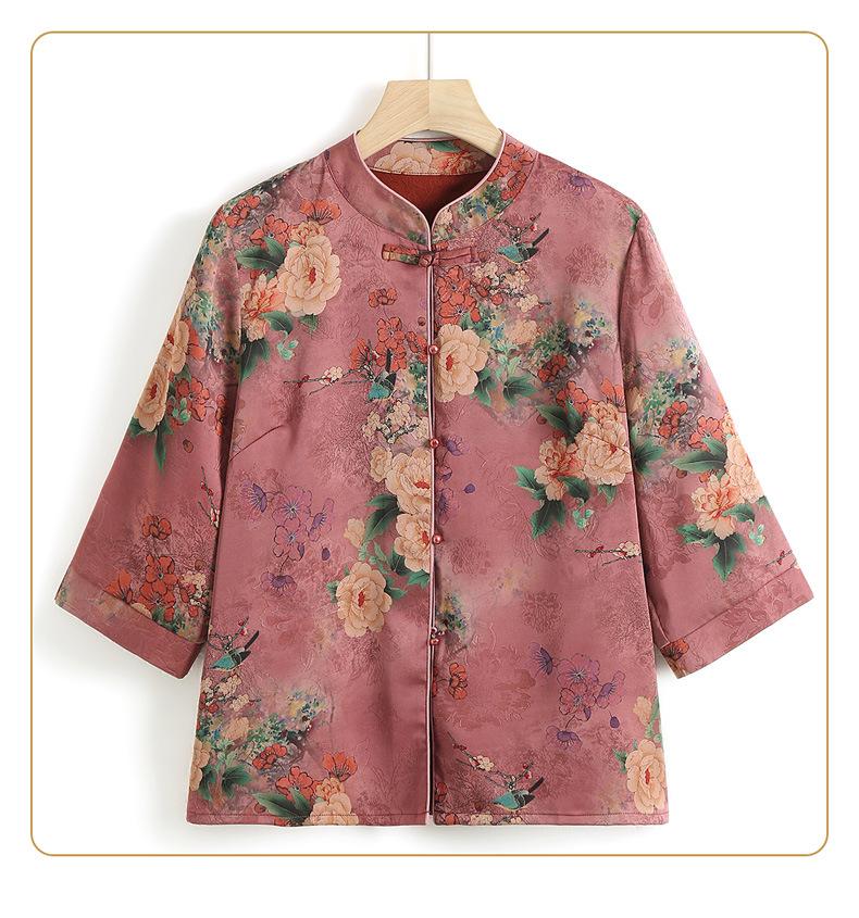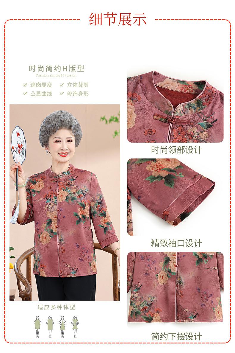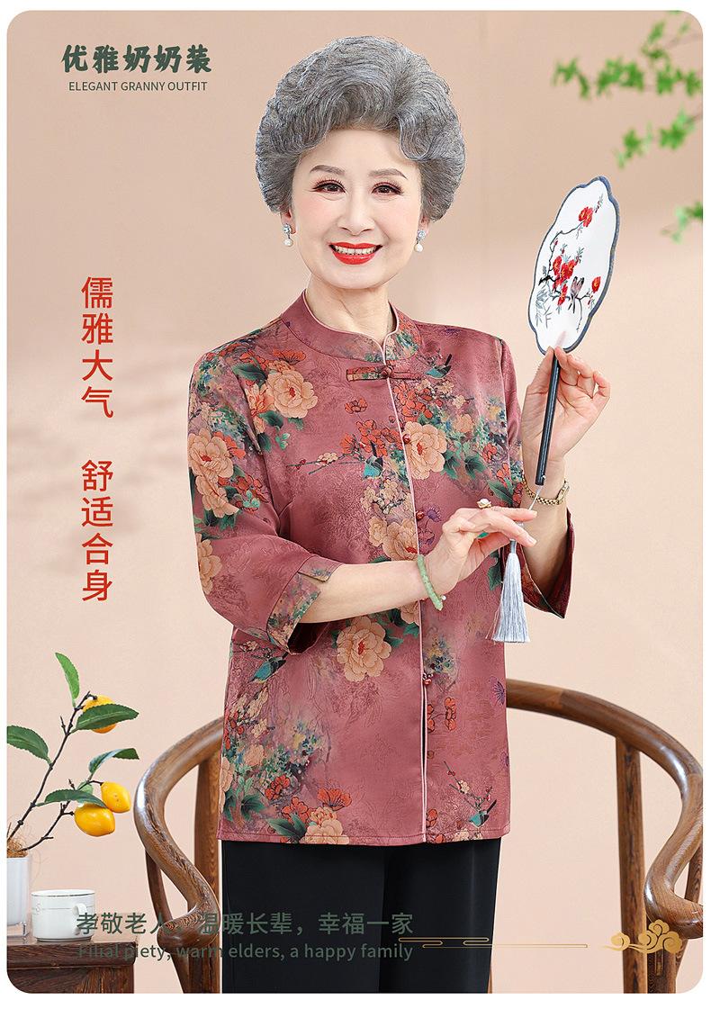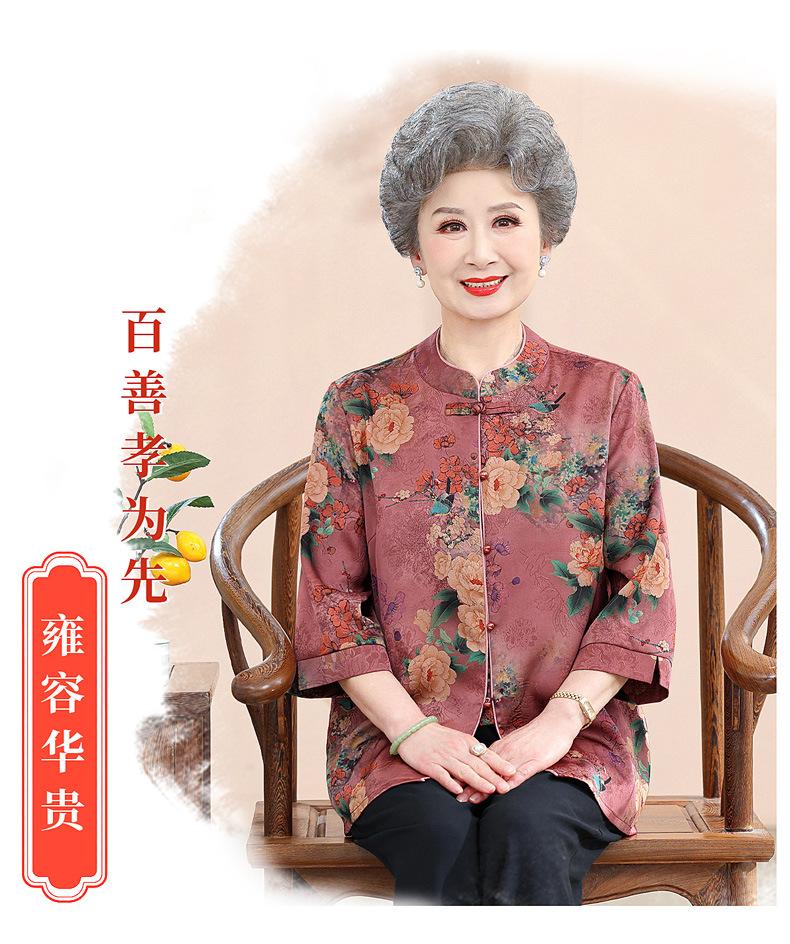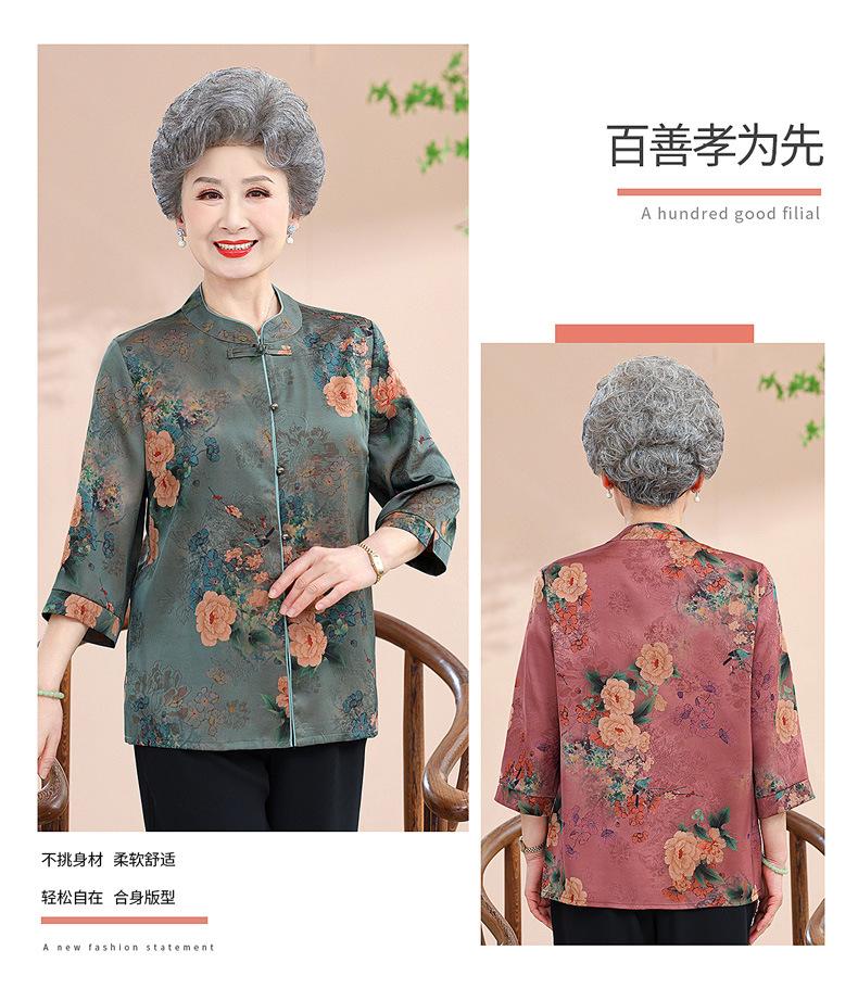 Compra Camisa de seda para mujer de mediana edad y anciana, primavera y verano, con estampado de abuela, de siete mangas, 2024 al por mayor en Joom.pro