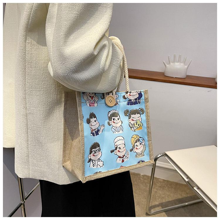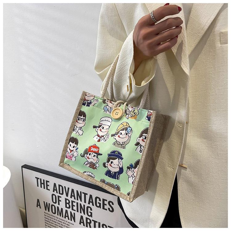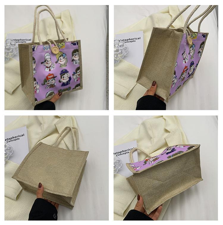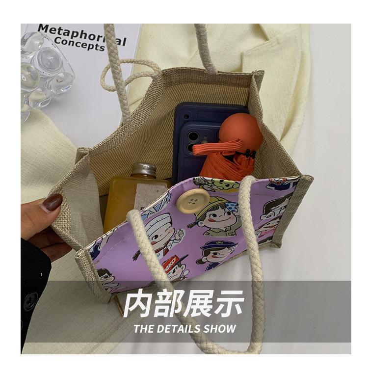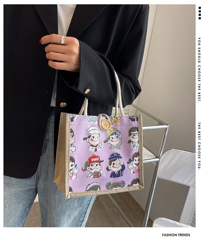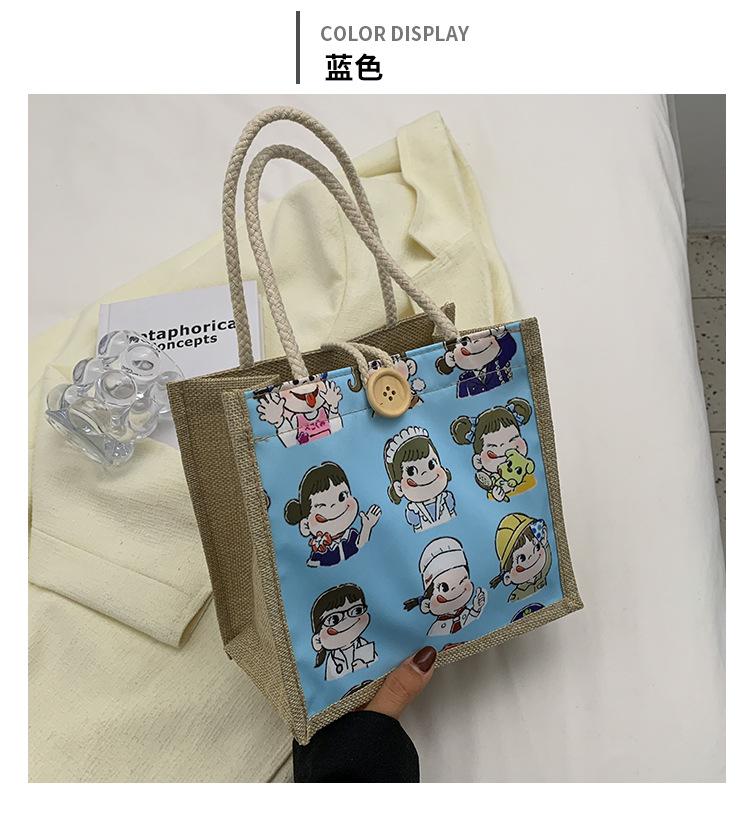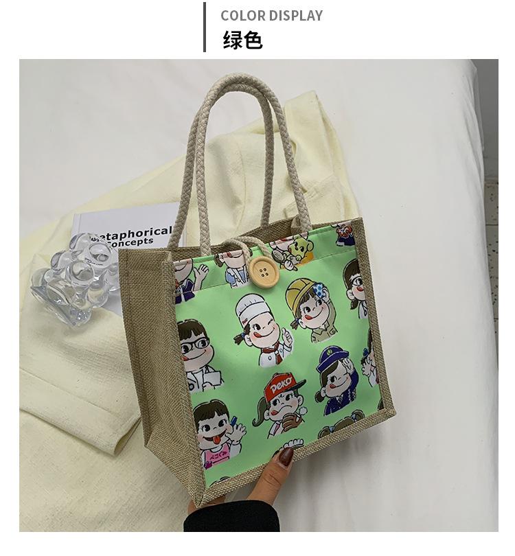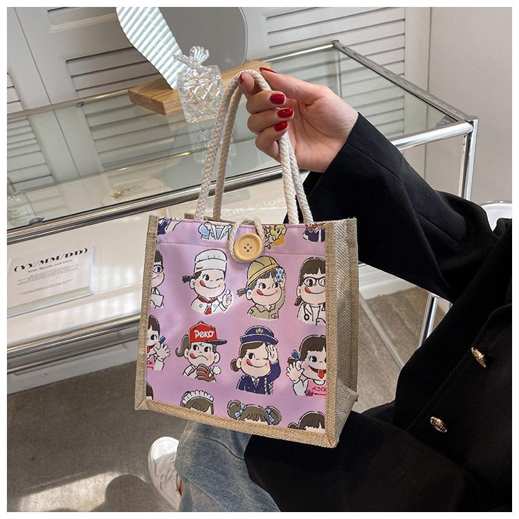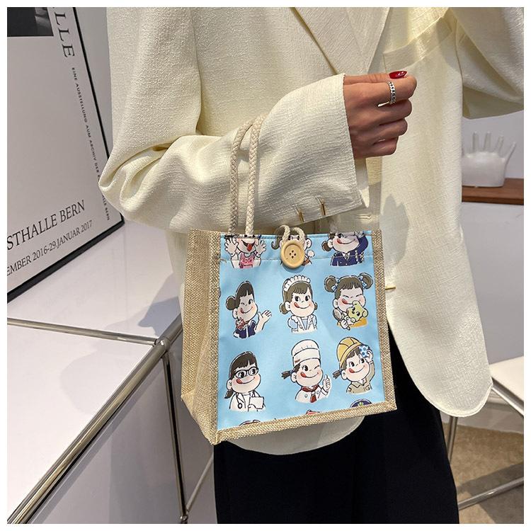 Bolsa Lonchera de Dibujos Animados Bolso de Mano de Lino para Mujer Salida Duradera Bolsa de Almacenamiento de Maquillaje Verano Mano Lona Bolsa de Compras