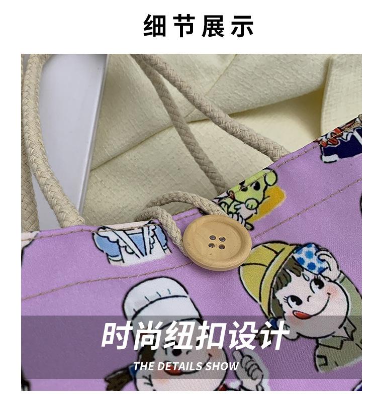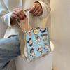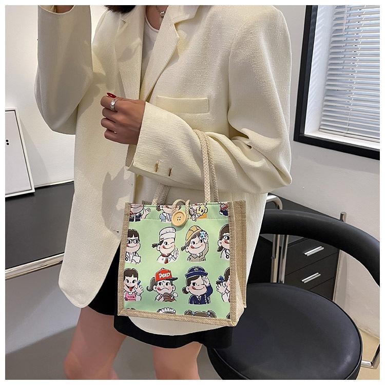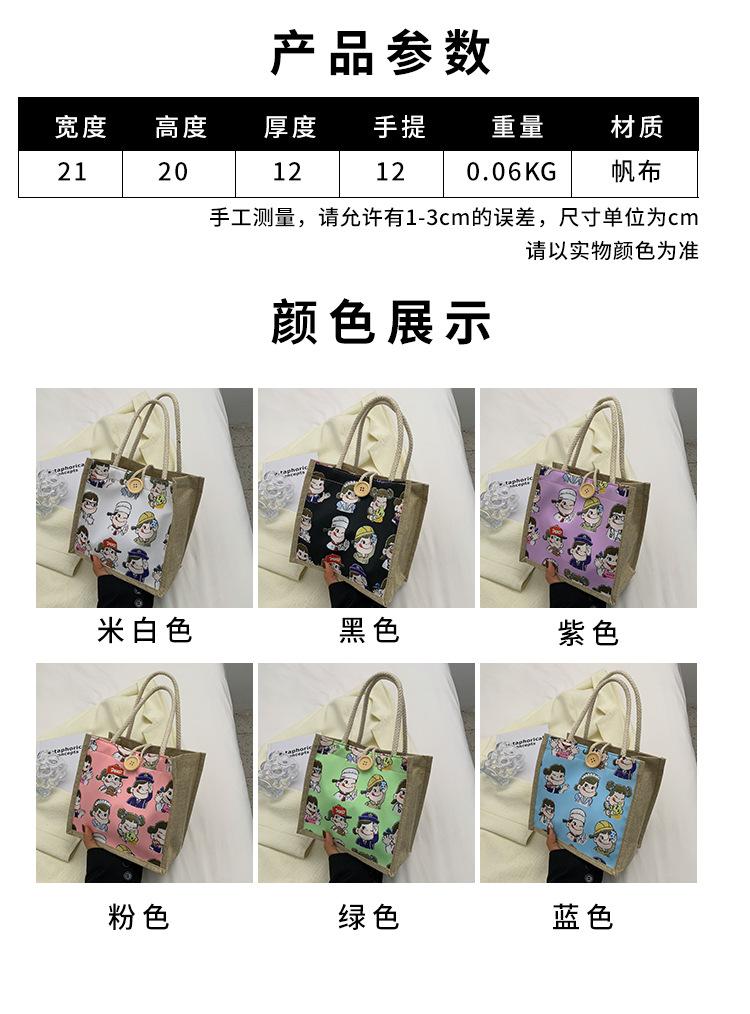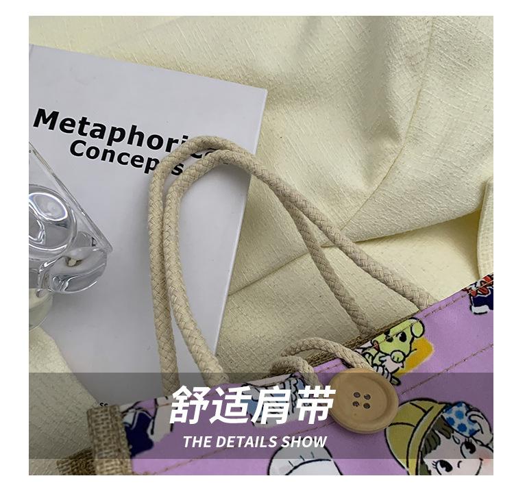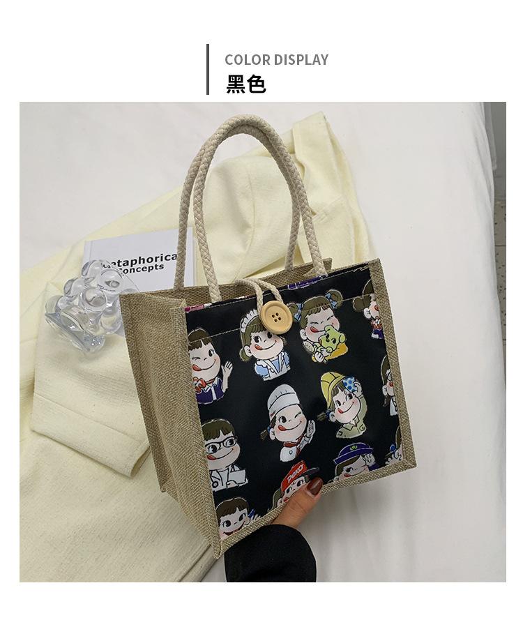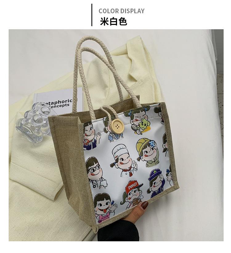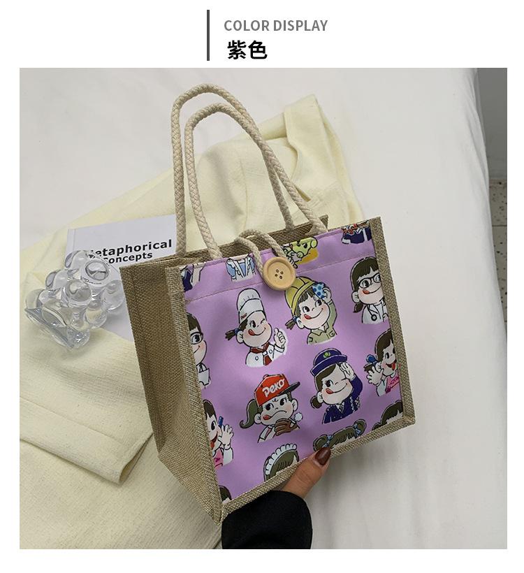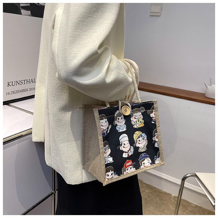 Bolsa Lonchera de Dibujos Animados Bolso de Mano de Lino para Mujer Salida Duradera Bolsa de Almacenamiento de Maquillaje Verano Mano Lona Bolsa de Compras