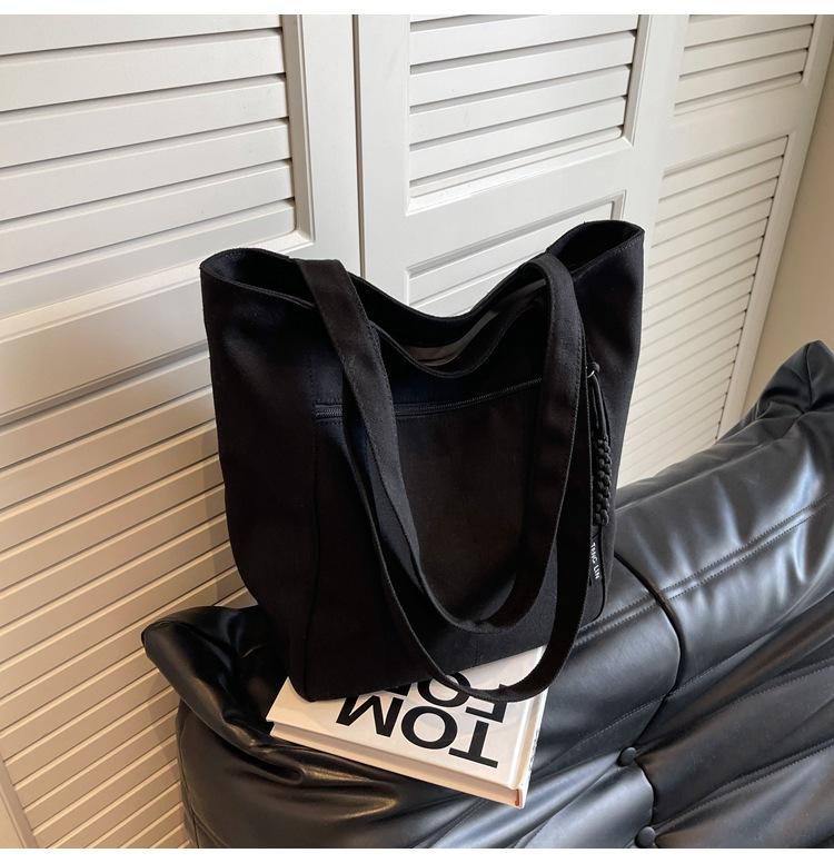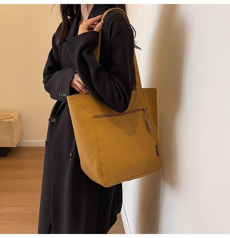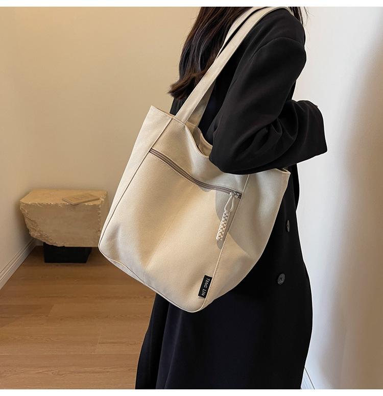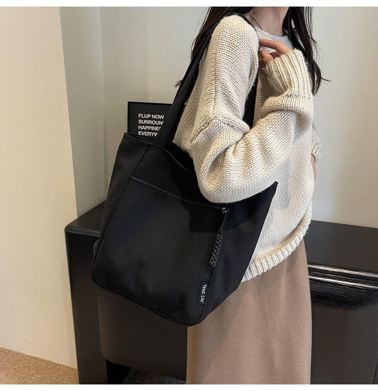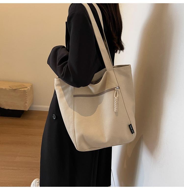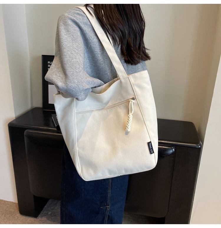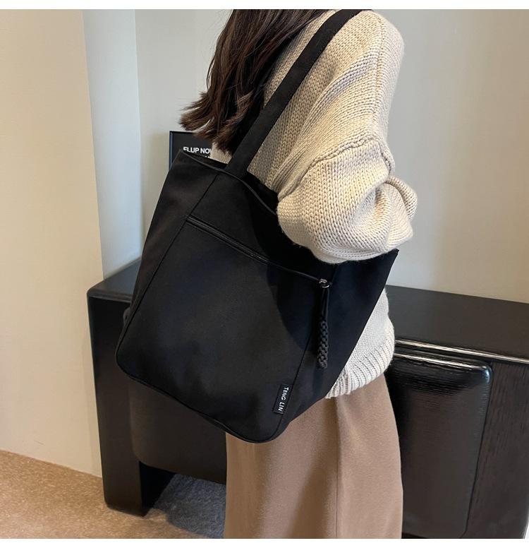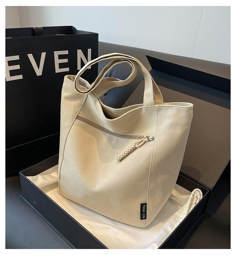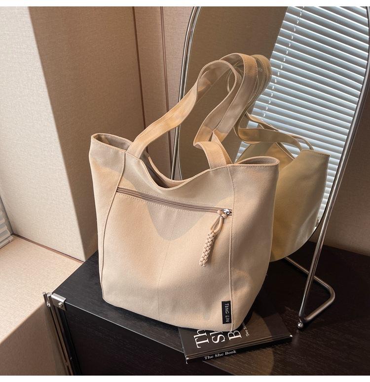 Bolso de lona para mujer, gran capacidad, nuevo otoño 2023, versátil, de un solo hombro, tipo cubo, bolso de tela con textura, bolso de mano para uso diario
