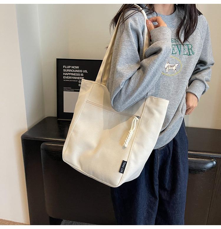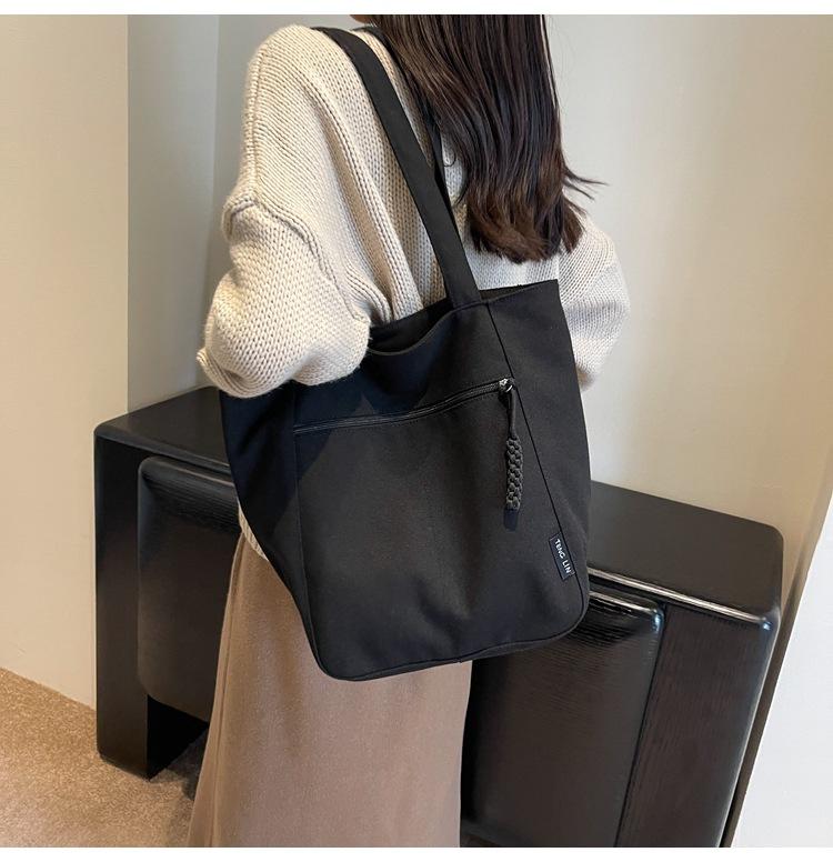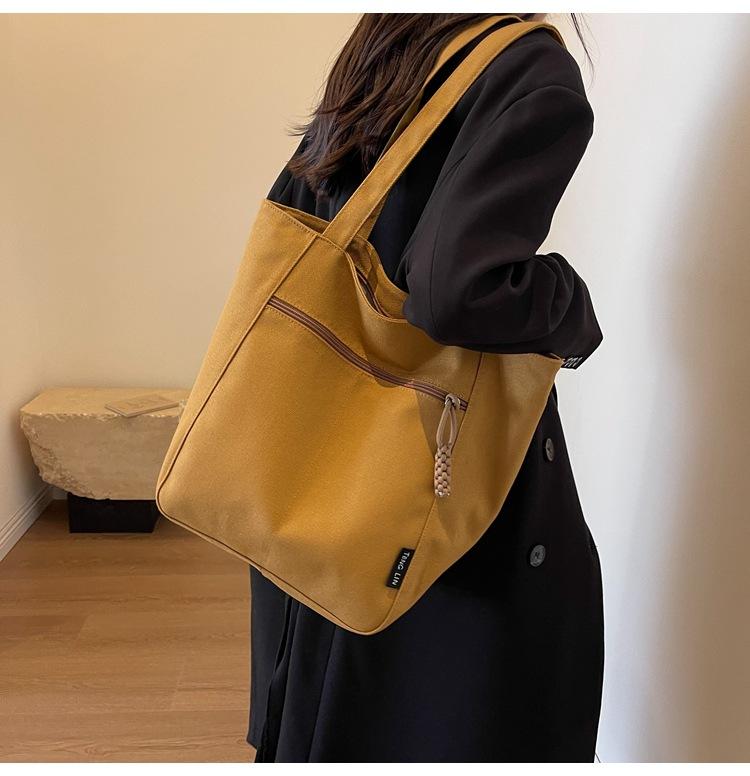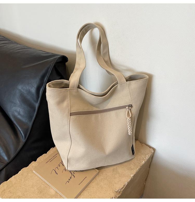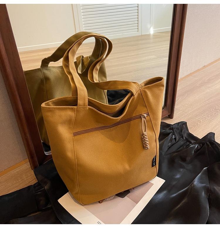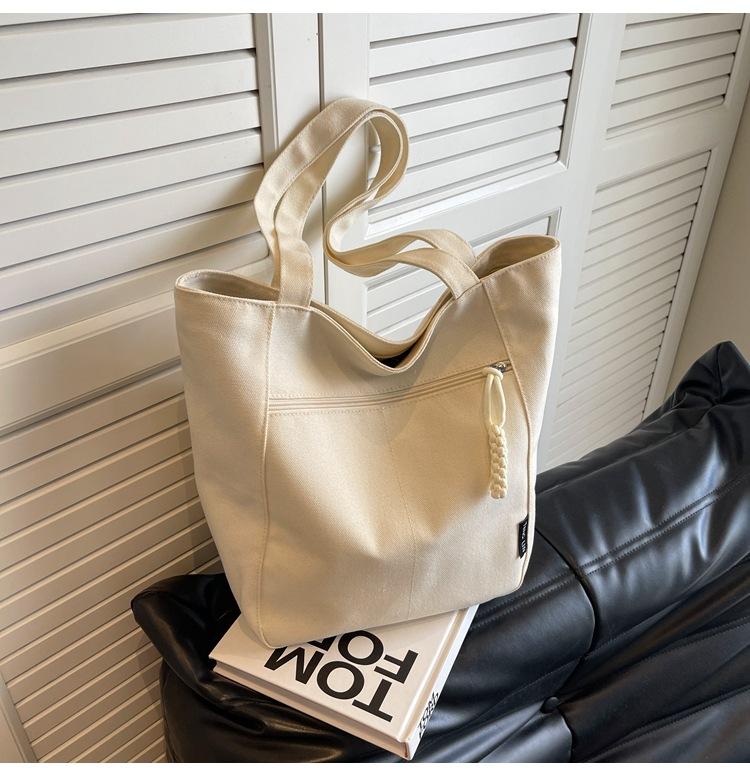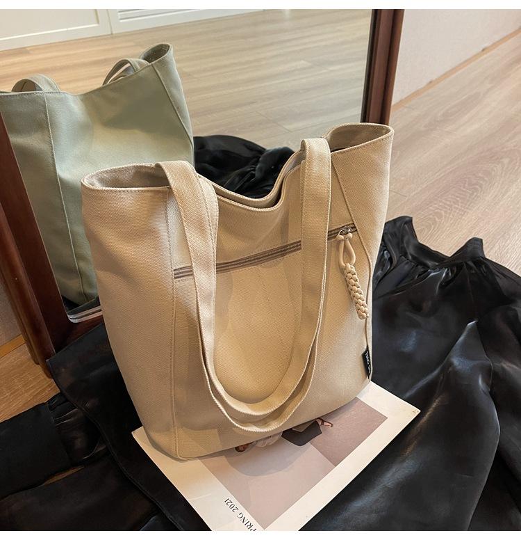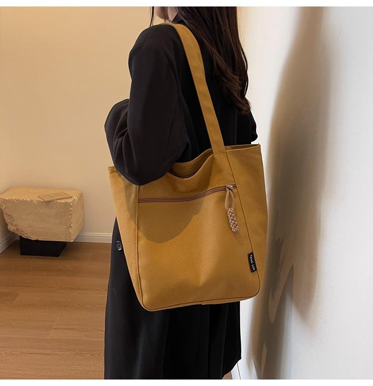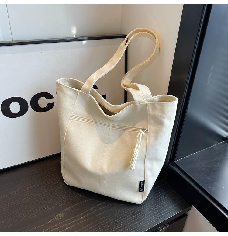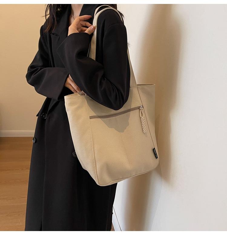 Bolso de lona para mujer, gran capacidad, nuevo otoño 2023, versátil, de un solo hombro, tipo cubo, bolso de tela con textura, bolso de mano para uso diario