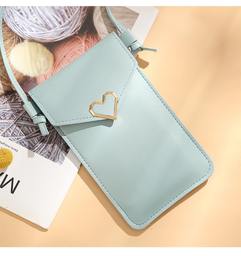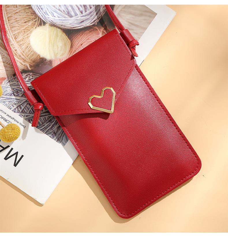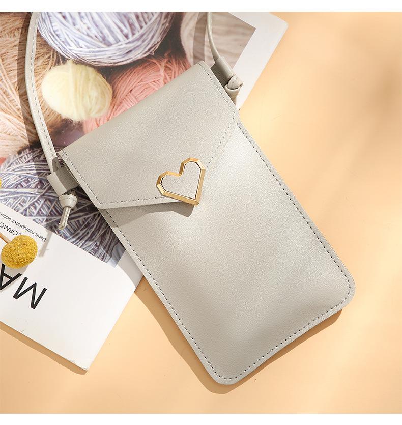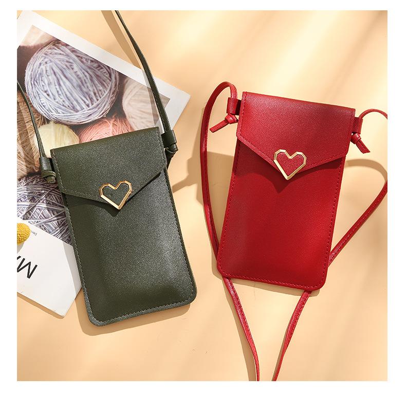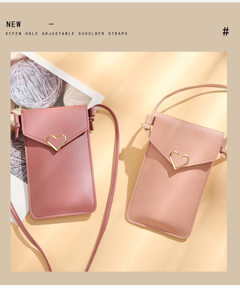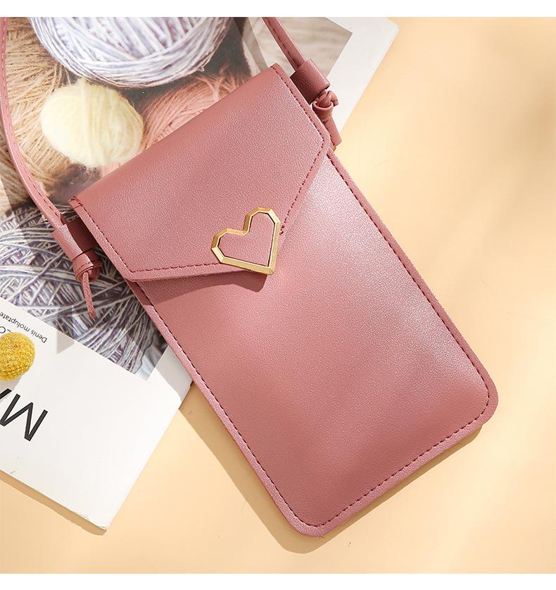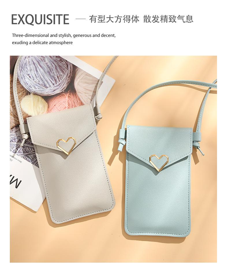 Nuevo bolso cruzado para teléfono móvil con pantalla táctil transparente, cartera para teléfono móvil, retro para estudiante, color sólido, hebilla de amor, billetera pequeña