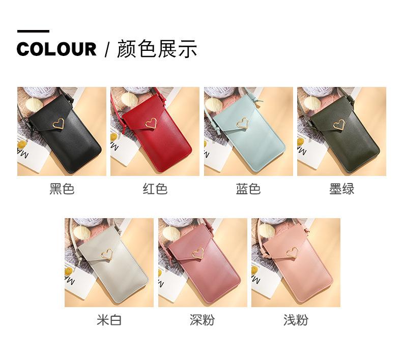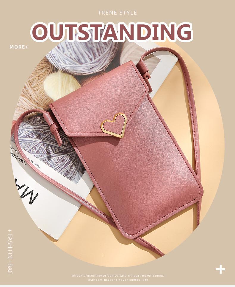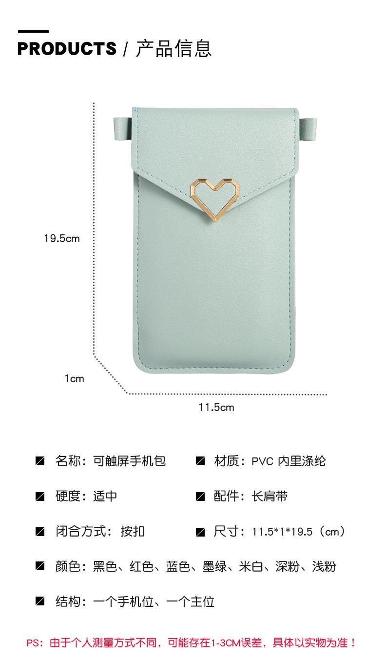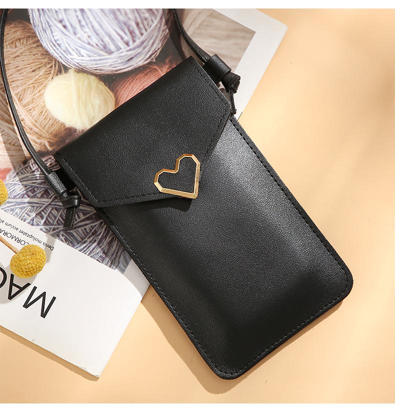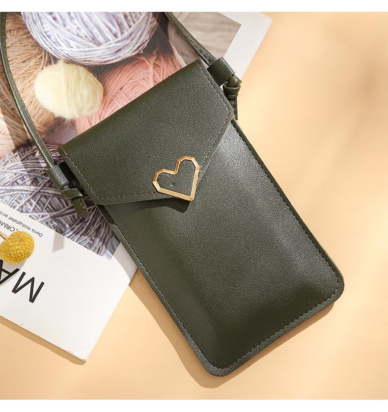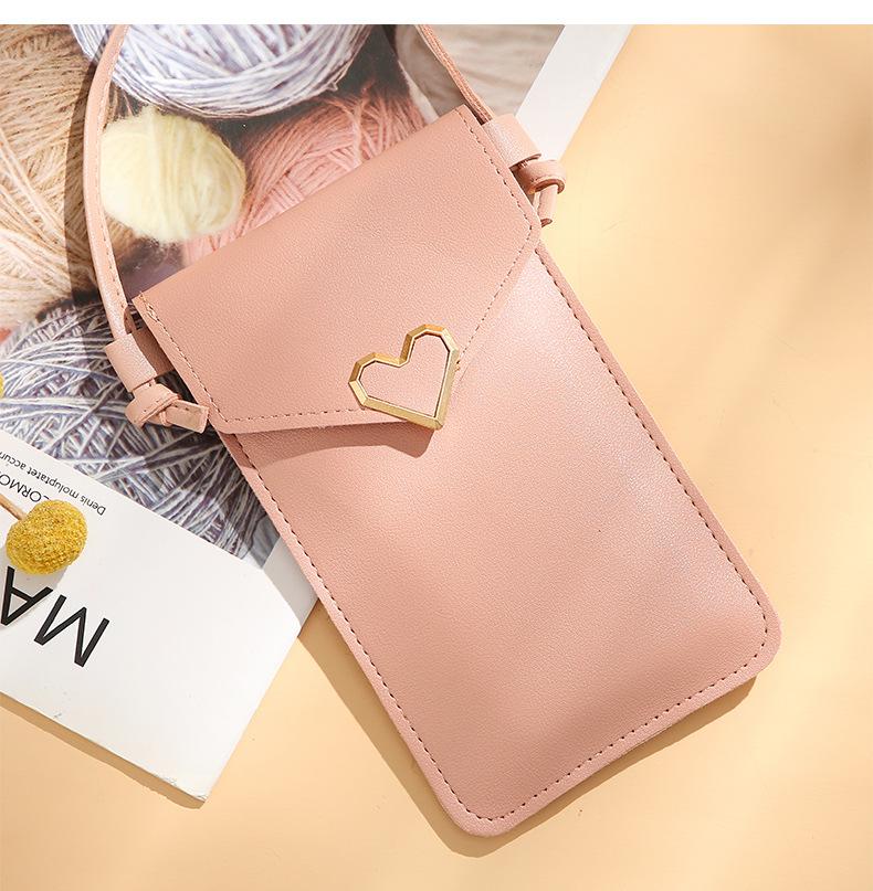Nuevo bolso cruzado para teléfono móvil con pantalla táctil transparente, cartera para teléfono móvil, retro para estudiante, color sólido, hebilla de amor, billetera pequeña