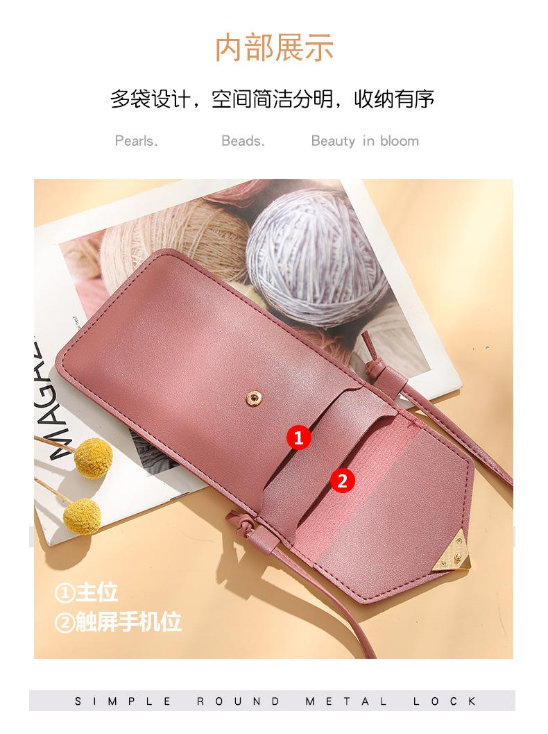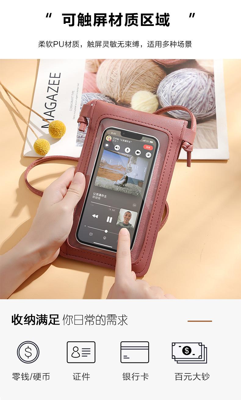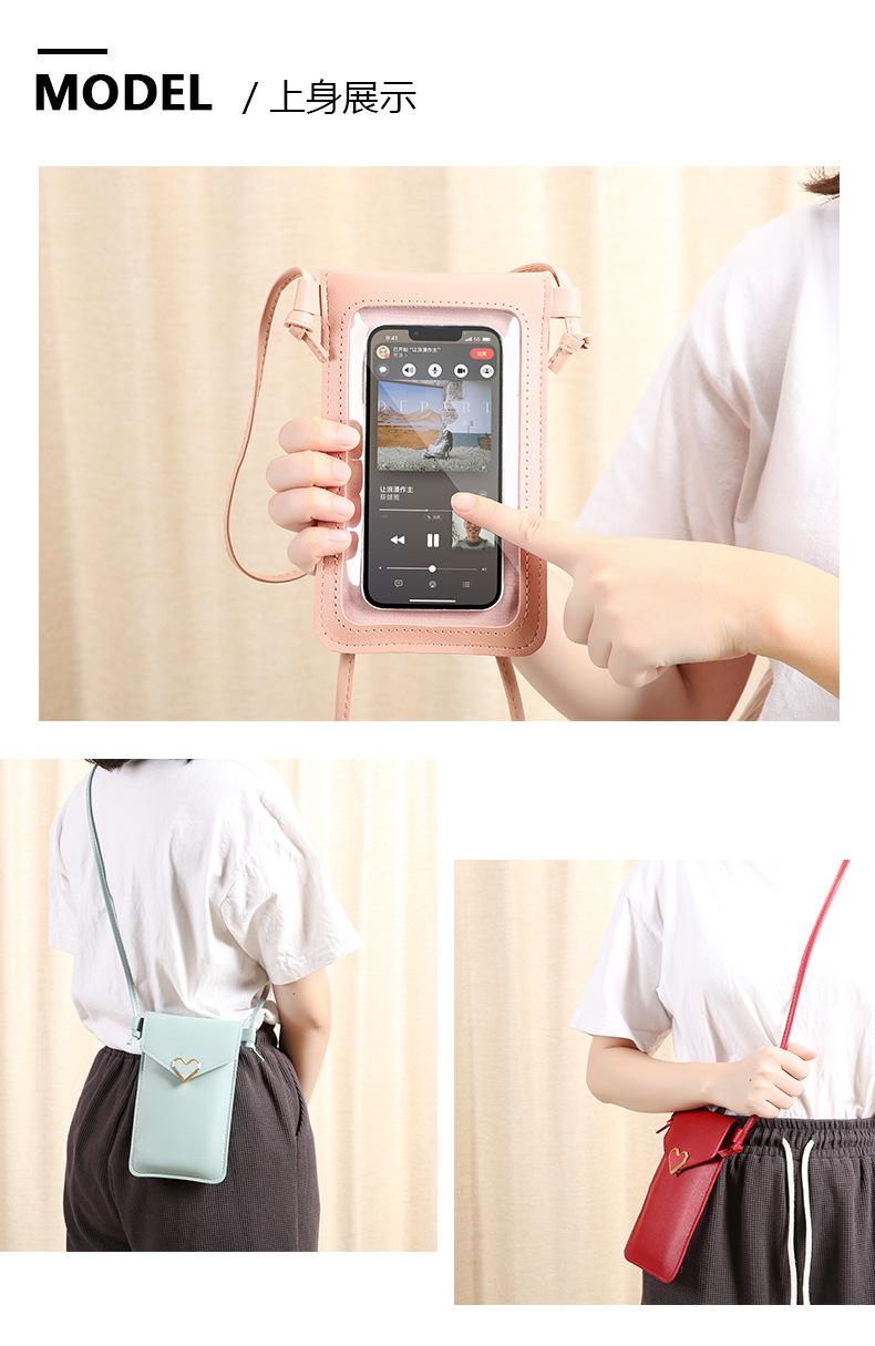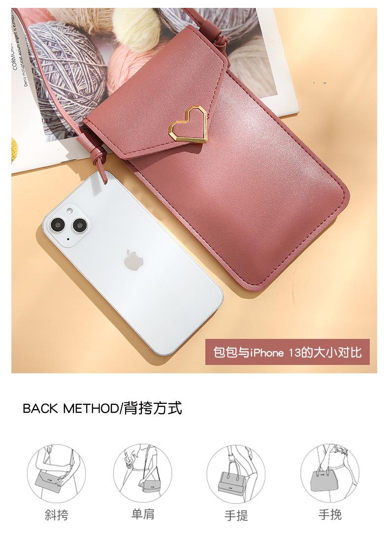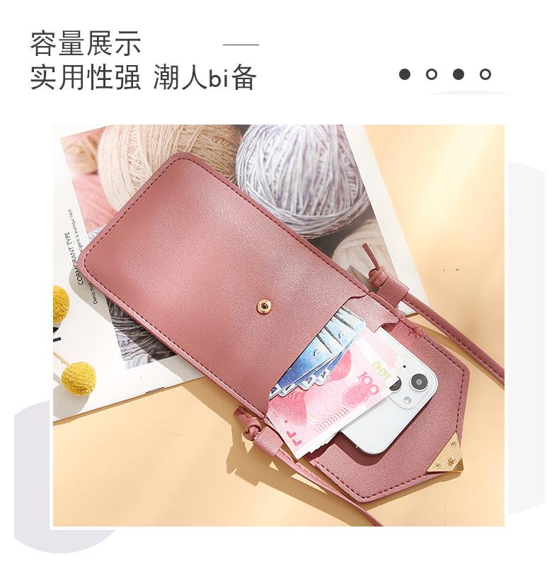 Nuevo bolso cruzado para teléfono móvil con pantalla táctil transparente, cartera para teléfono móvil, retro para estudiante, color sólido, hebilla de amor, billetera pequeña