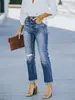 Vaqueros rasgados, bordados y ajustados de cintura media alta para mujer, estilo europeo y americano, de AliExpress.