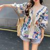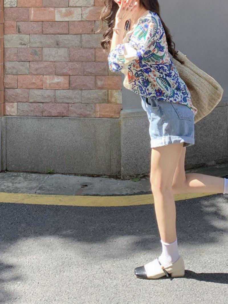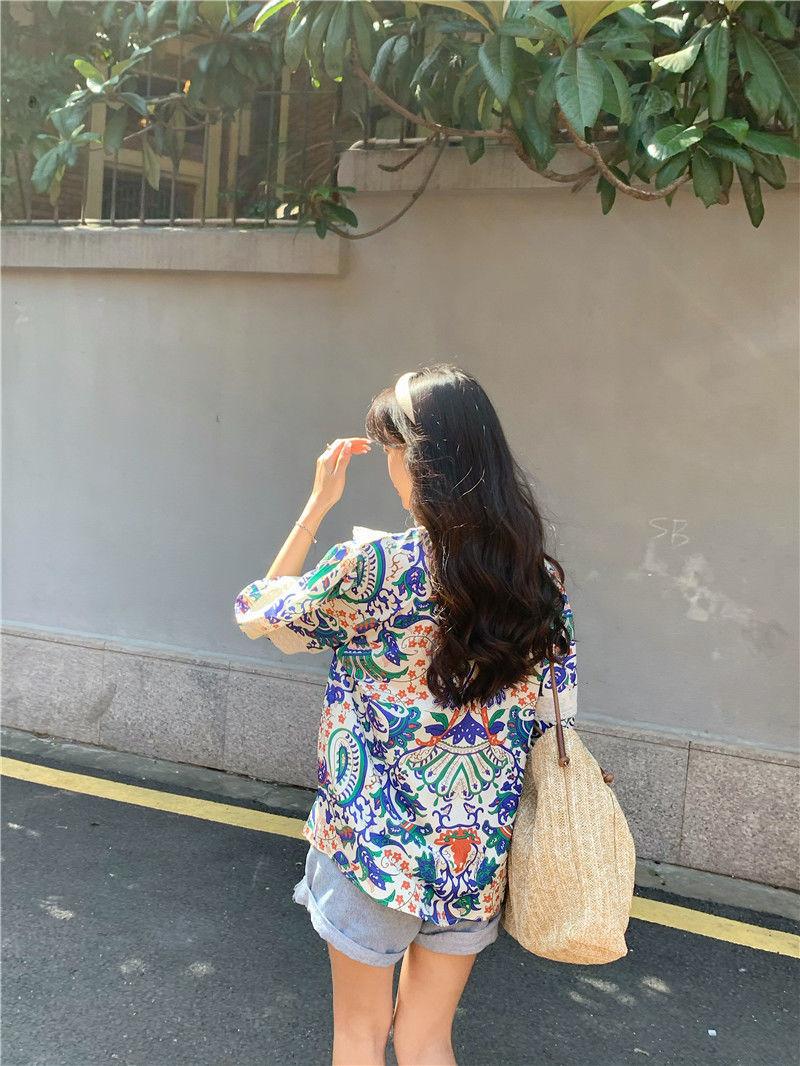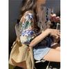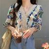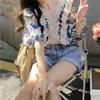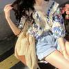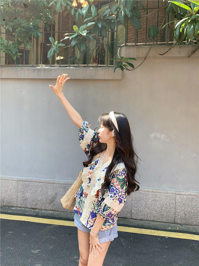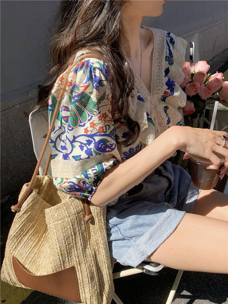Camisa de Manga Corta Top de Mujer Verano 2023 Nuevo Cuello Encaje Floral Manga Abullonada Camisa de Alta Gama