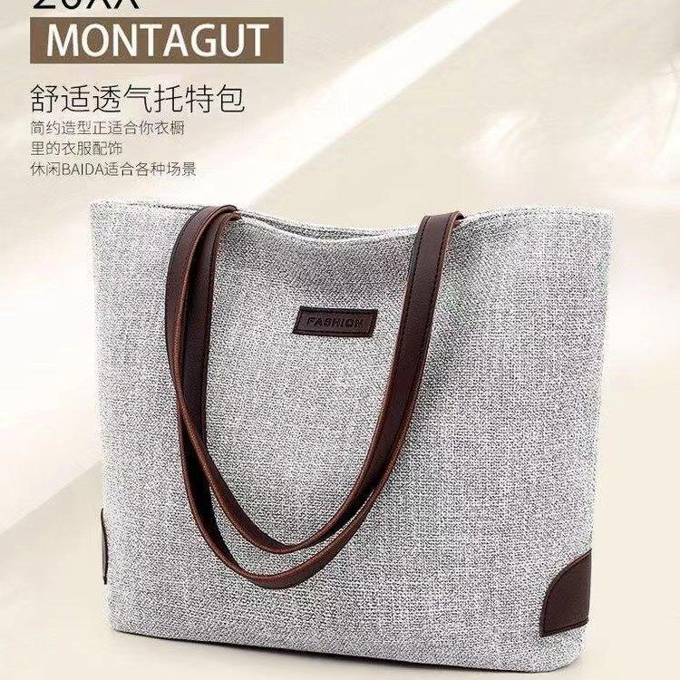 Bolso de hombro de moda de moda 2023, nuevo bolso de mano de lino de gran capacidad, bolso de mano informal sencillo para mujer, bolso de viaje