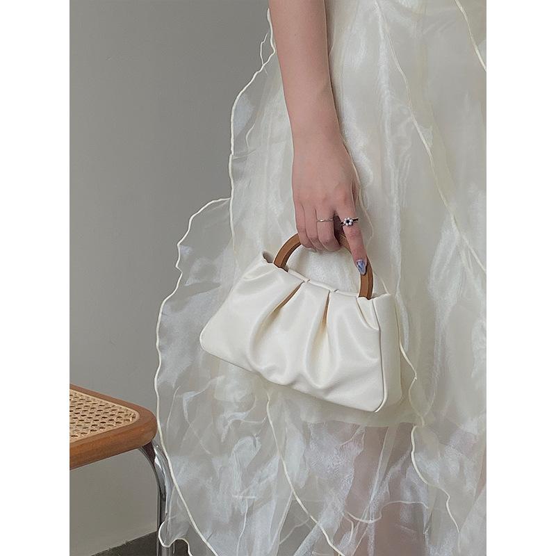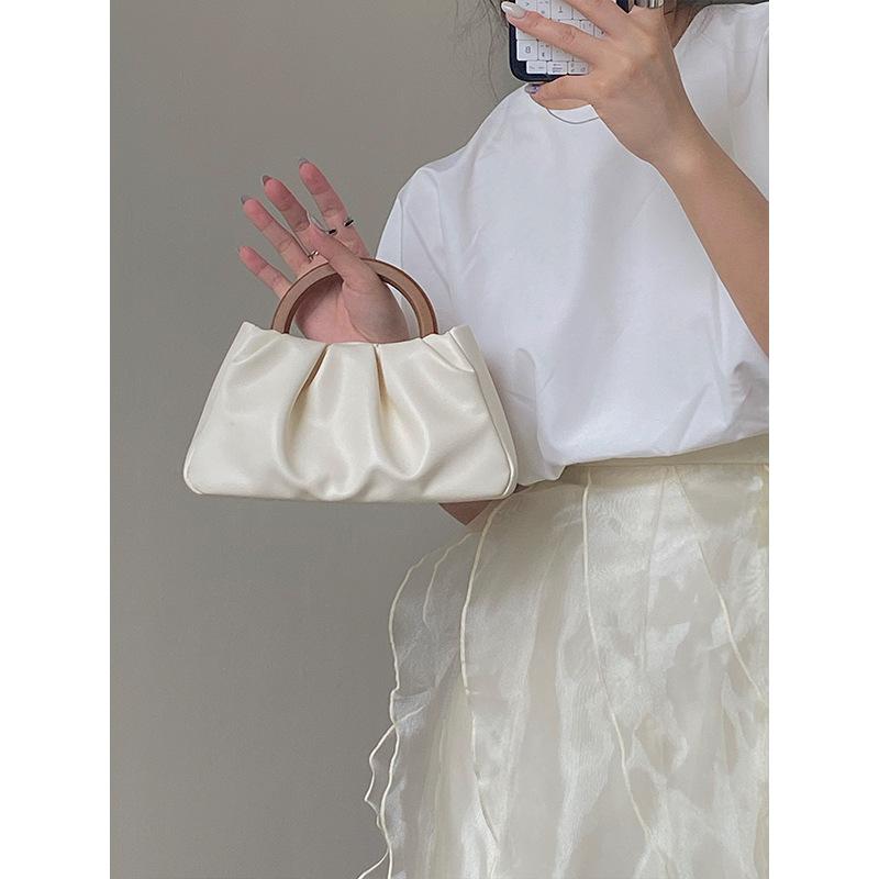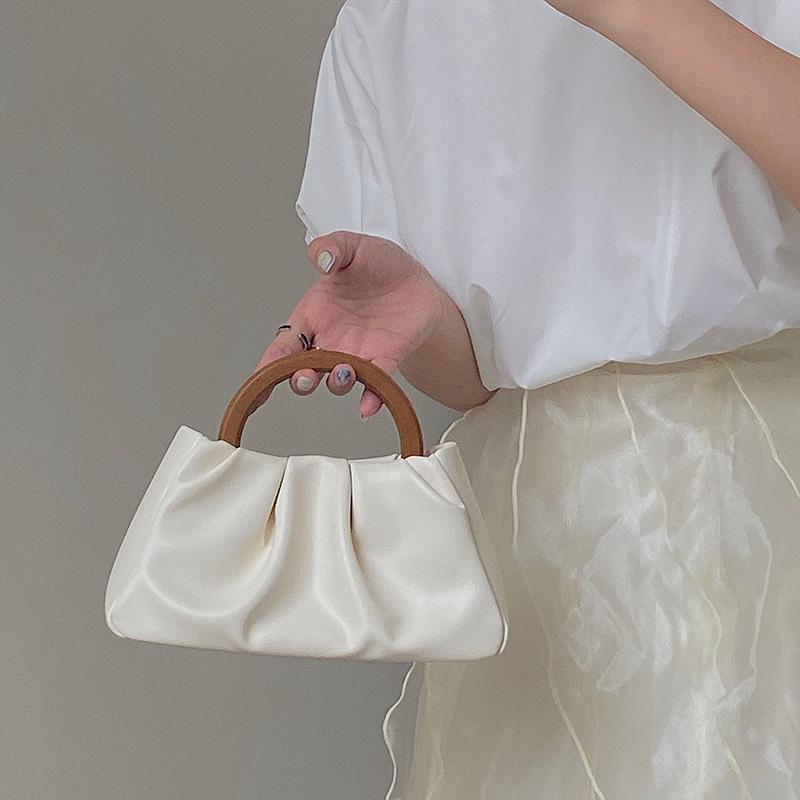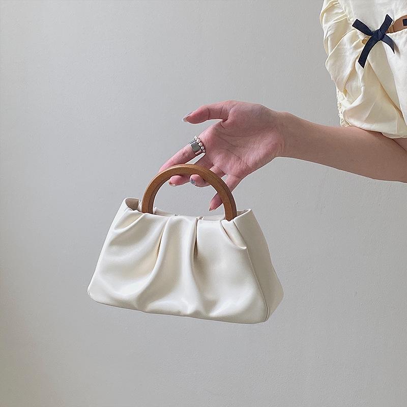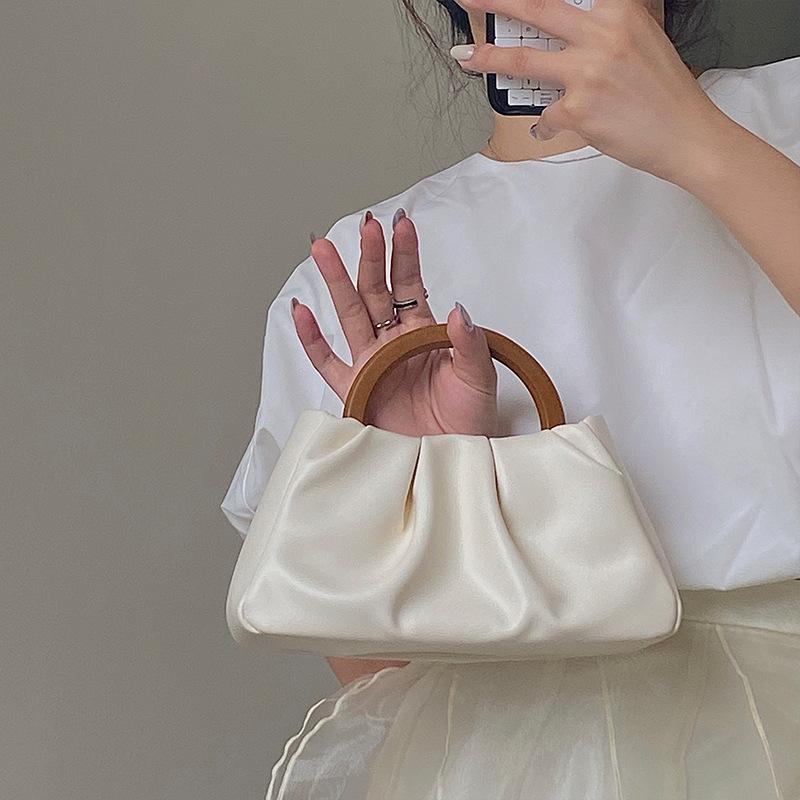 Compra Corea del Sur 2025 Diseño Nicho Nuevo Bolso de Mujer Asa de Madera Plisado Nube Bolso de Mano Hombro Cruzado Mini Bolso al por mayor en Joom.pro