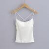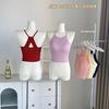 Chicas Calientes Sexy Camisola de Tirantes Descubierta de Espalda Grande para Mujer Verano Nuevo Ajustado Hermosa Espalda Top Base con Almohadilla en el Pecho