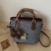 Otoño e Invierno Nuevo Estilo Bolsa Cesta Colgante Hecha a Mano Bolsa de Mujer Ins Éxito de Ventas Transfronterizo Tiktok Live Bolso de Hombro de Piel de Vacuno de Primera Capa Bolso de Mujer