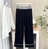 Pantalones casuales de cintura elástica de color liso, pantalones rectos de verano para mujer, pantalones holgados adelgazantes de longitud media, pantalones de pierna ancha, pantalones, pantalones, pantalones, pantalones, 64359