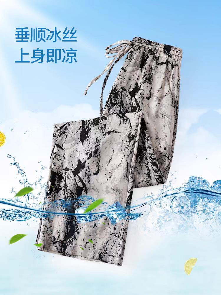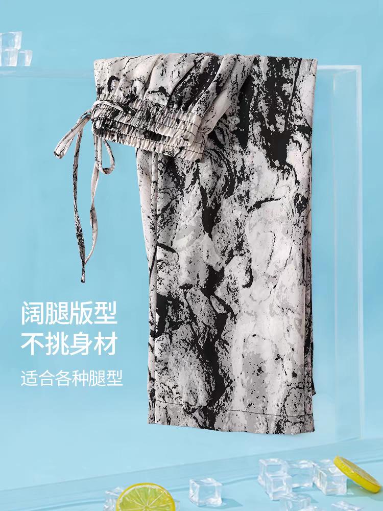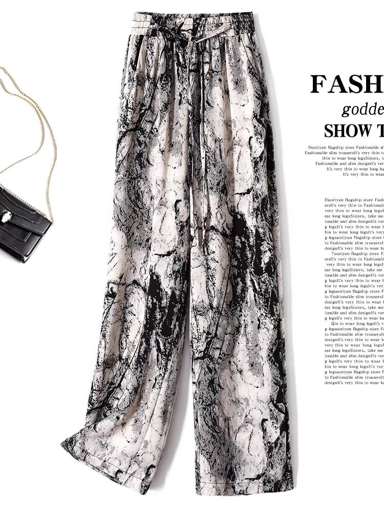 Compra Pantalones de Pierna Ancha de Seda de Hielo para Mujer Verano Delgados Cintura Alta Holgados Largos Altos Protección Solar Versión Estrecha Rectos Chifón Hombre Pequeño al por mayor en Joom.pro