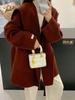 Abrigo de Cachemira de Lana Roja de Alto Conteo de Doble Cara para Mujer, Largo Medio, Otoño e Invierno 2025, Elegante Abrigo de Lana Suelto