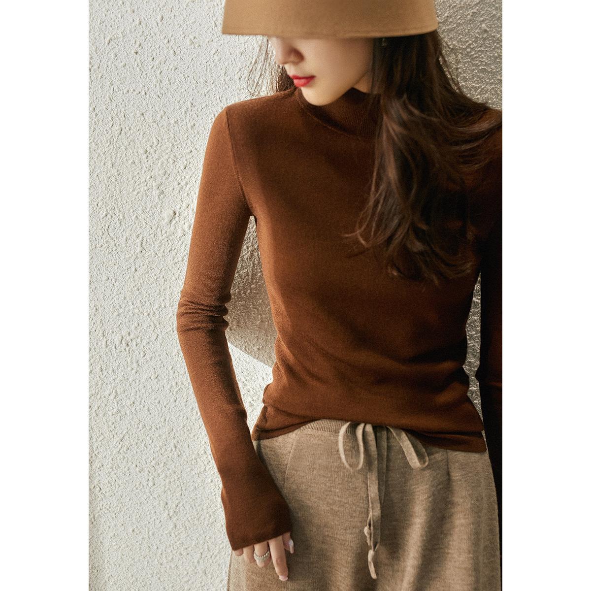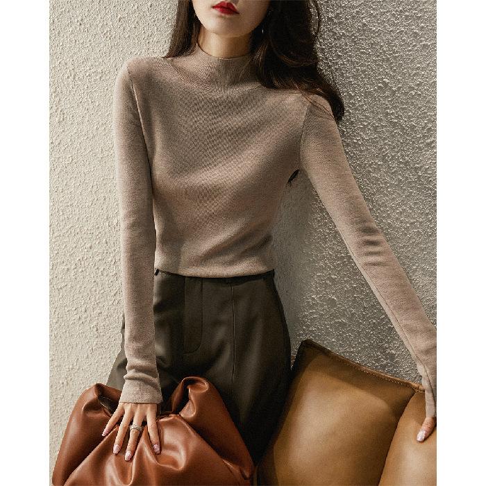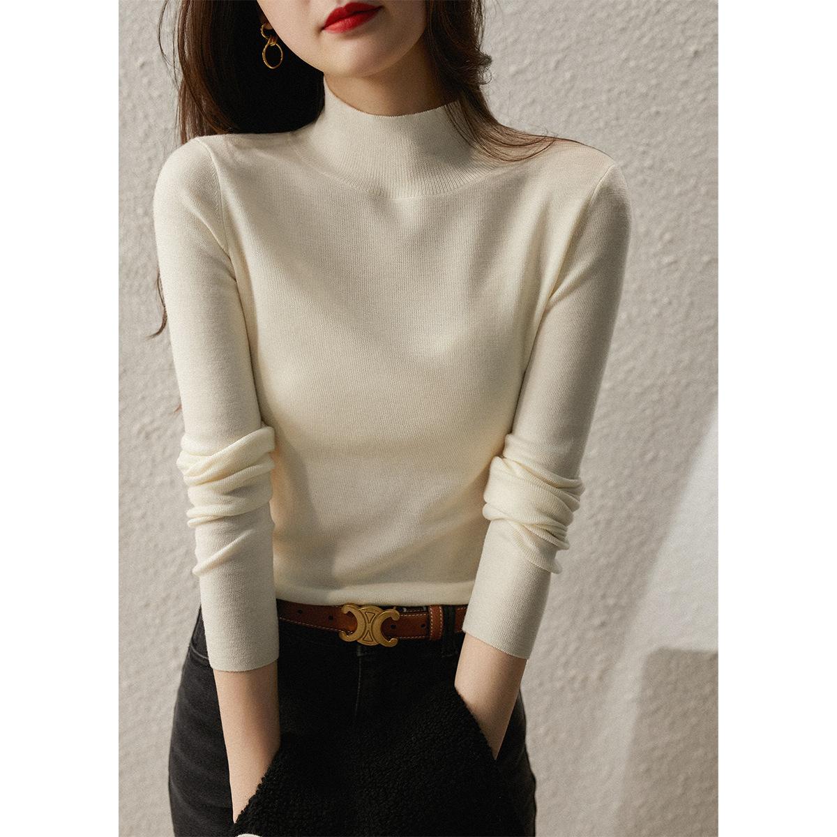 Suéter de color liso que combina con todo, camisa de cuello alto hasta la mitad para mujer, ropa interior de otoño e invierno 2023, top de punto estilo occidental adelgazante y ajustado