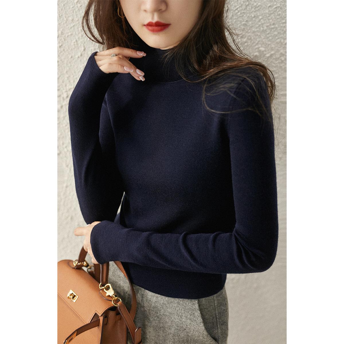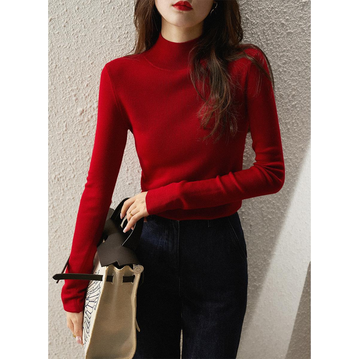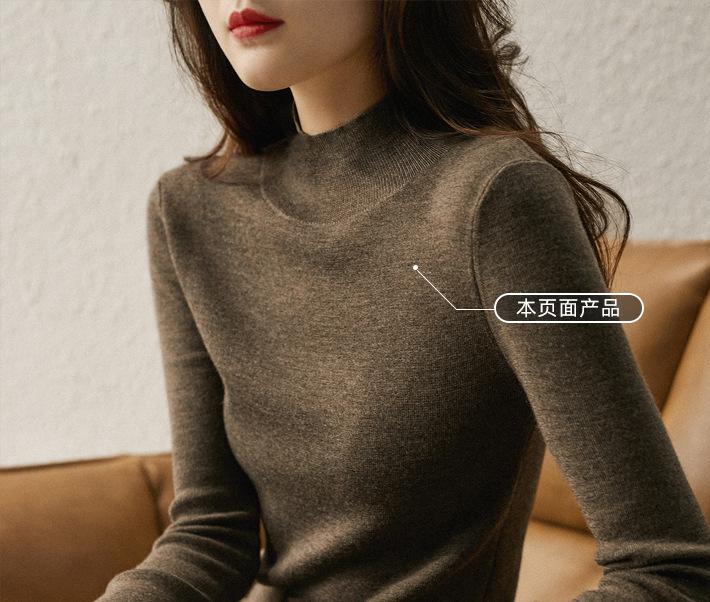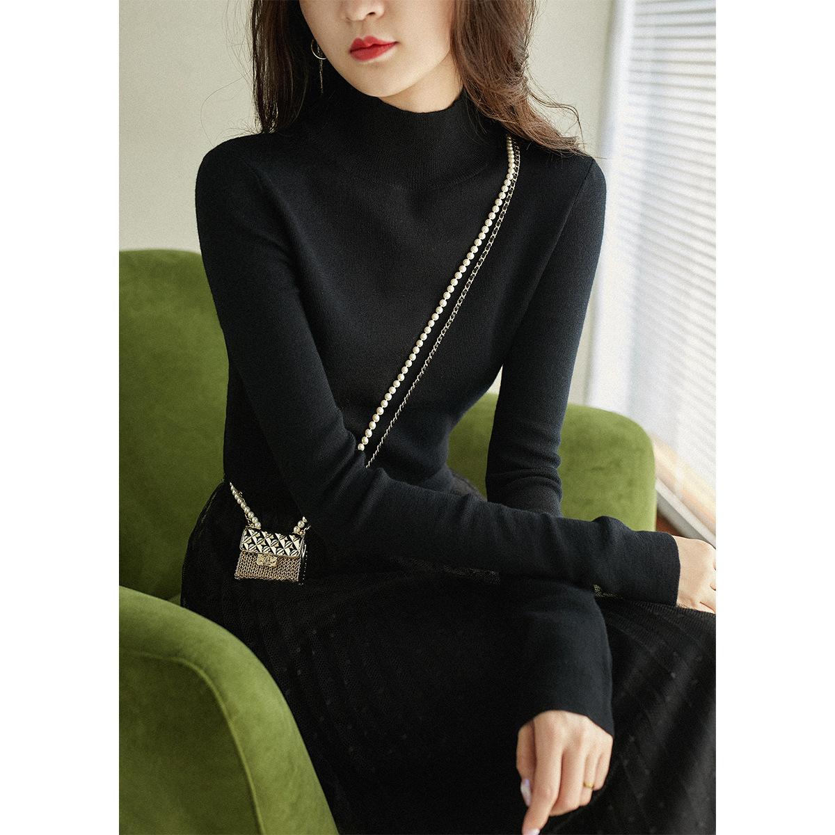 Suéter de color liso que combina con todo, camisa de cuello alto hasta la mitad para mujer, ropa interior de otoño e invierno 2023, top de punto estilo occidental adelgazante y ajustado