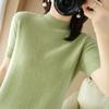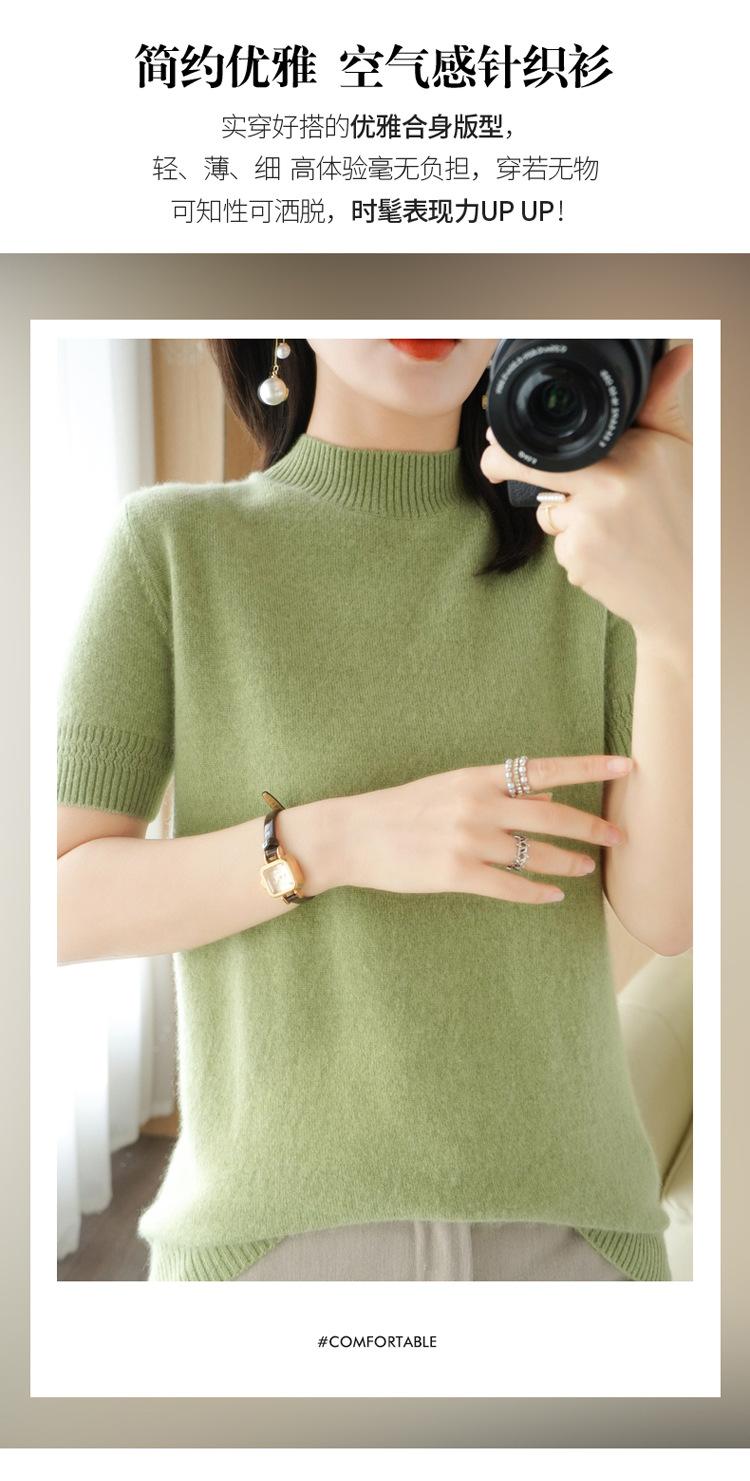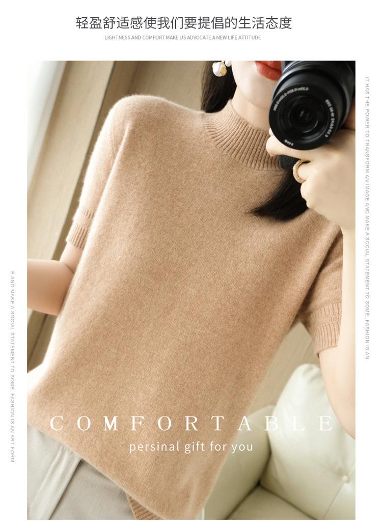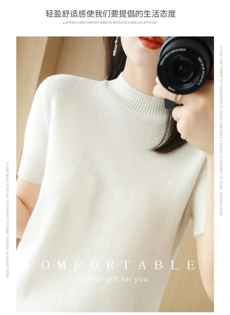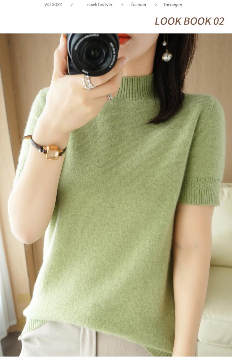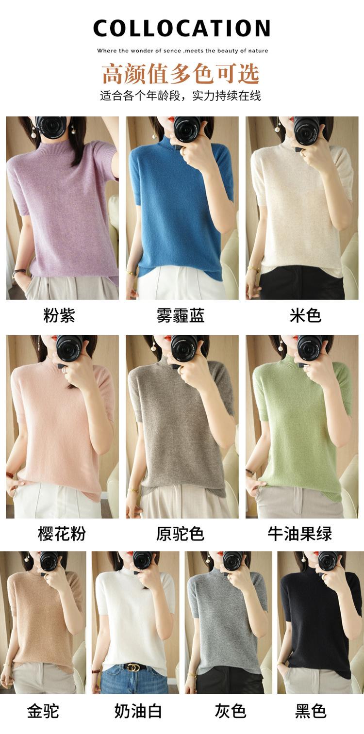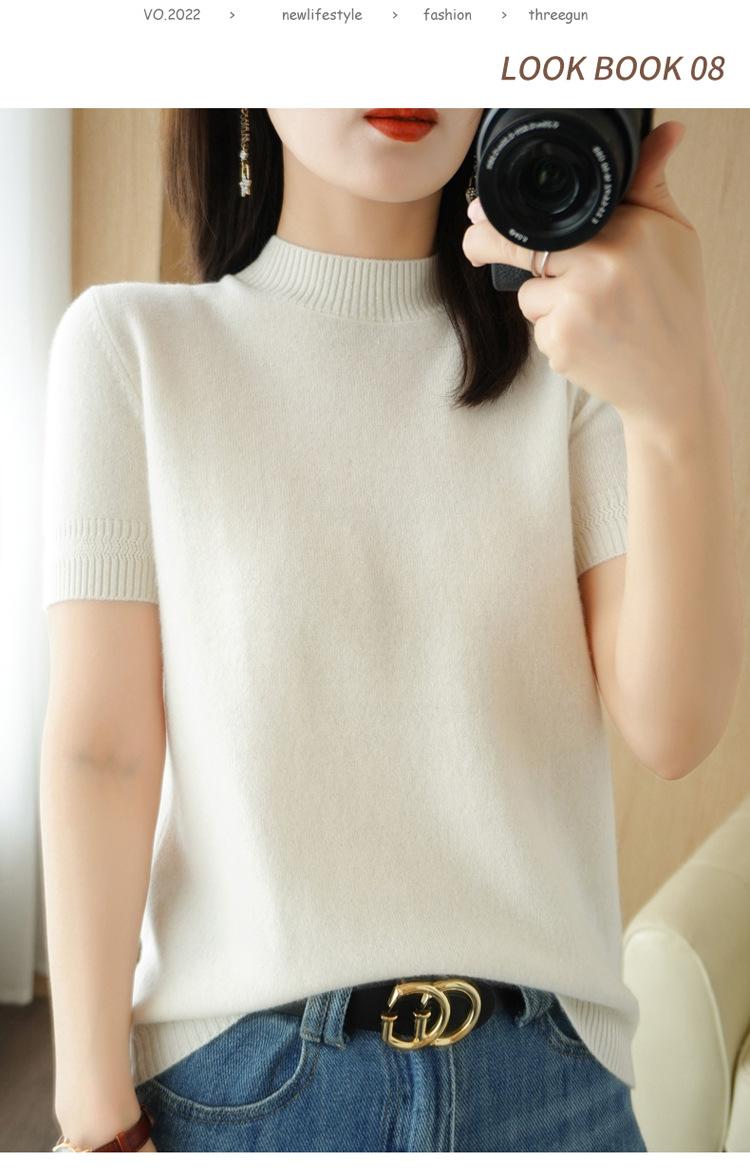 Camiseta básica de cuello alto de manga corta de punto de primavera para mujer, suéter ajustado adelgazante de moda, jersey con media manga interior.