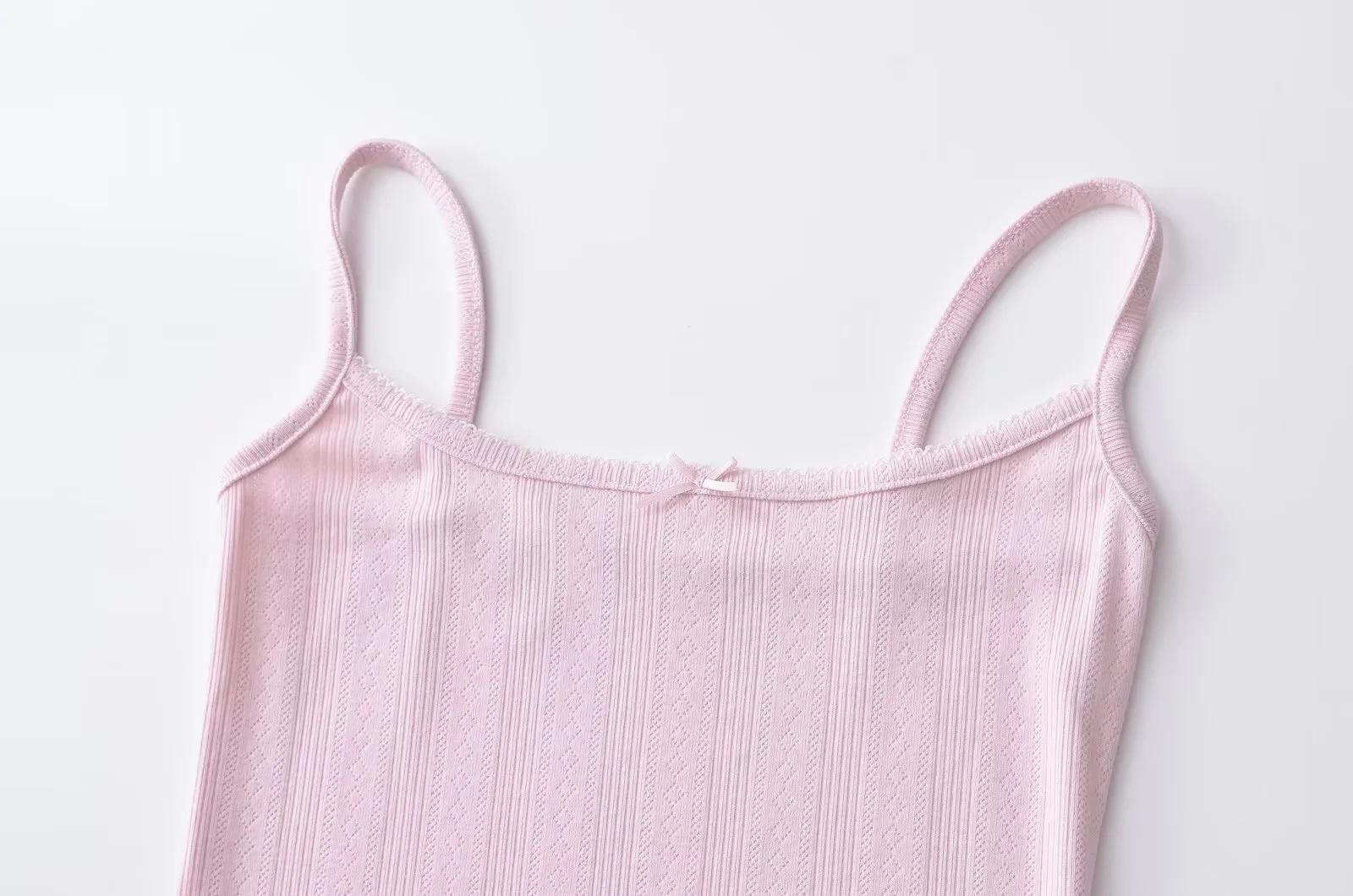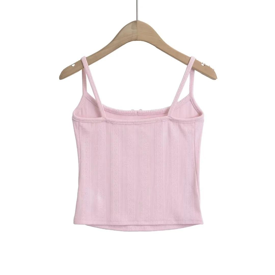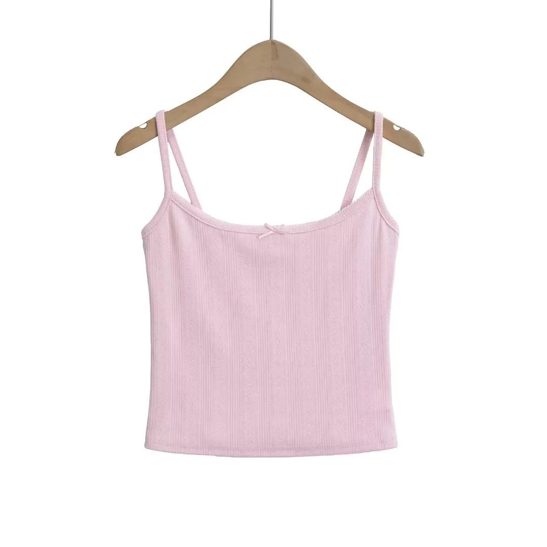 Camisola de verano 2024 Pure Spice Girl para mujer, top corto con lazo y costuras de encaje