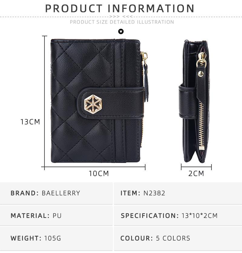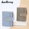 Cartera de nuevo estilo para mujer Baellerry, monedero con ranura para múltiples tarjetas de color sólido con borde cruzado, tarjetero japonés de moda para mujer
