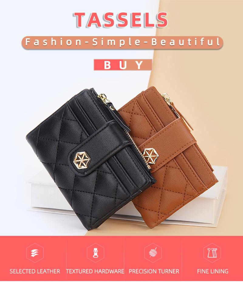 Cartera corta de estilo nuevo para dama, versión coreana, con estampado de lichi, con ranura para múltiples tarjetas y cremallera, monedero de moda.
