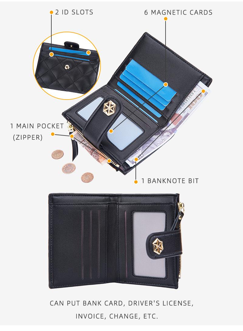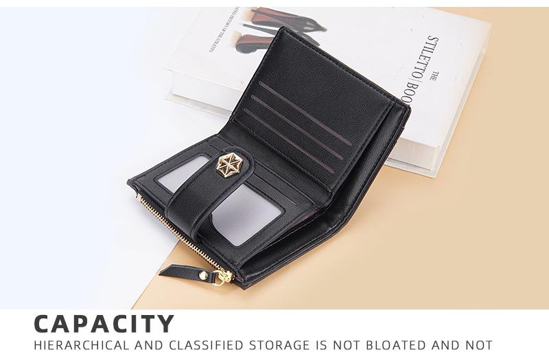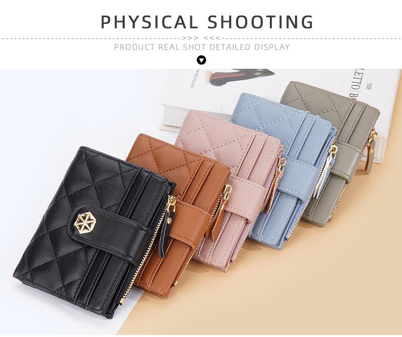 BOISEEN Nueva Cartera Corta para Mujer Coreana Multitarjeta Hebilla Cremallera Monedero Moda Acolchada Tarjetera