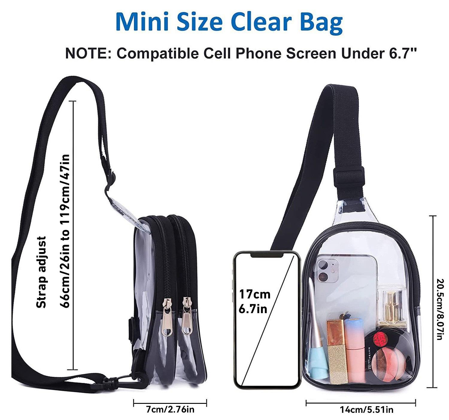 Disponible en Amazon, nuevo bolso de pecho transparente de PVC para hombres y mujeres, impermeable, para deportes al aire libre, mini bolso de viaje cruzado de hombro
