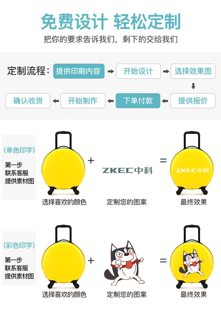 Maleta con ruedas para niños de 18 pulgadas, redonda, para niños y niñas, universal, con ruedas silenciosas y estampado de logotipo, ideal como regalo