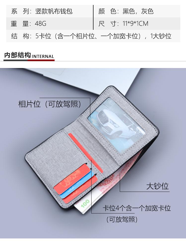 Cartera Vertical de Tela Suave Cartera de Lona Cartera Plegable para Hombre Mini Cartera Pequeña de Mezclilla Tarjetero para Hombre