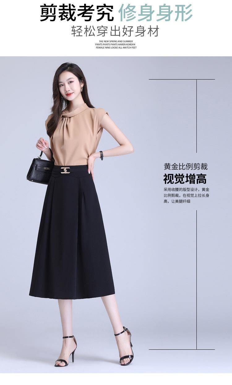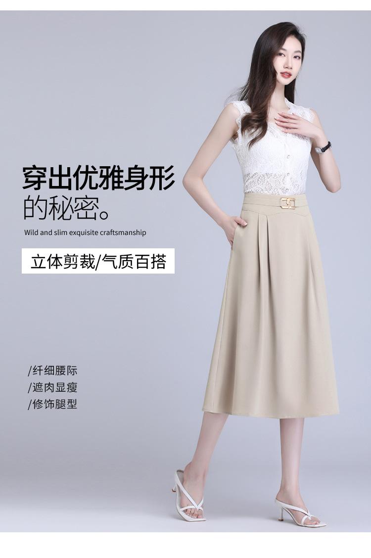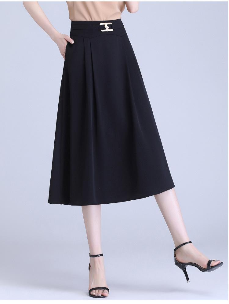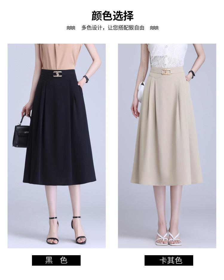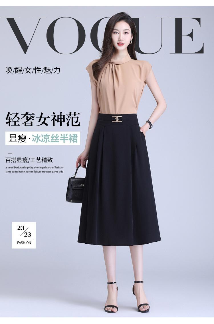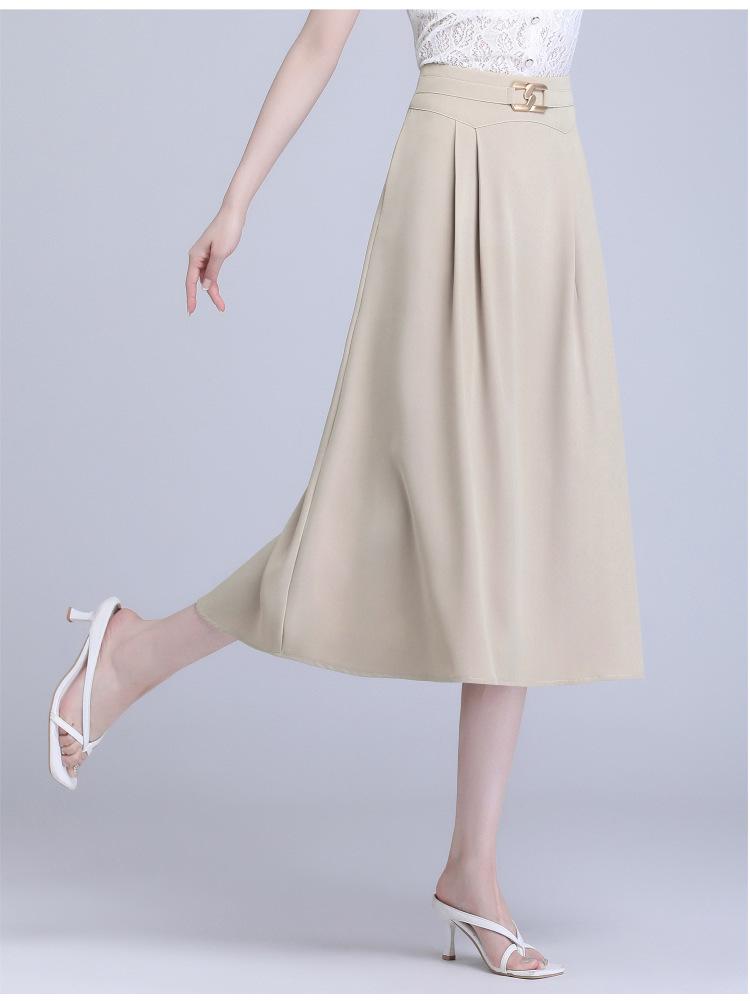 Compra Falda Línea A de Seda Fría con Aspecto Adelgazante y Bajo Amplio para Mujer 2025 Verano Nuevo Cintura Alta Sencilla Plisada Casual Largo Medio al por mayor en Joom.pro