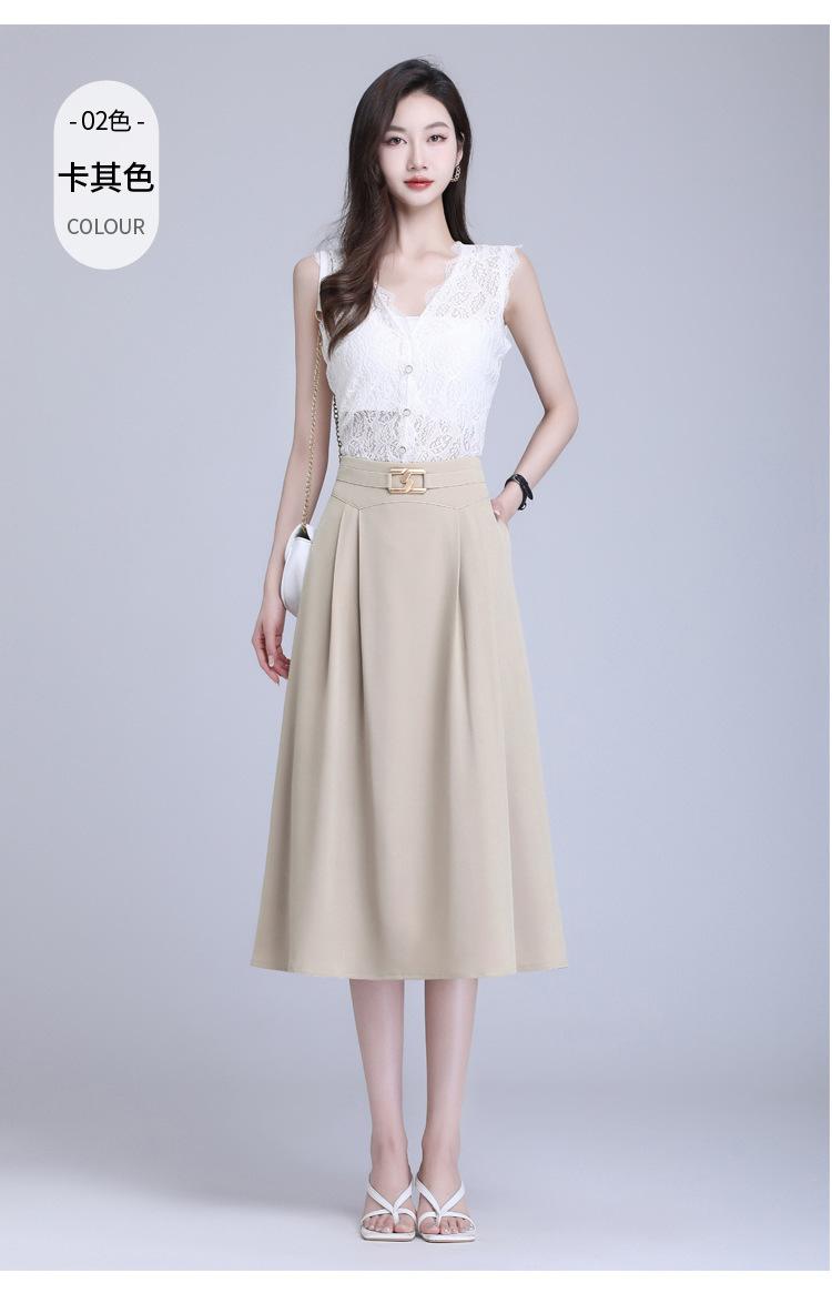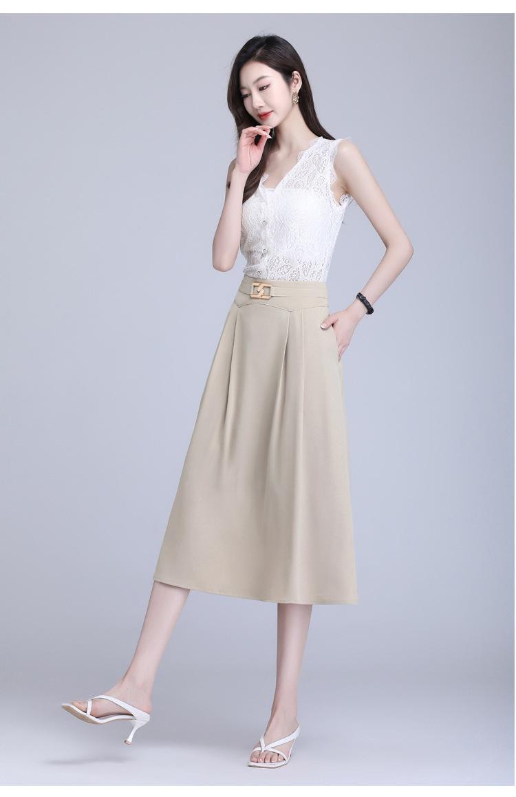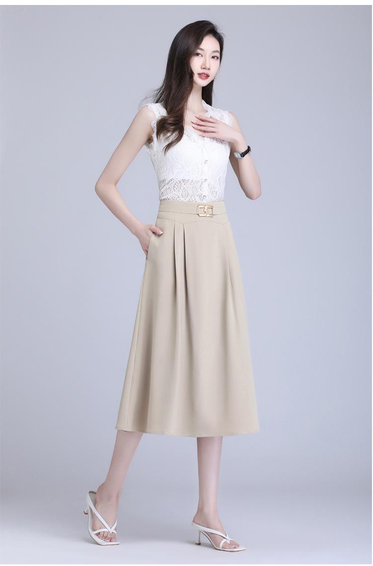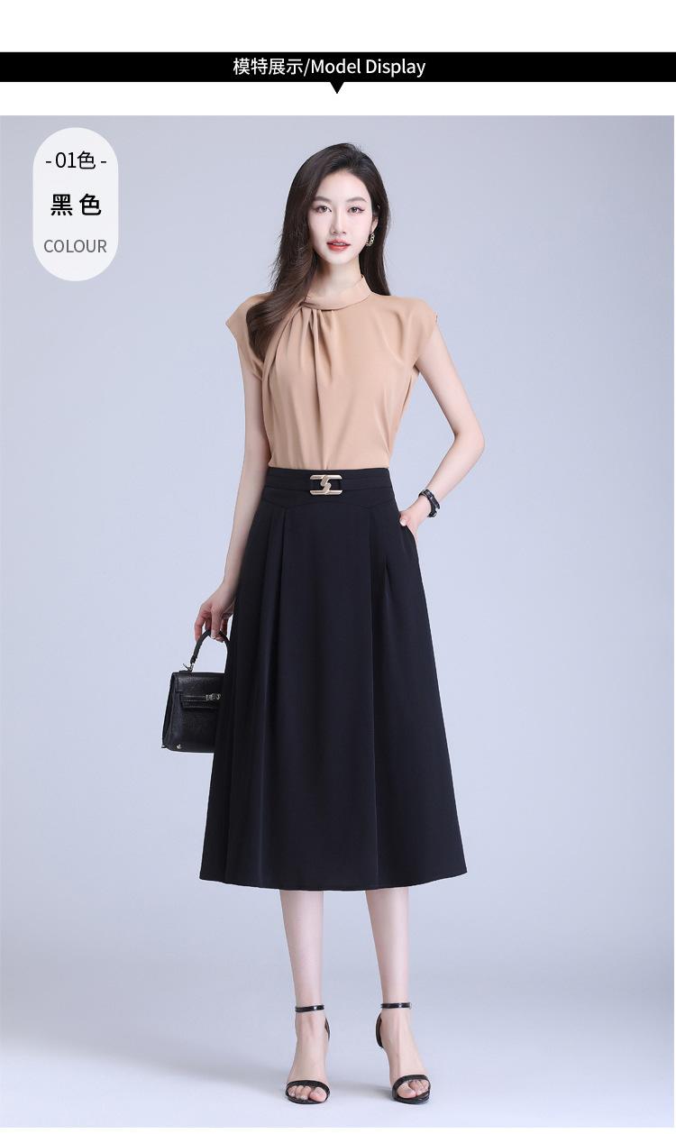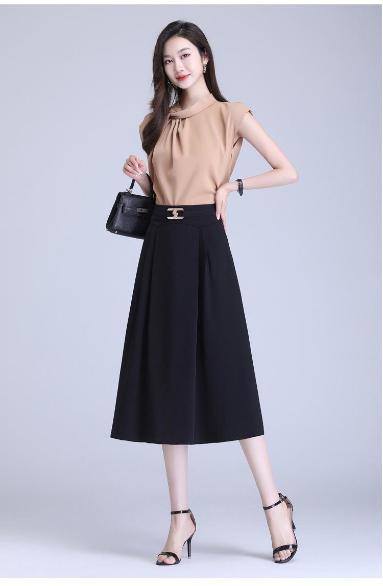 Compra Falda Línea A de Seda Fría con Aspecto Adelgazante y Bajo Amplio para Mujer 2025 Verano Nuevo Cintura Alta Sencilla Plisada Casual Largo Medio al por mayor en Joom.pro
