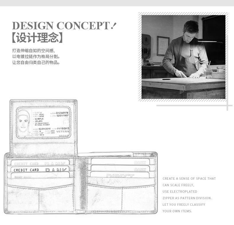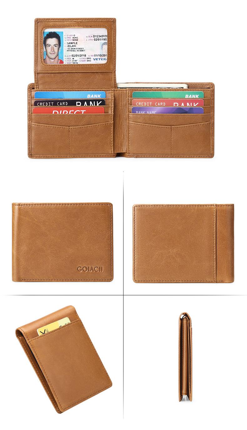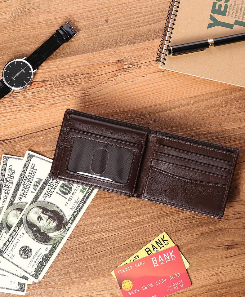 Billetera para Hombre 2023 Nueva Billetera Casual Transfronteriza para Hombre Capa Cuero Vacuno Encerado al Aceite Billetera Rfid en Stock