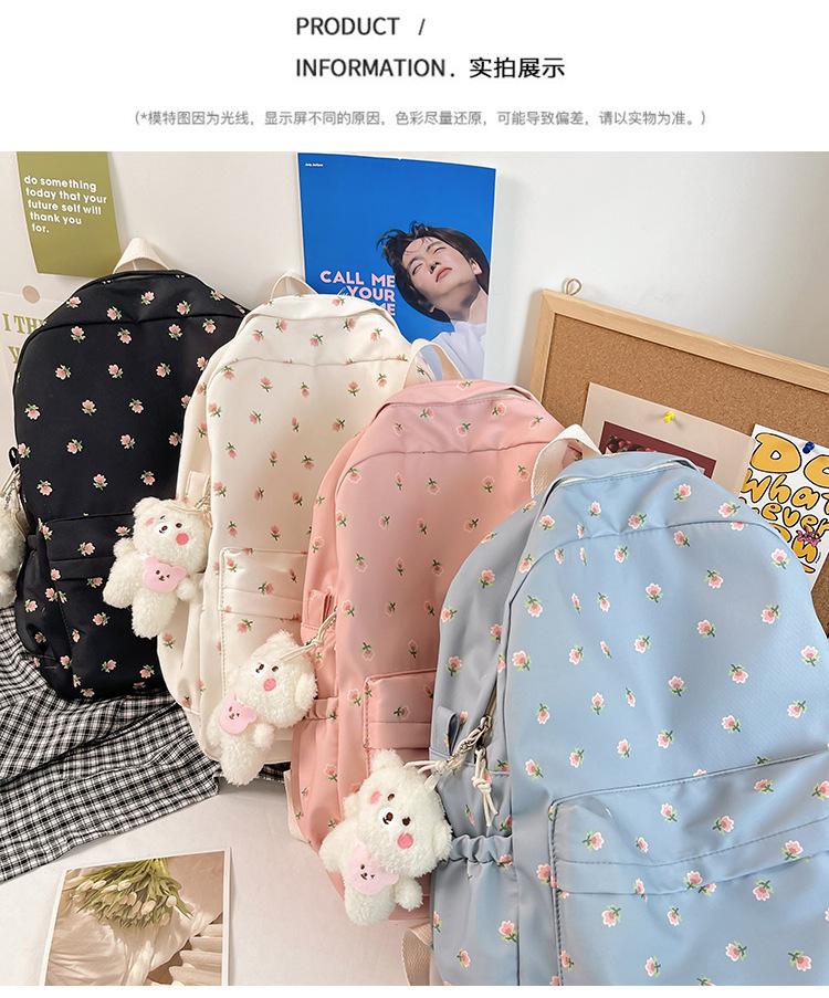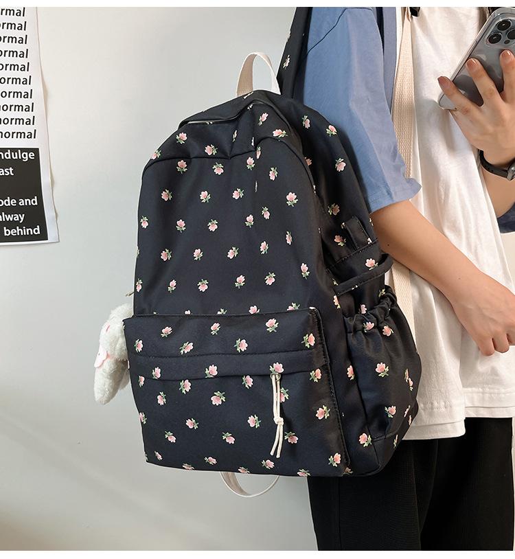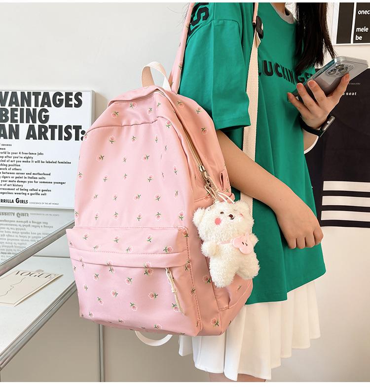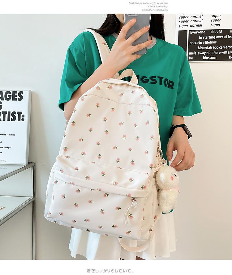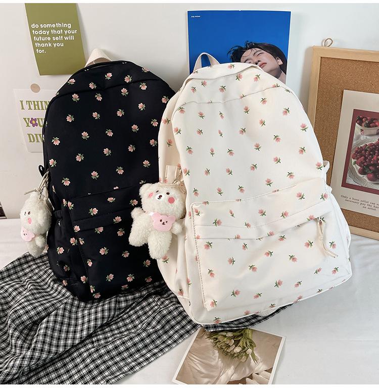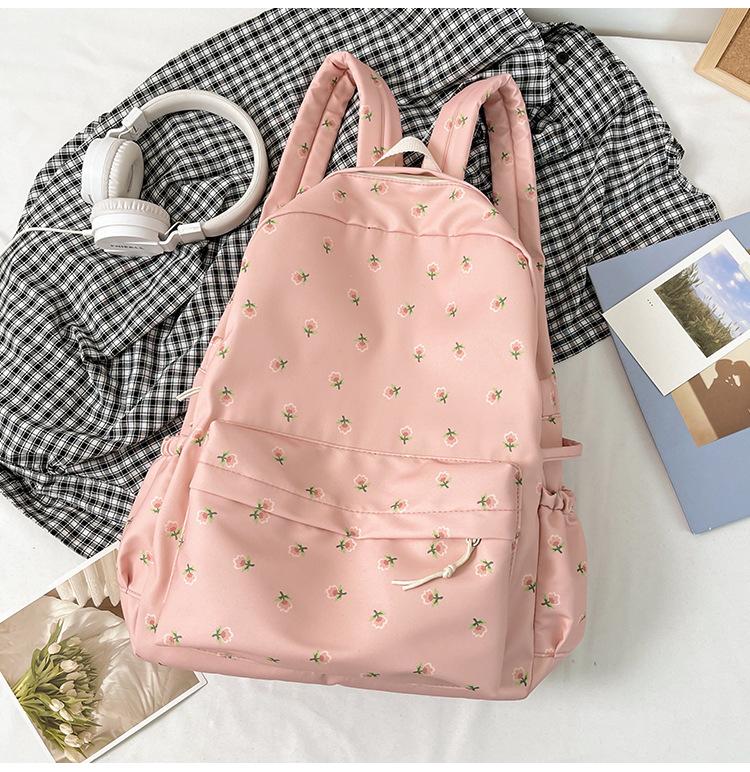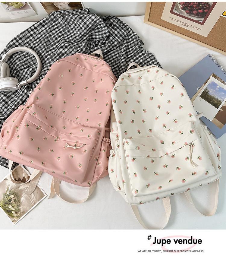 Mochila Pequeña Fresca para Estudiante de Secundaria y Universidad, Estilo Japonés Floral para Niña Suave
