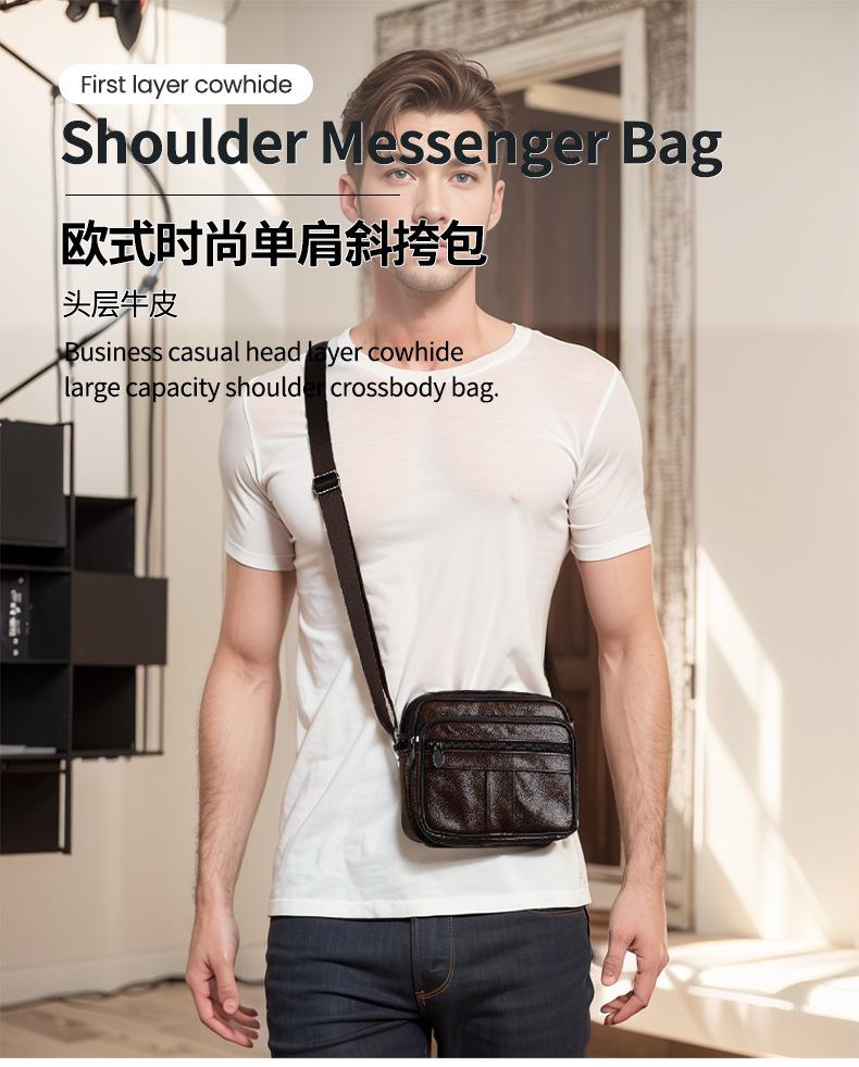 Nuevo bolso de hombro de negocios, bolso de cuero para hombre, bolso horizontal de piel de vaca, bolso cruzado informal de cuero genuino, mochila pequeña