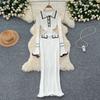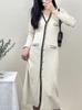 Vestido de punto de manga larga con cuello cuadrado francés de otoño, vestido de corte A adelgazante con cintura ajustada y falda elegante estilo Chanel.