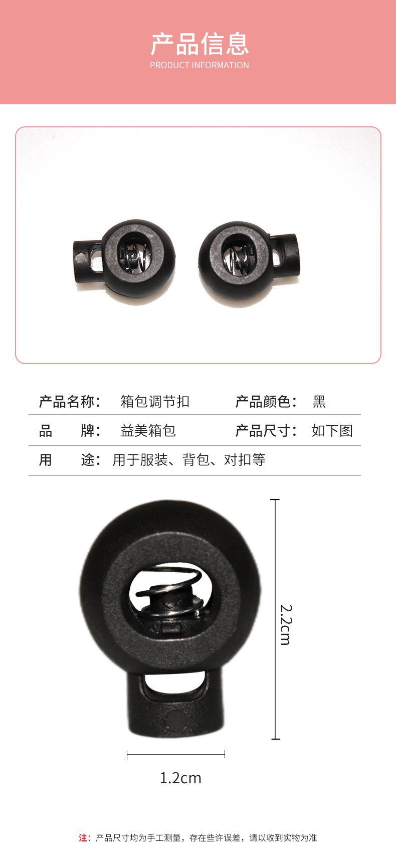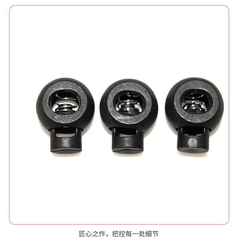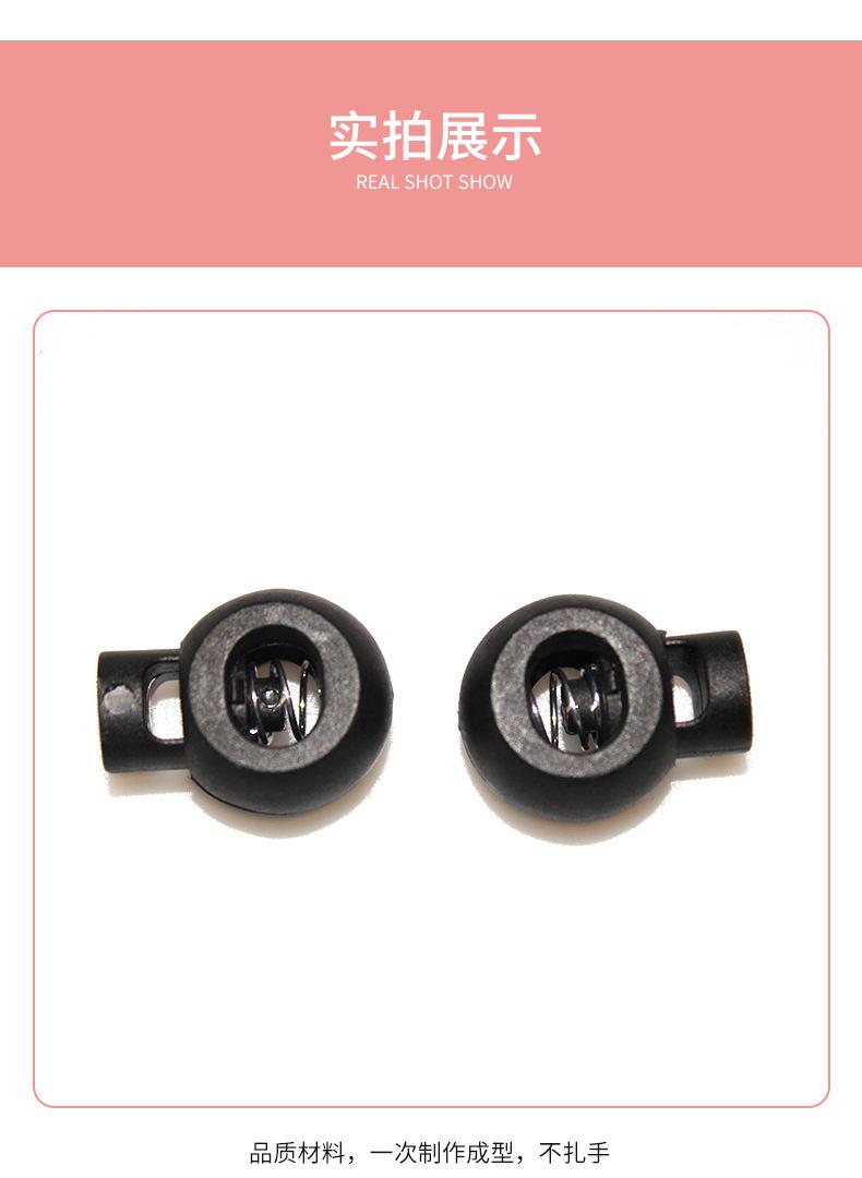 Hebilla de cuerda de campana de plástico de suministro puntual, hebilla de resorte de plástico, hebilla de cuenta redonda, hebilla de ajuste elástico, hebilla de cuerda de desgaste, hebilla de nariz de cerdo