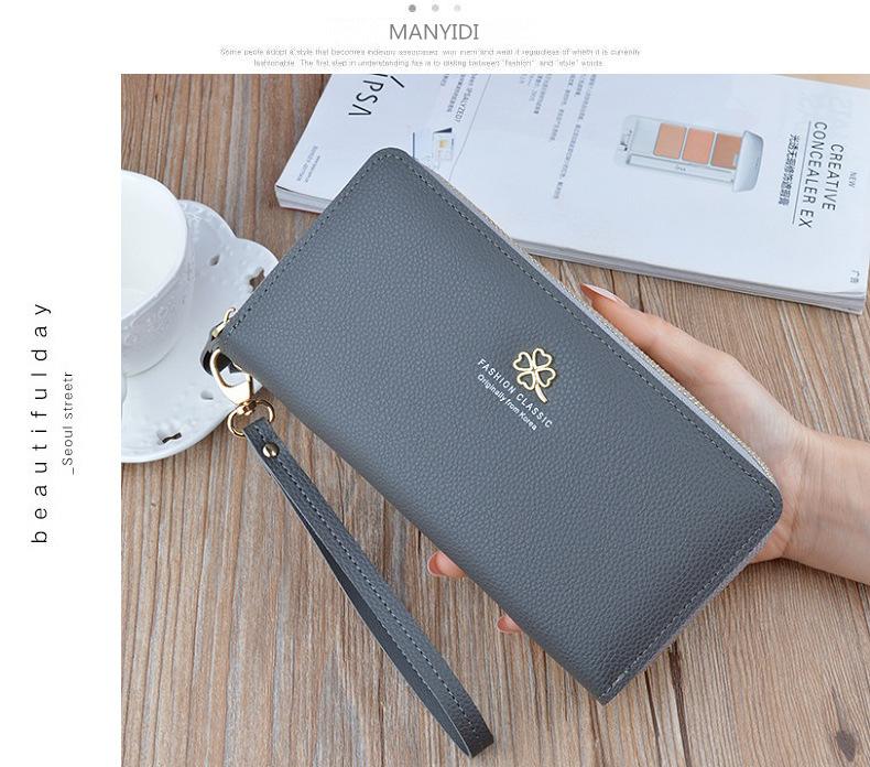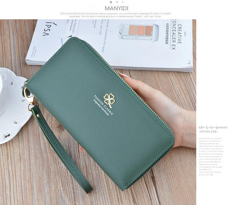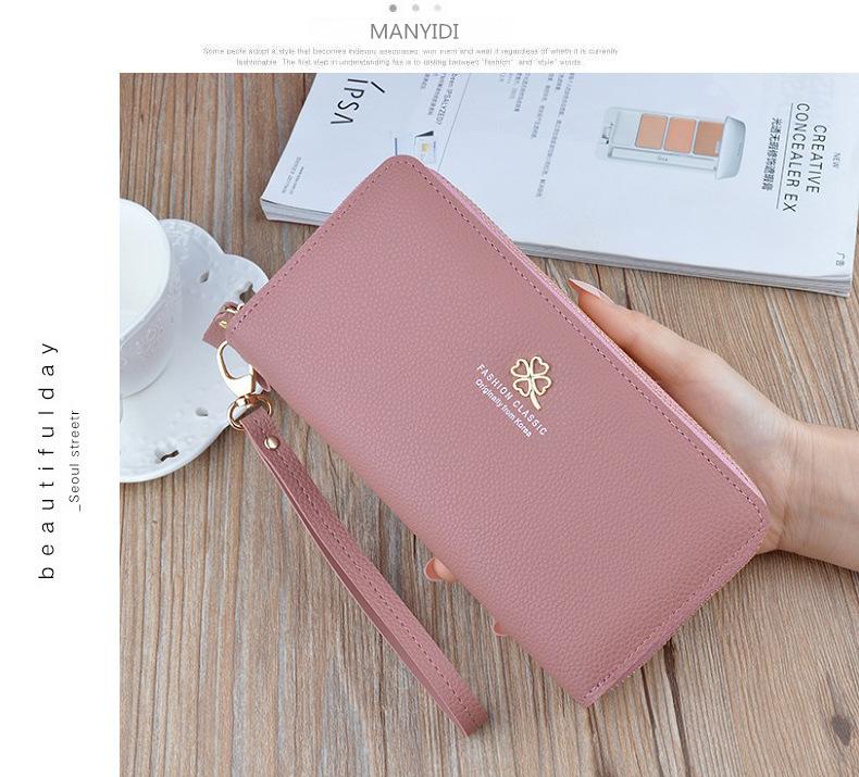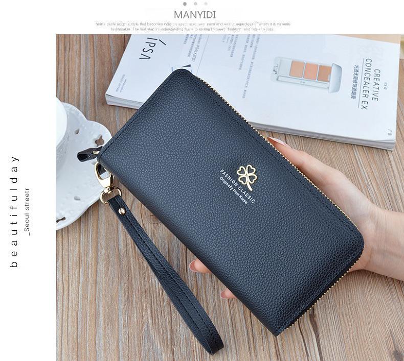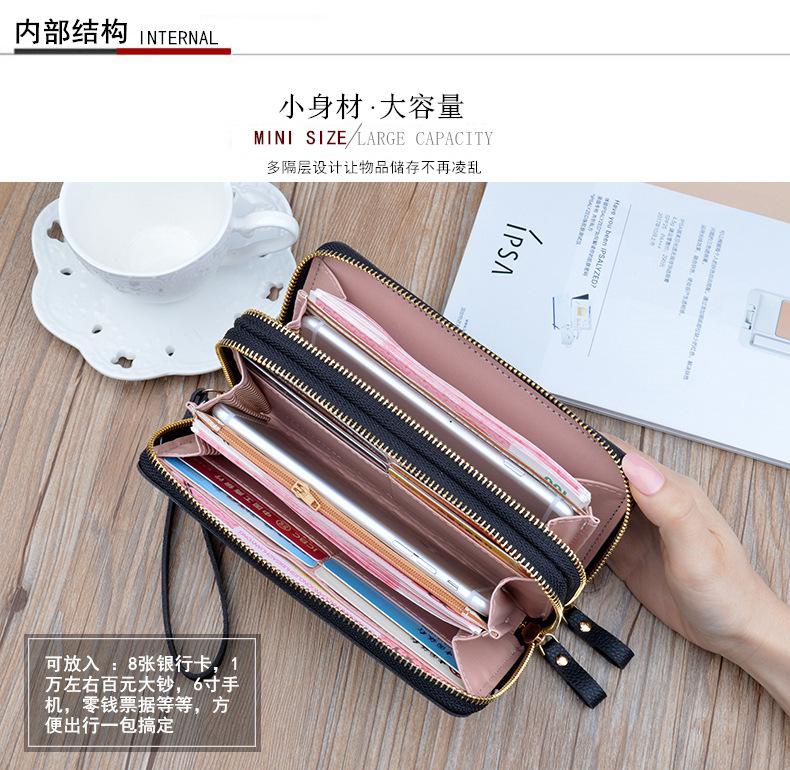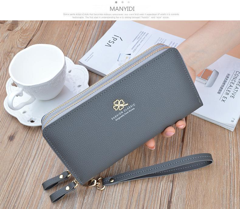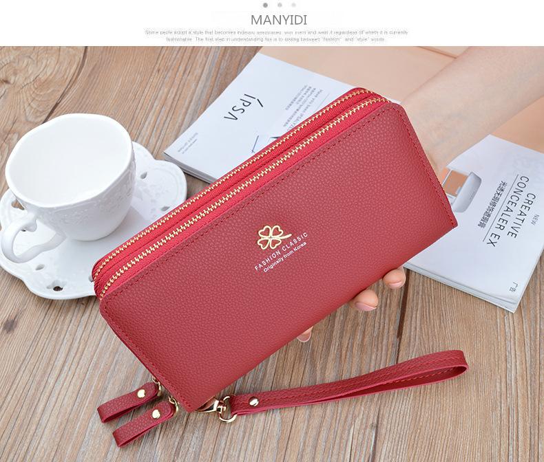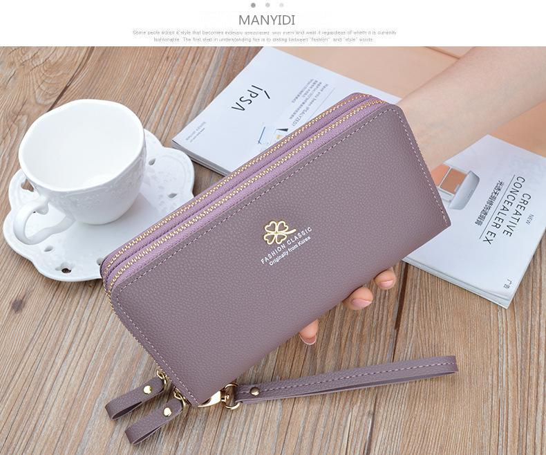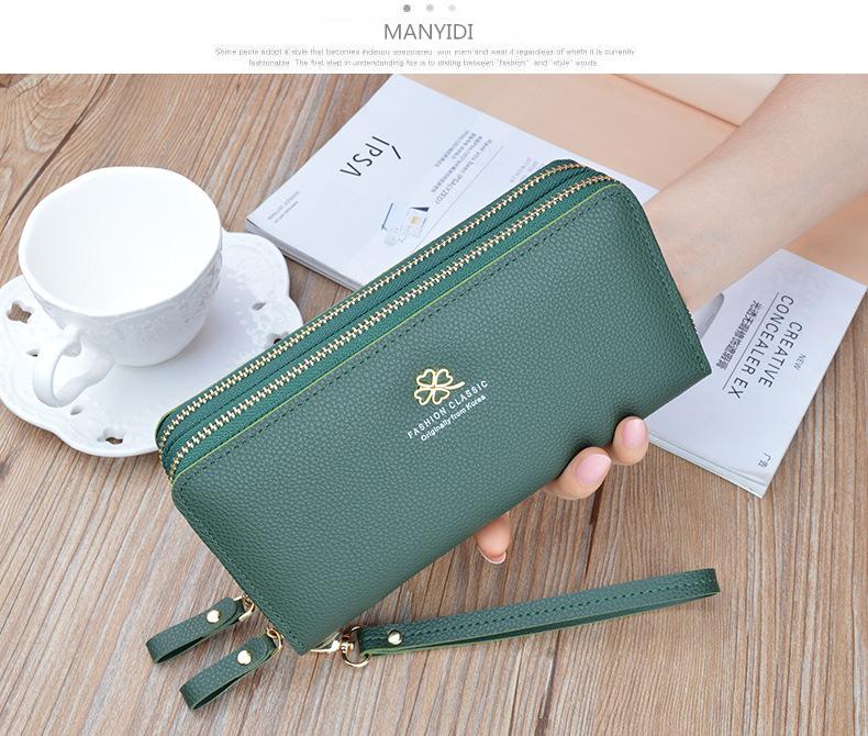 Nueva cartera para mujer, bolso de mano largo con doble cremallera, moderno bolso de mano con estampado de lichi, gran capacidad, bolso para teléfono móvil.
