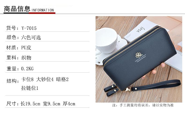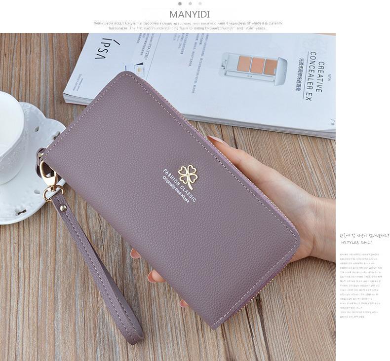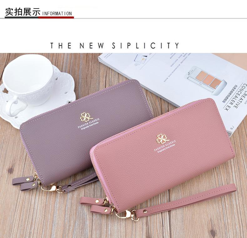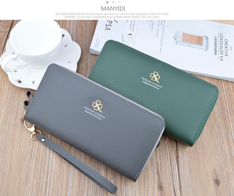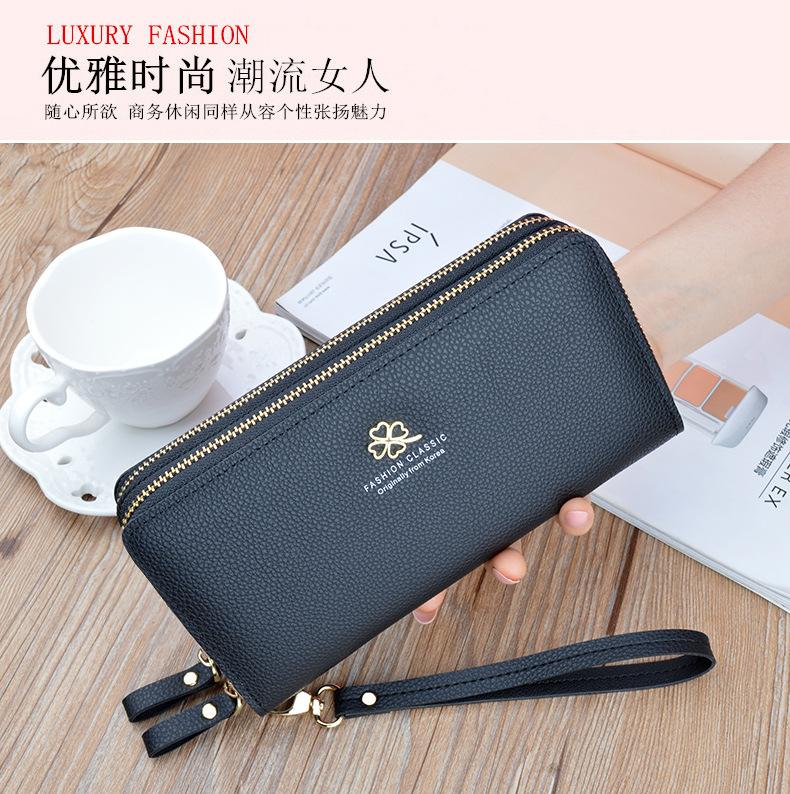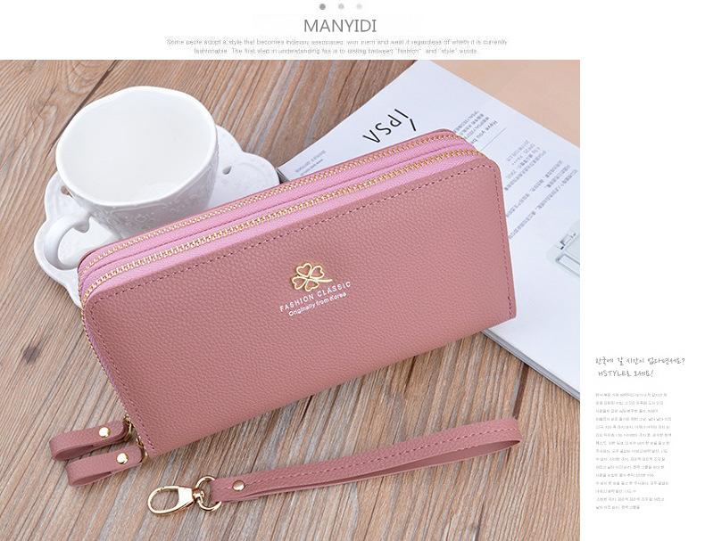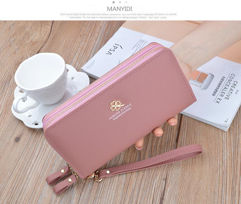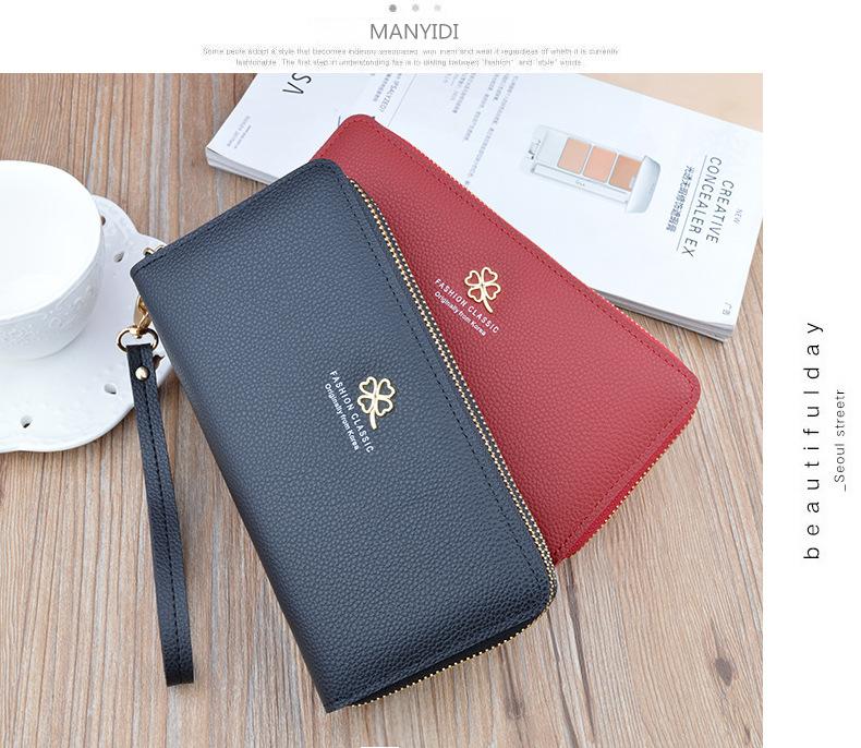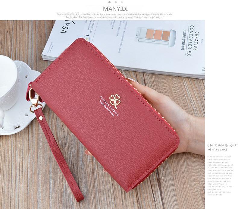 Nueva cartera para mujer, bolso de mano largo con doble cremallera, moderno bolso de mano con estampado de lichi, gran capacidad, bolso para teléfono móvil.
